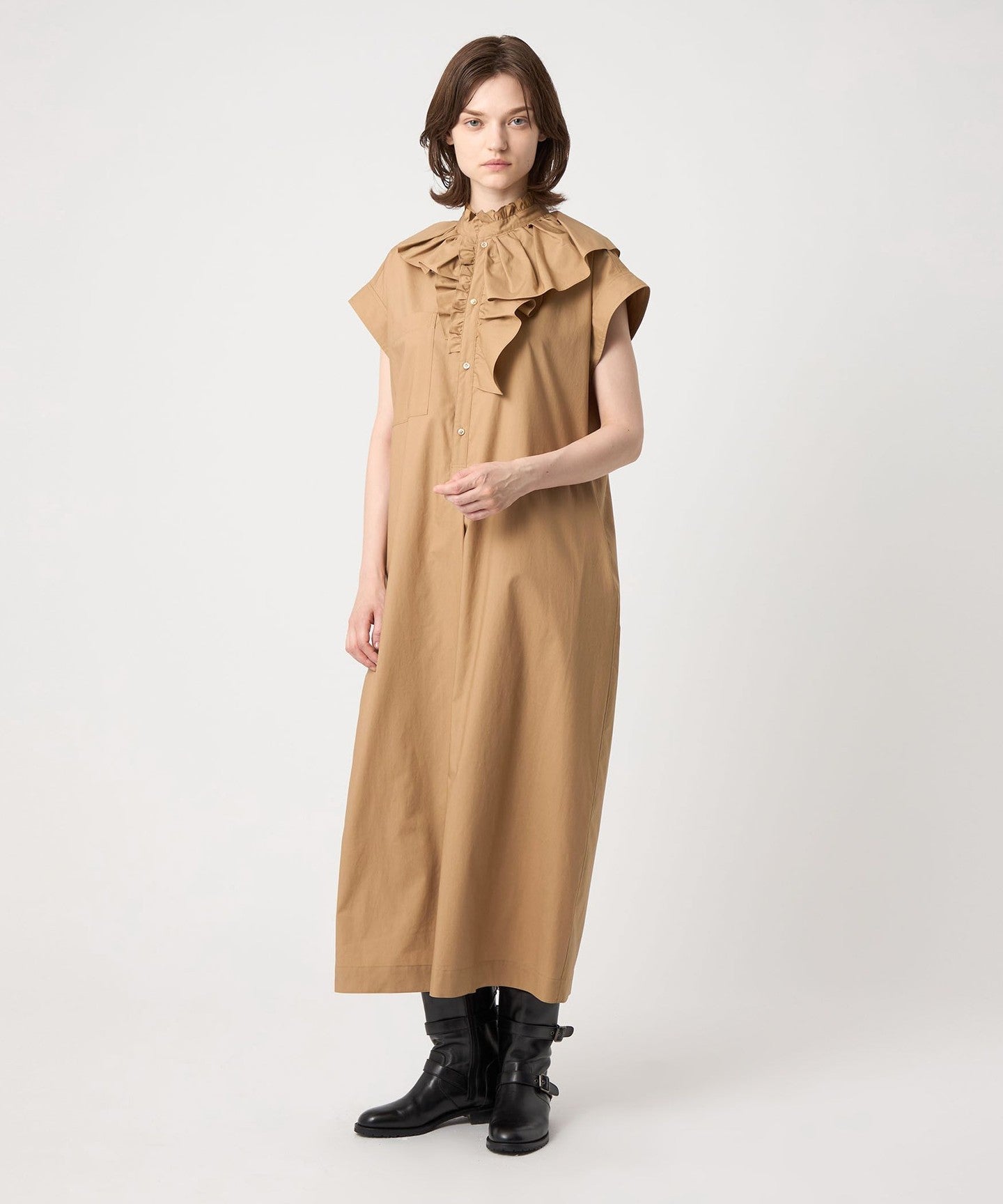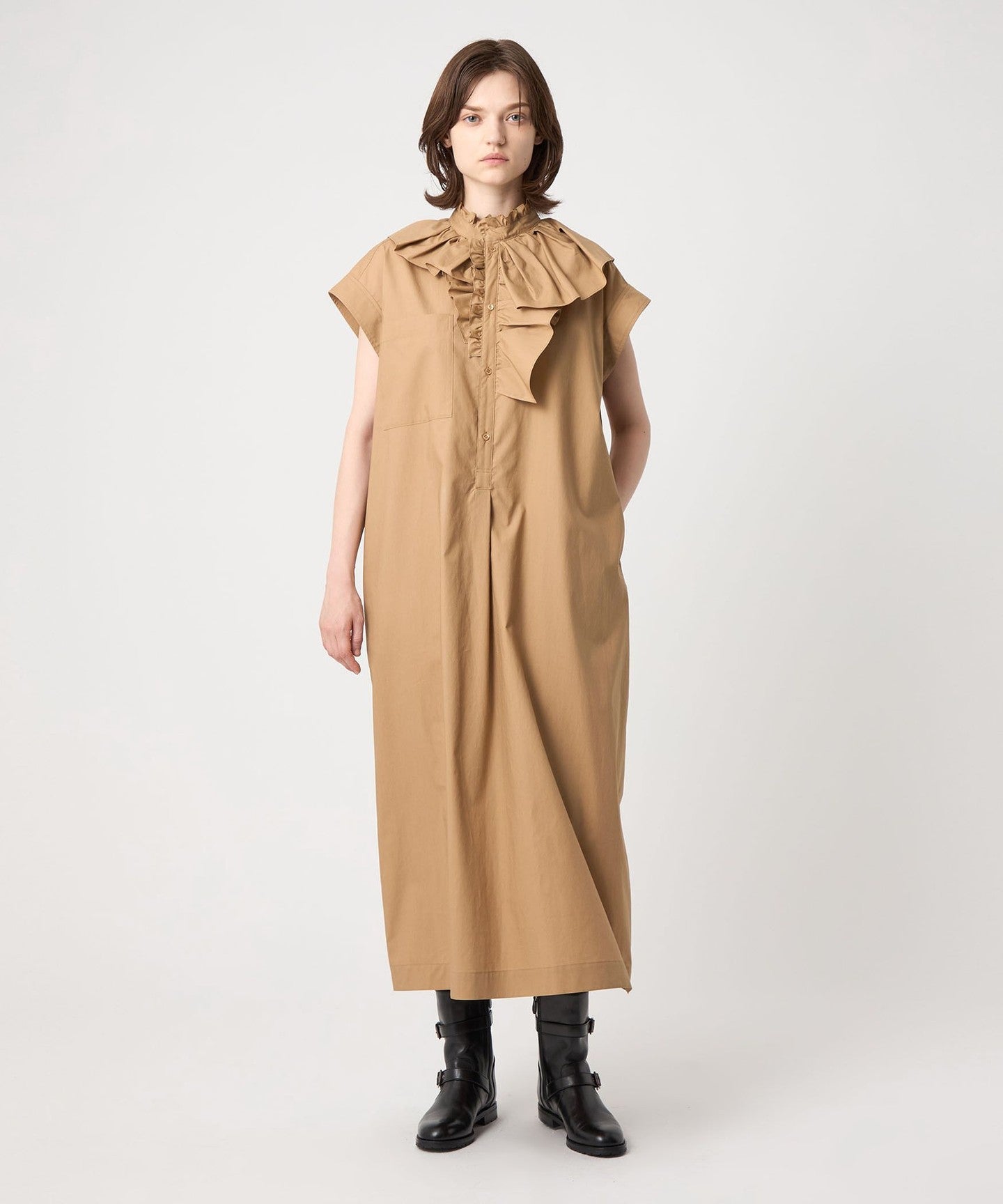 DRAWERPRE Ruffle Collar Cotton Dress