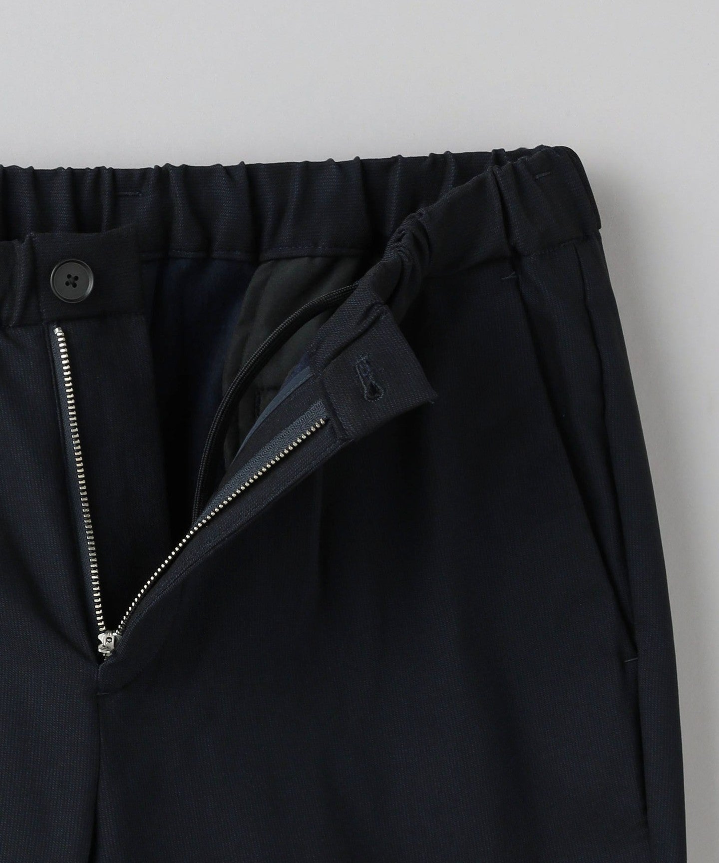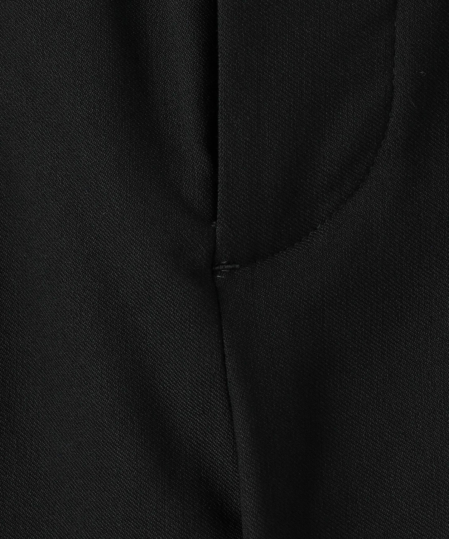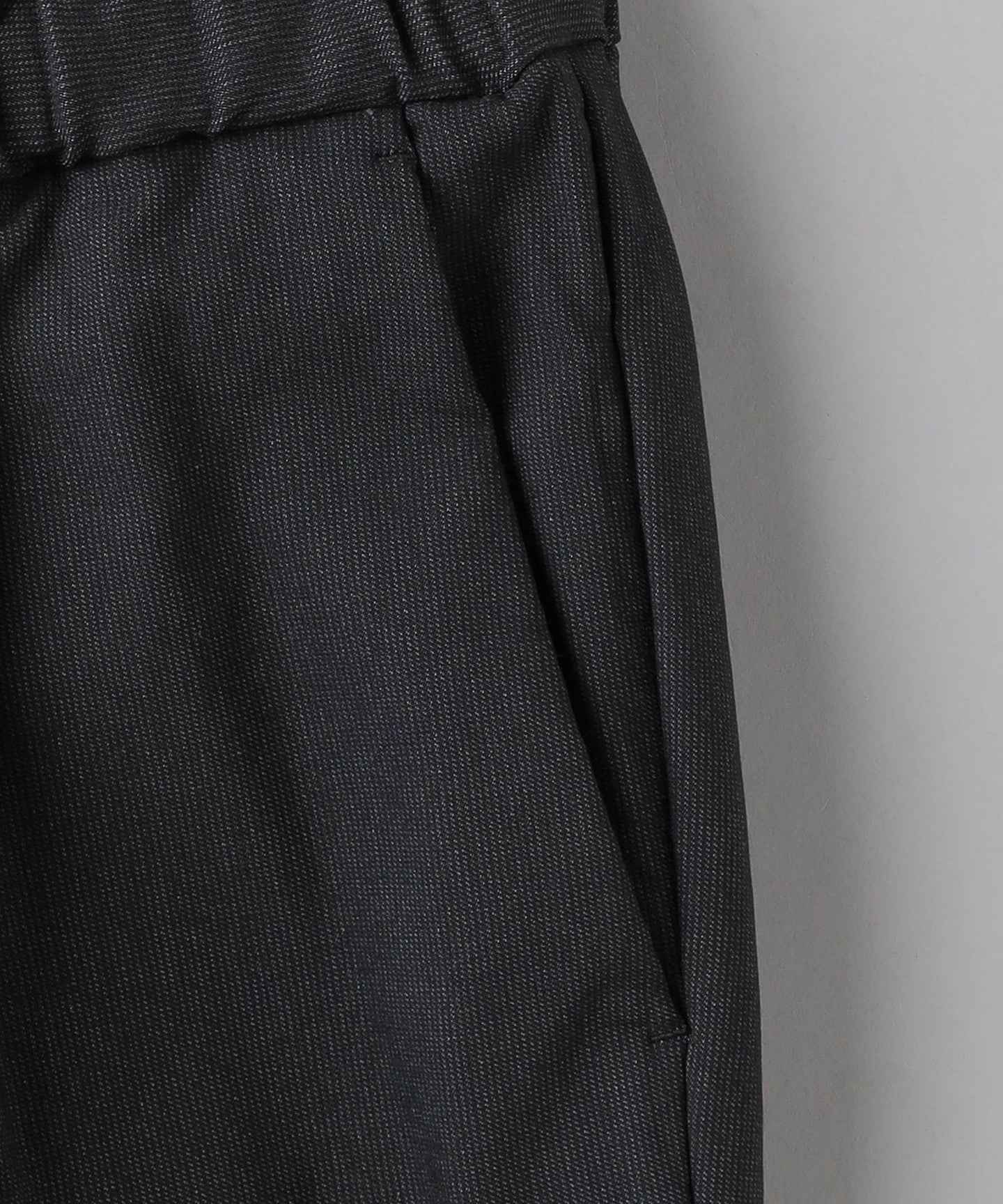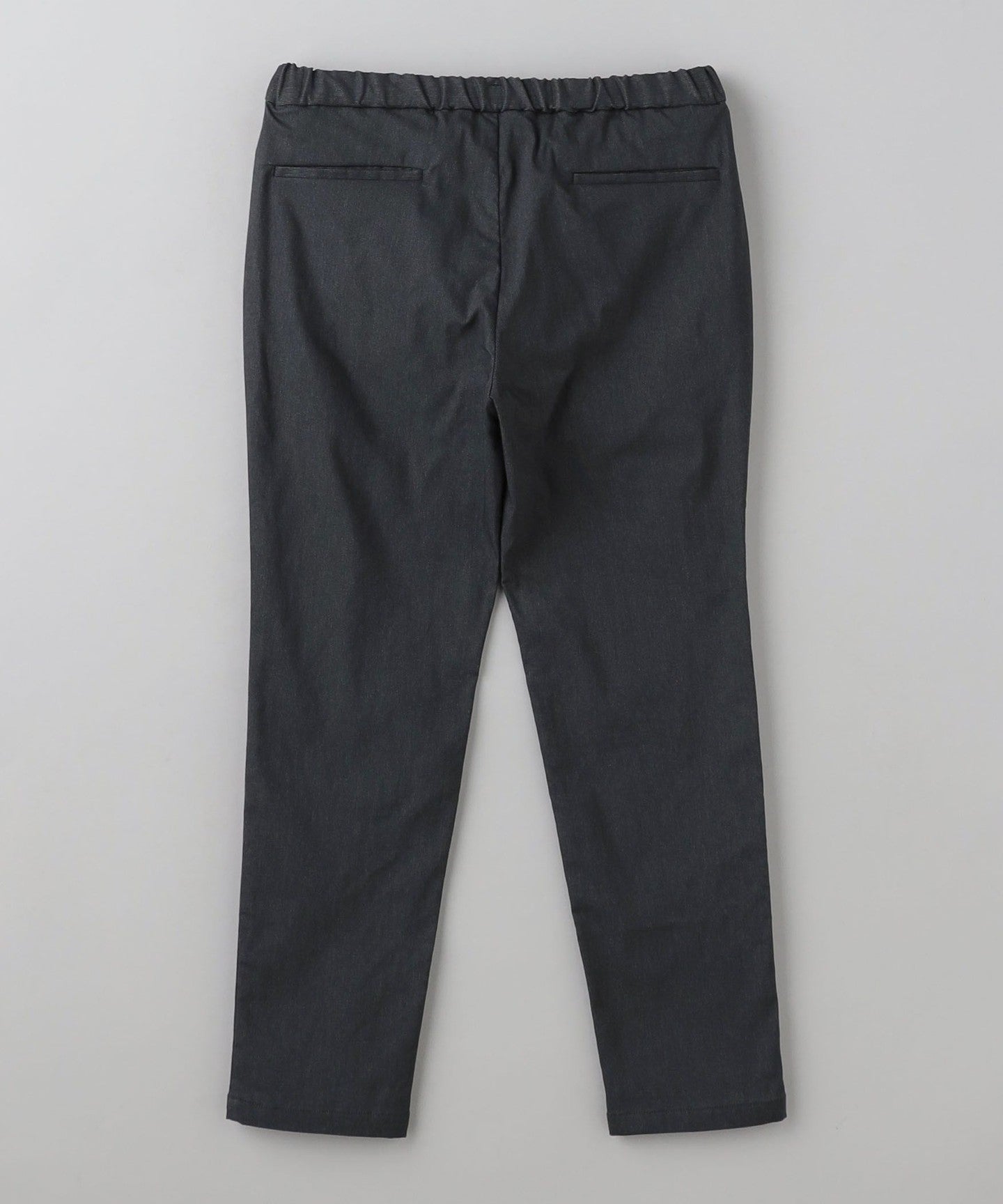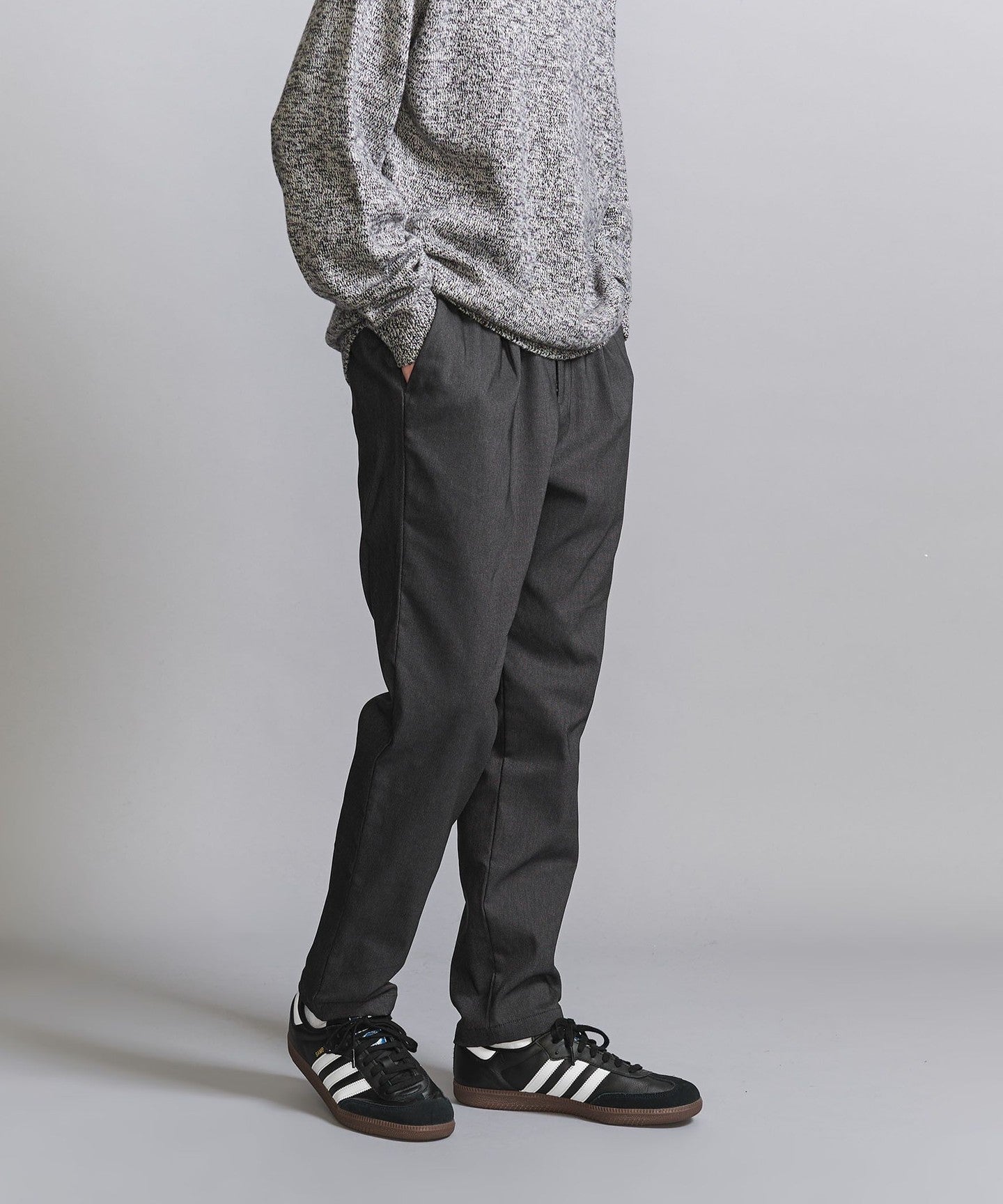 By adding tucks to create room around the waist, thighs, and hips, and tapering towards the hem, the silhouette is elegant and clean-looking.