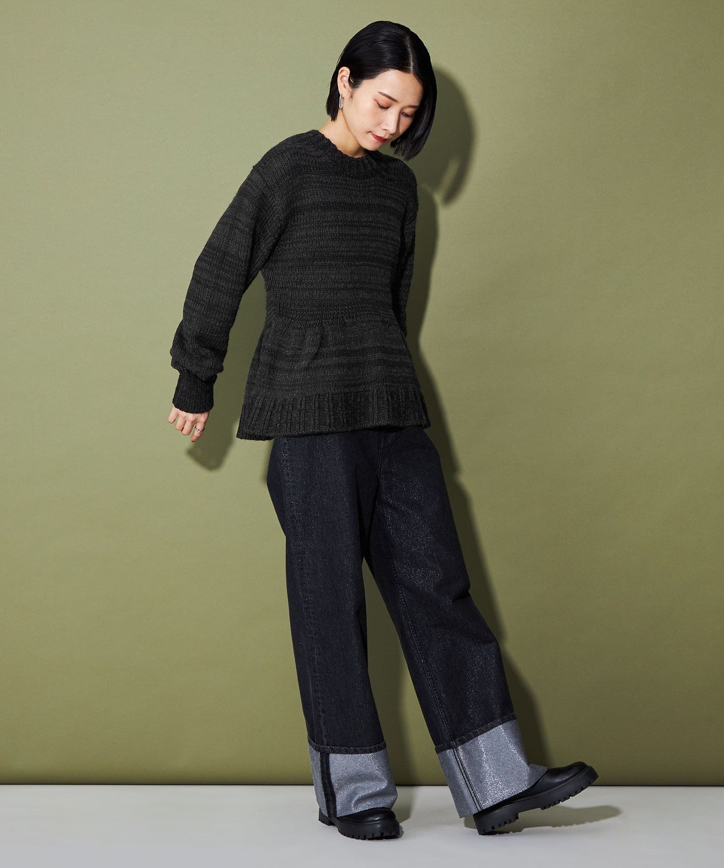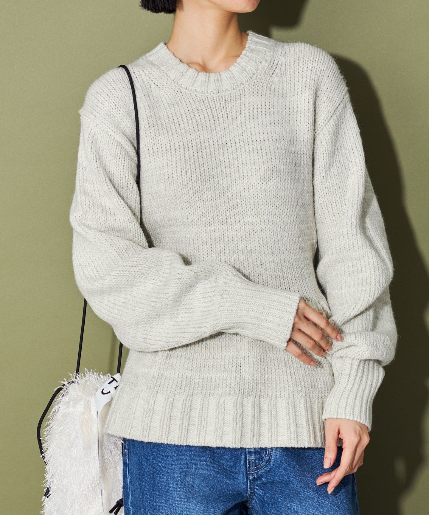 The thick ribbed crew neck and long ribbed cuffs add a casual feel, making this a perfect piece without being too sweet, achieving a sophisticated yet mature casual style.
