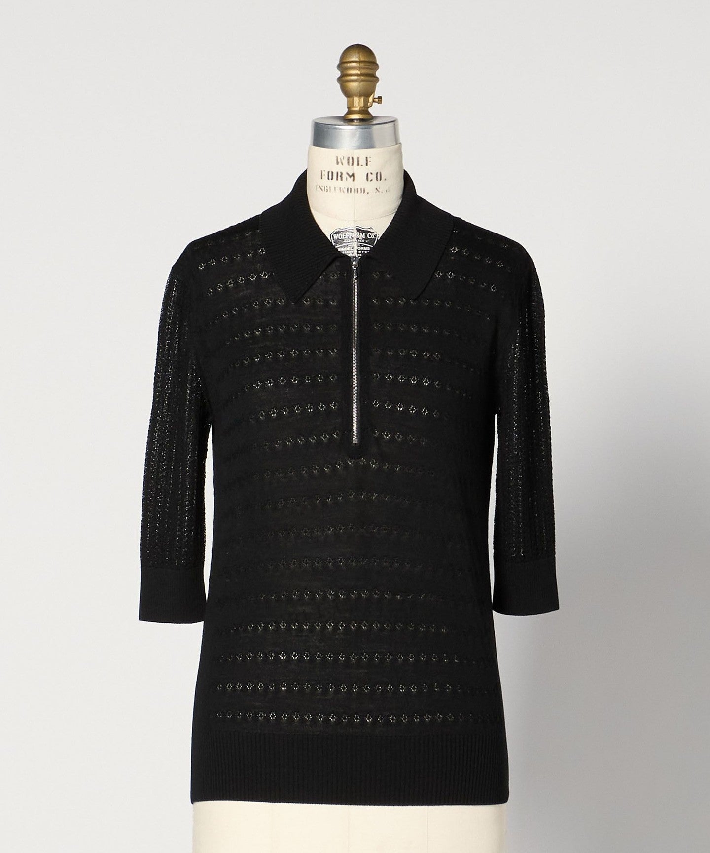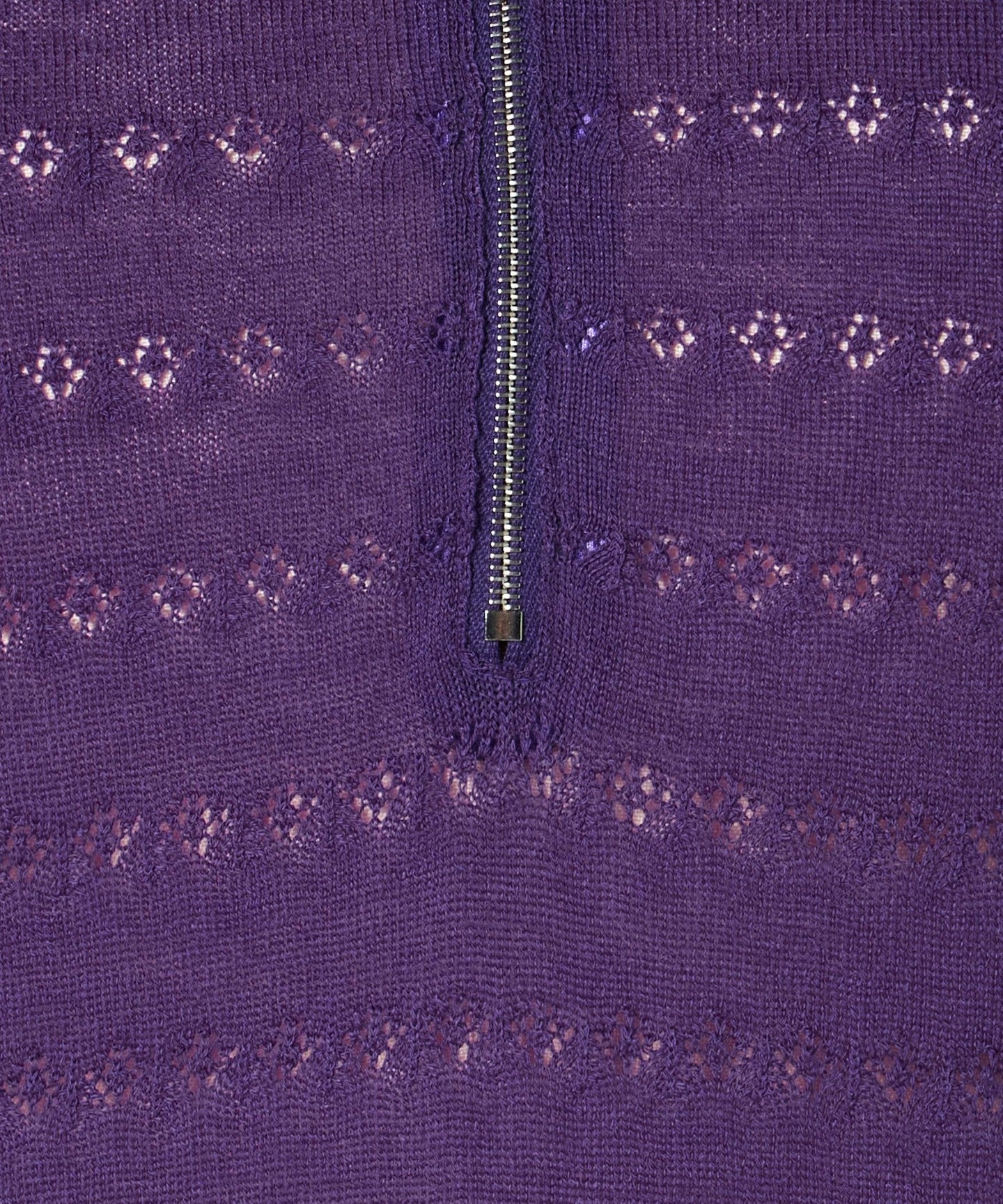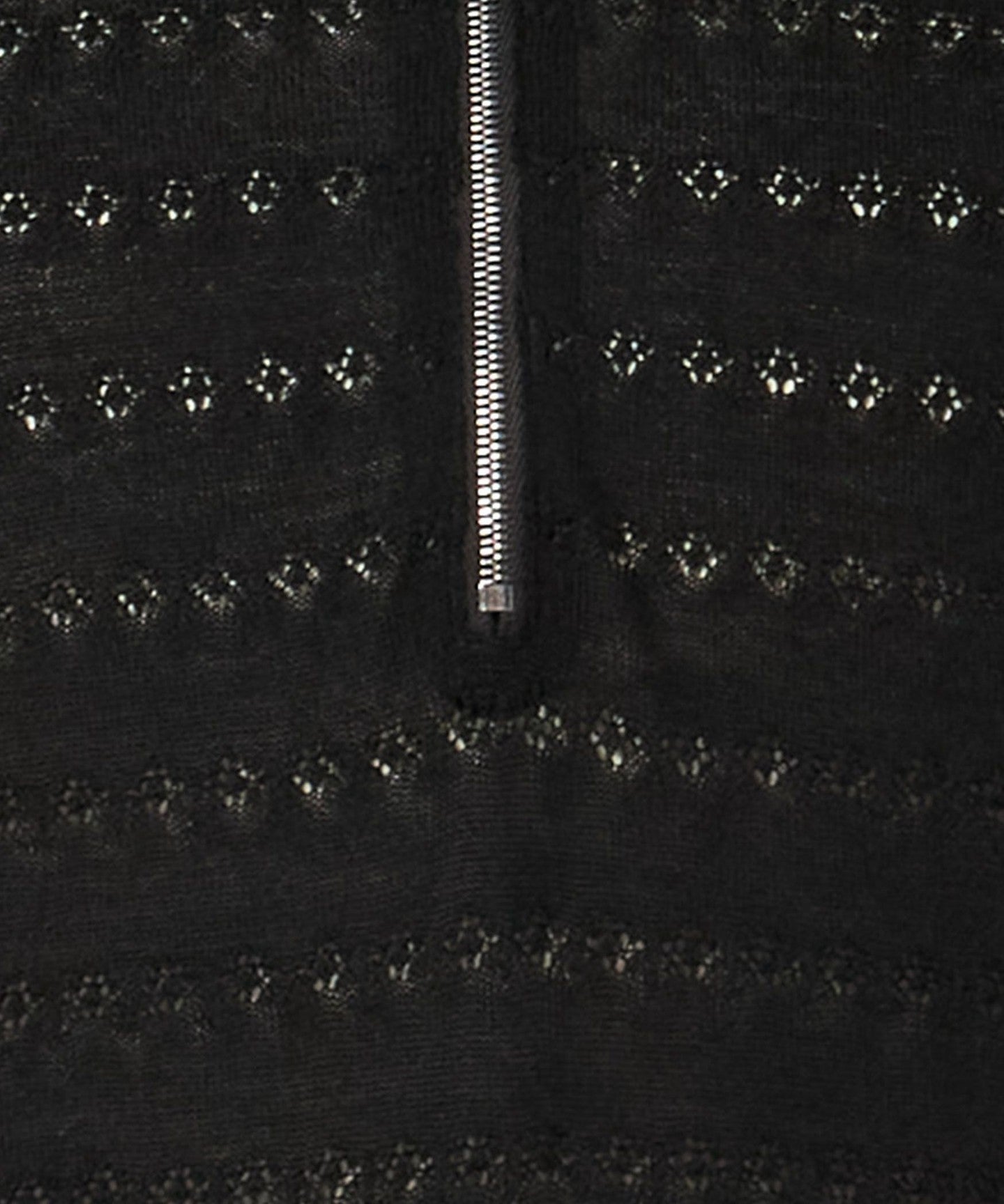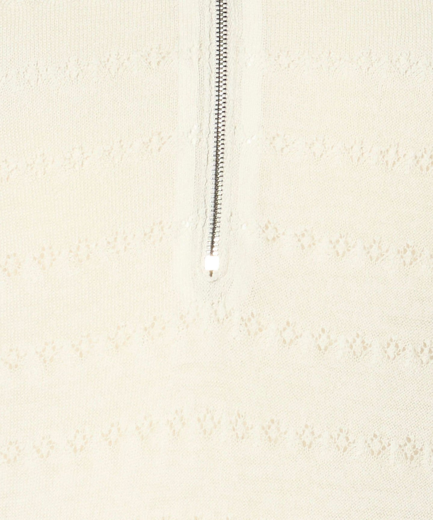 This knit features a feminine lace knit fabric and a balanced regular collar zip design.
