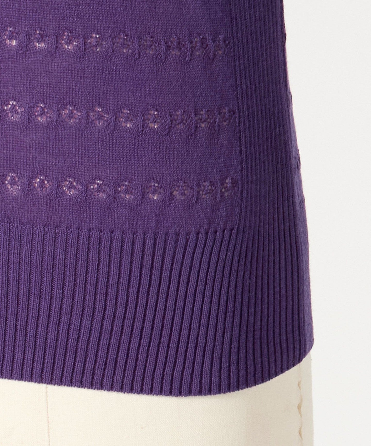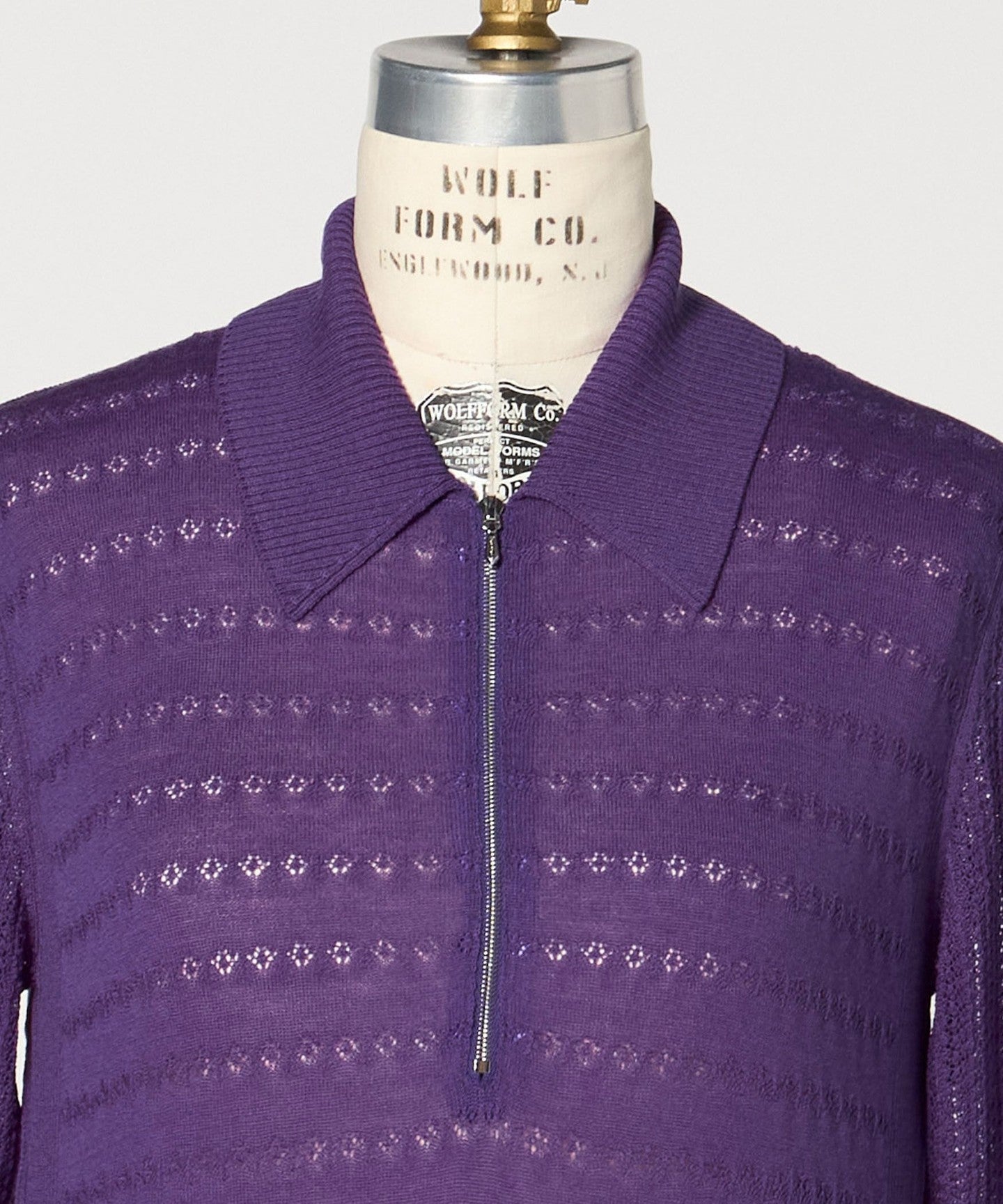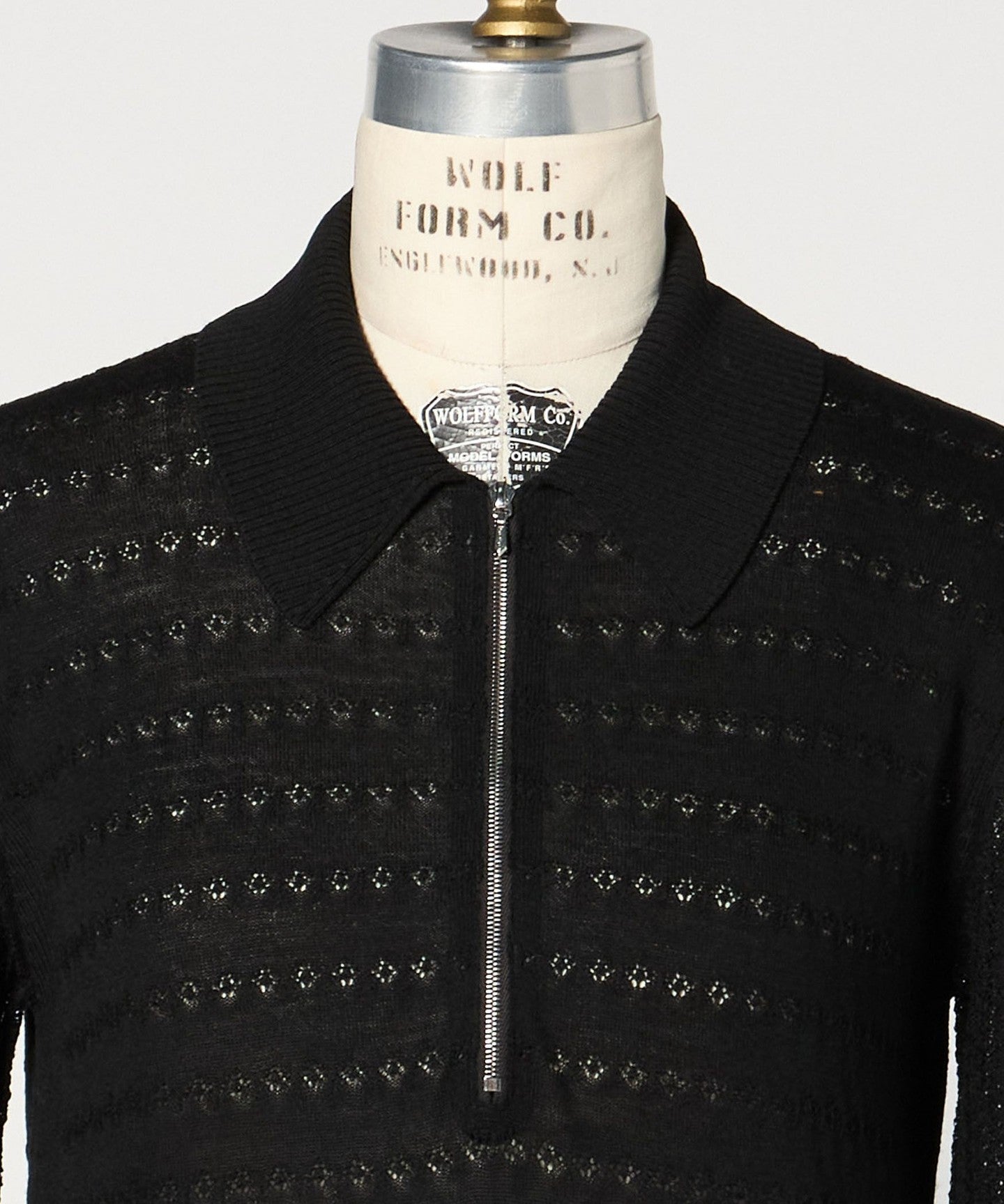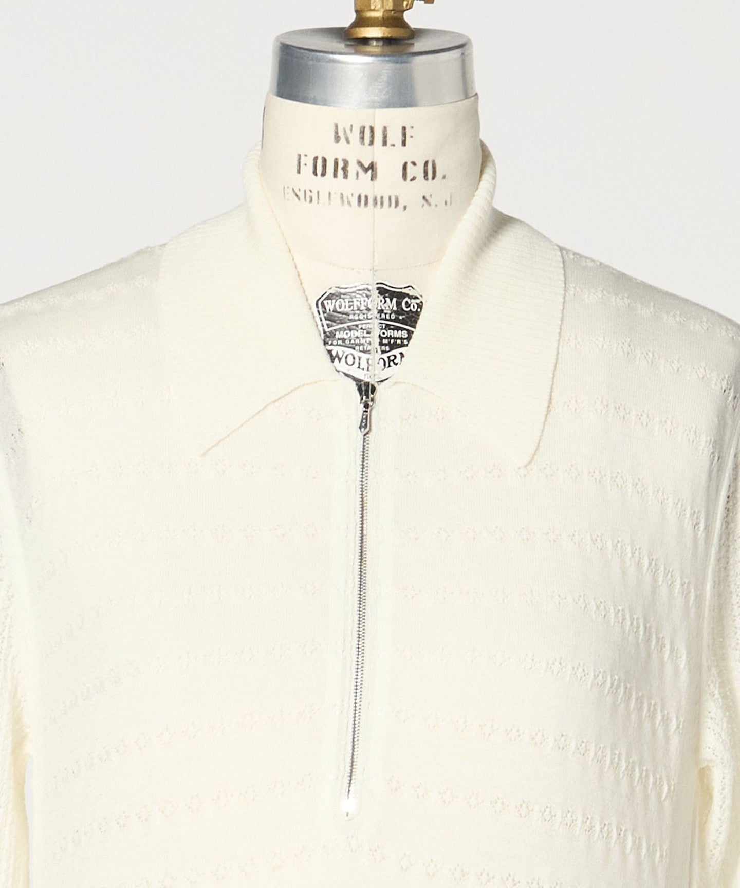 This knit features a feminine lace knit fabric and a balanced regular collar zip design.