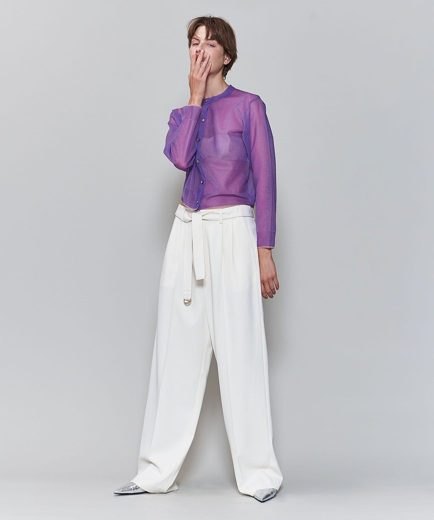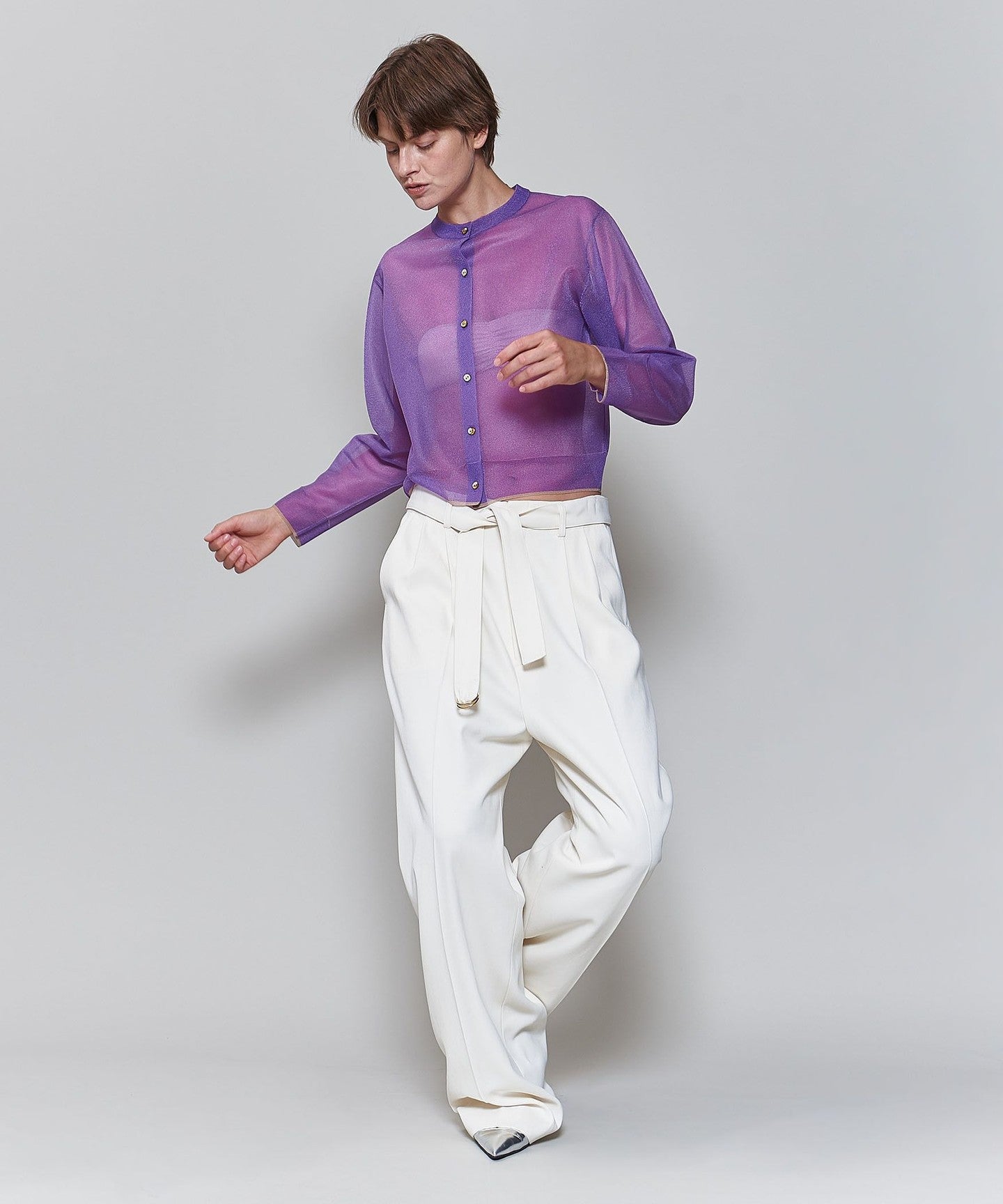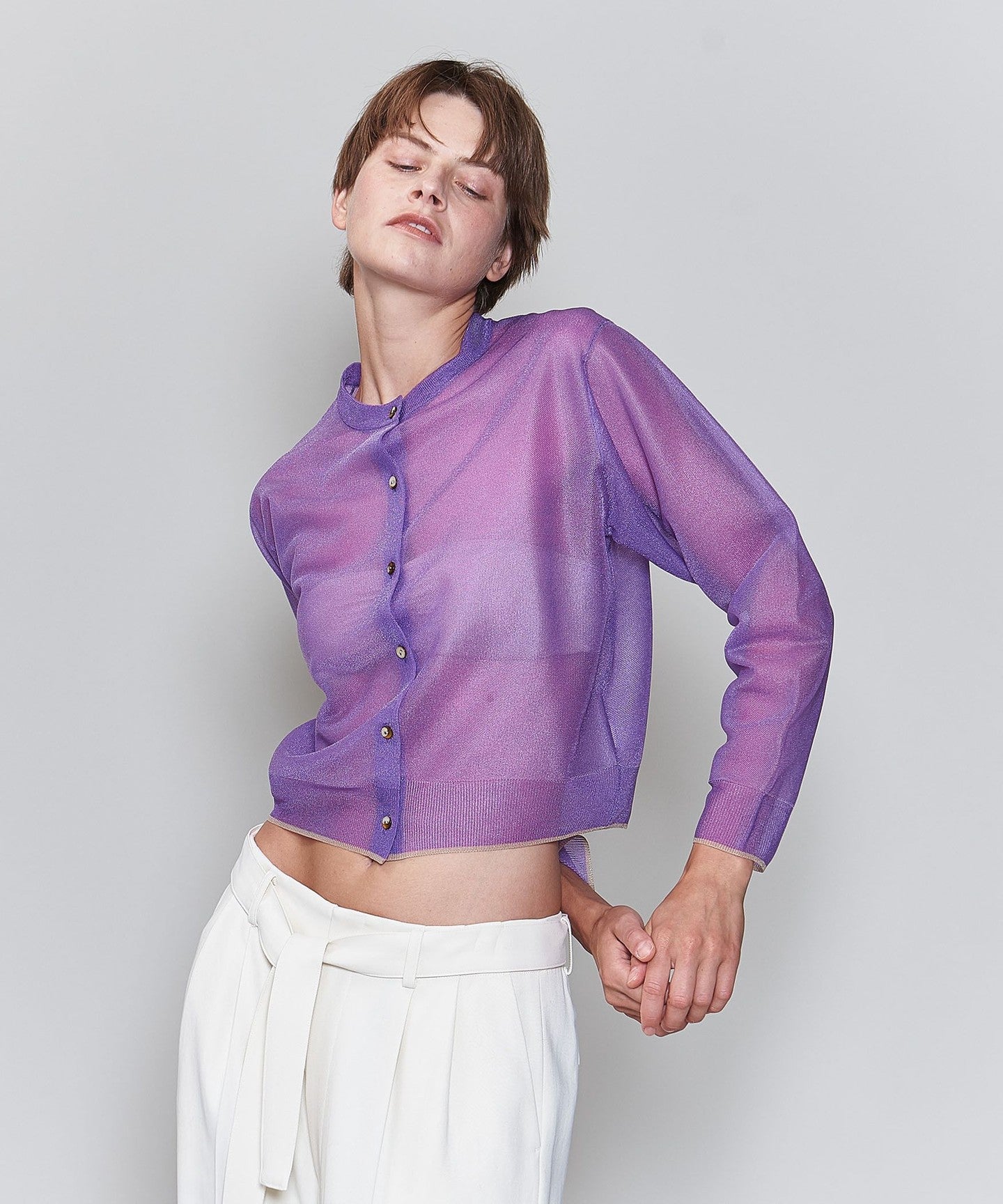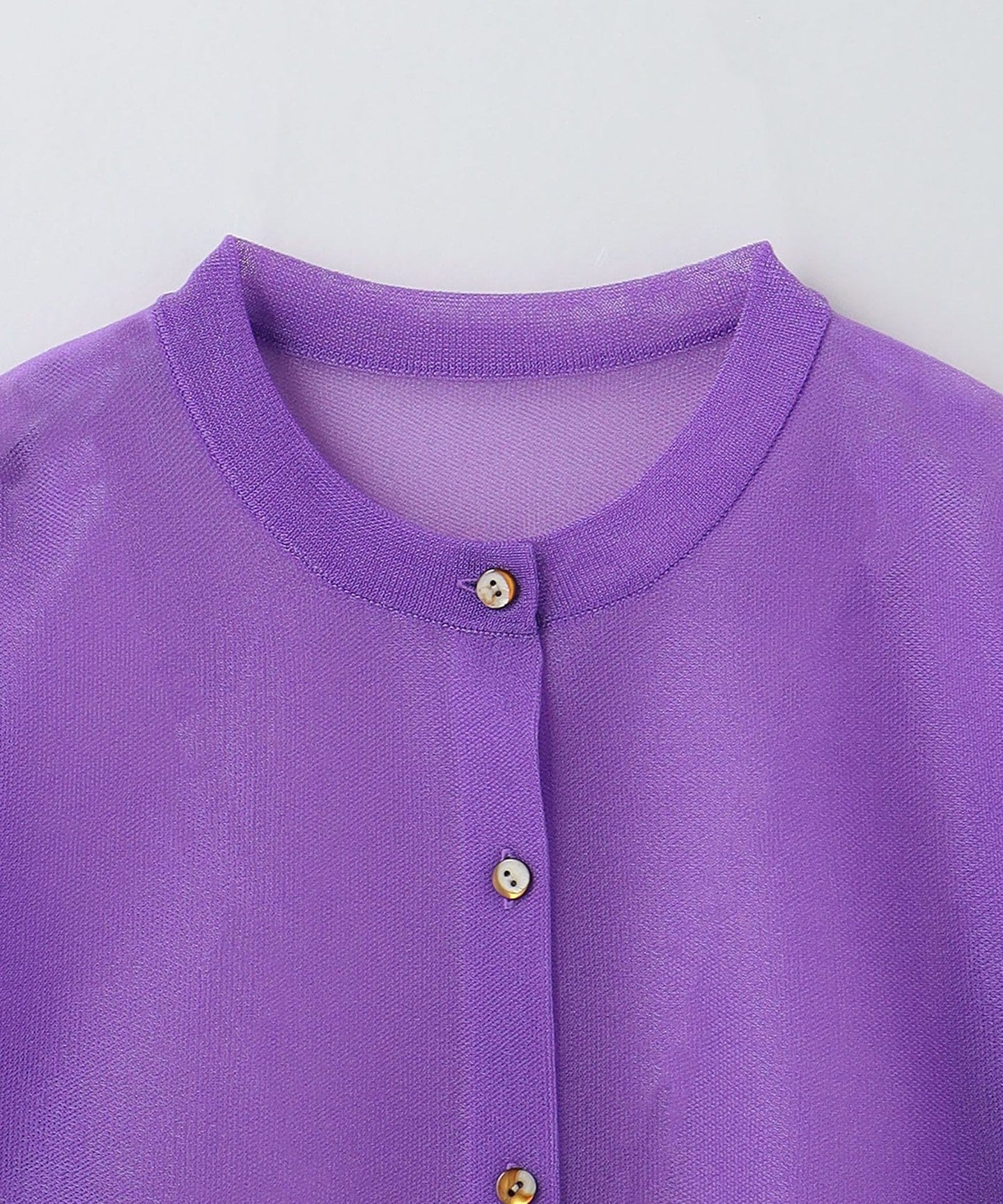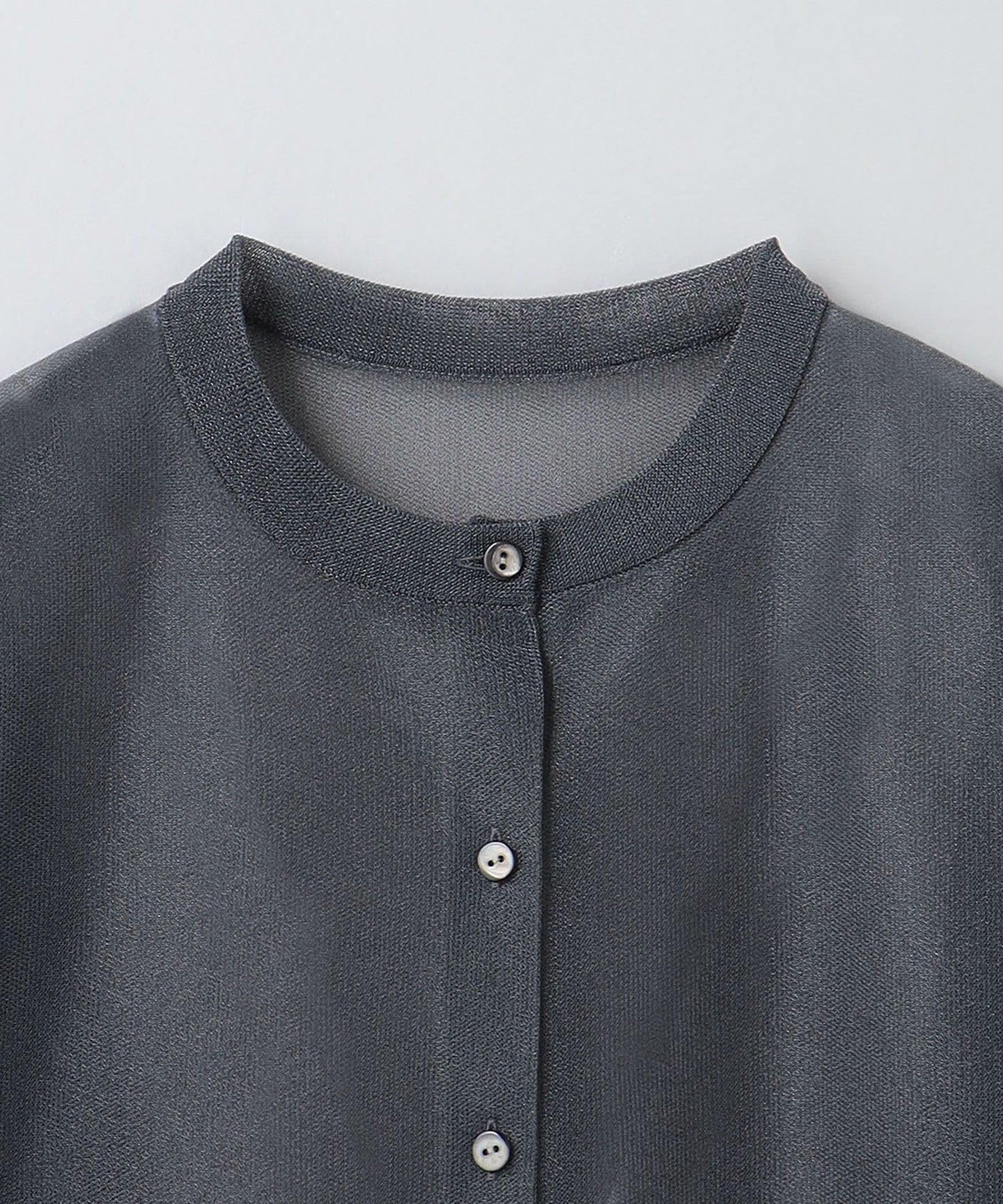 This cardigan is made using clear, translucent yarn, giving it a slightly firm, just-right thickness.
