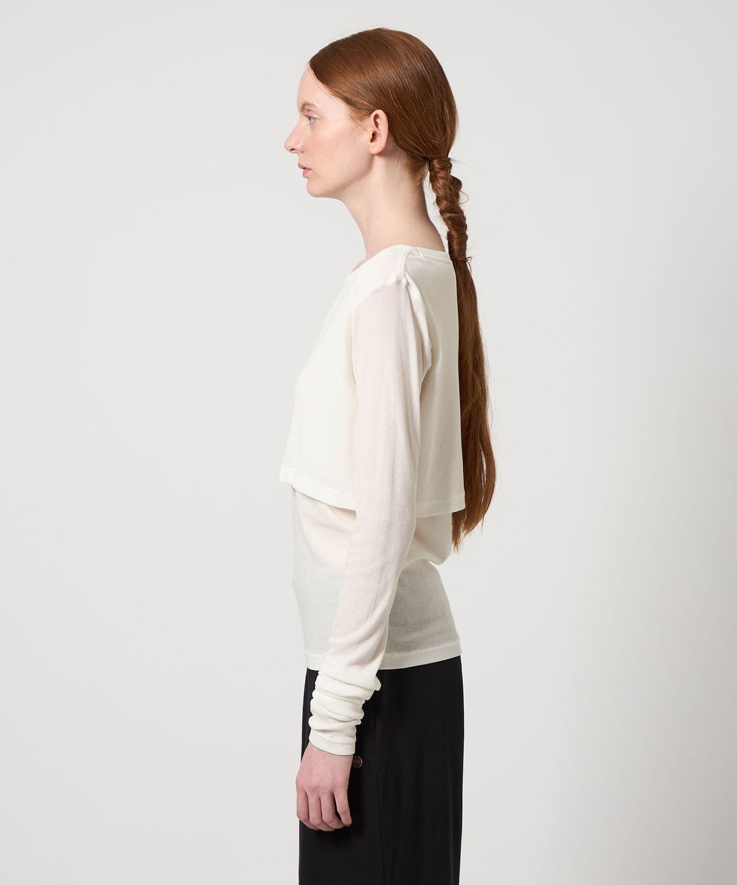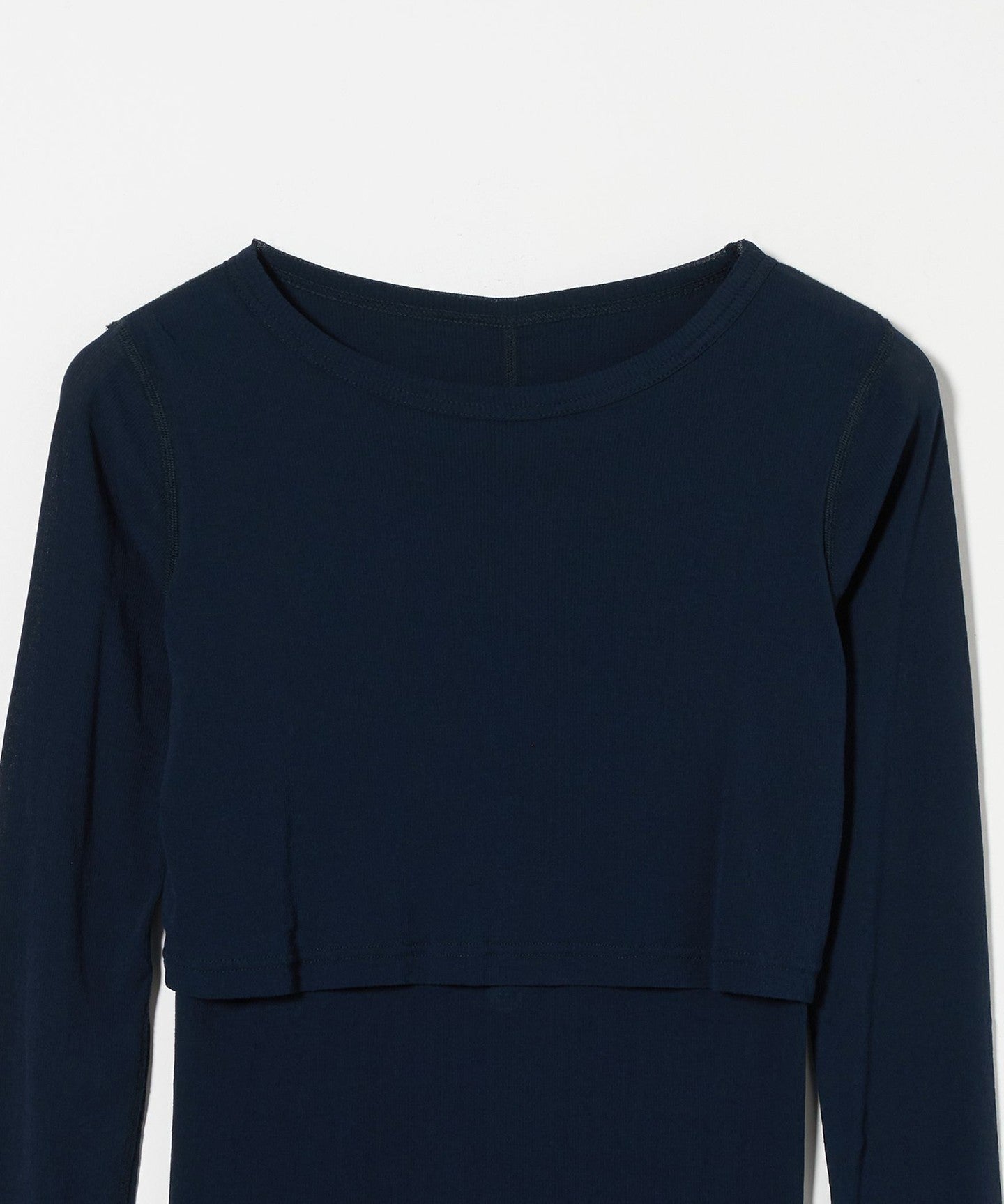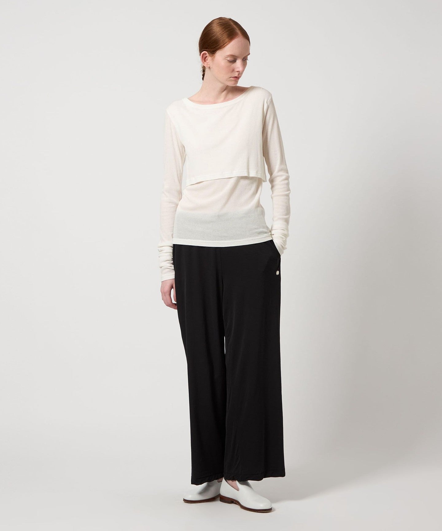 A long-sleeved cut-and-sew featuring a relaxed layered design.