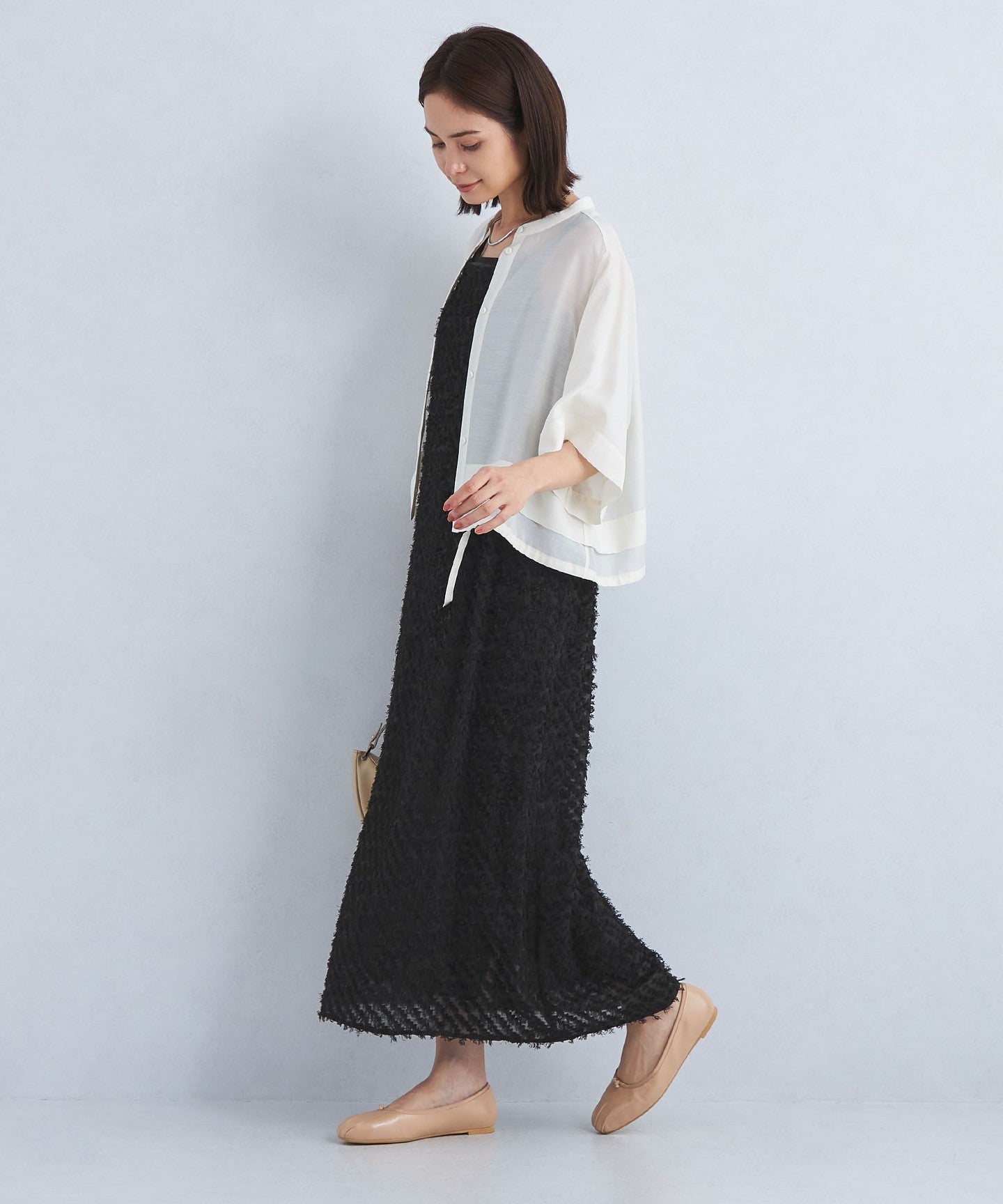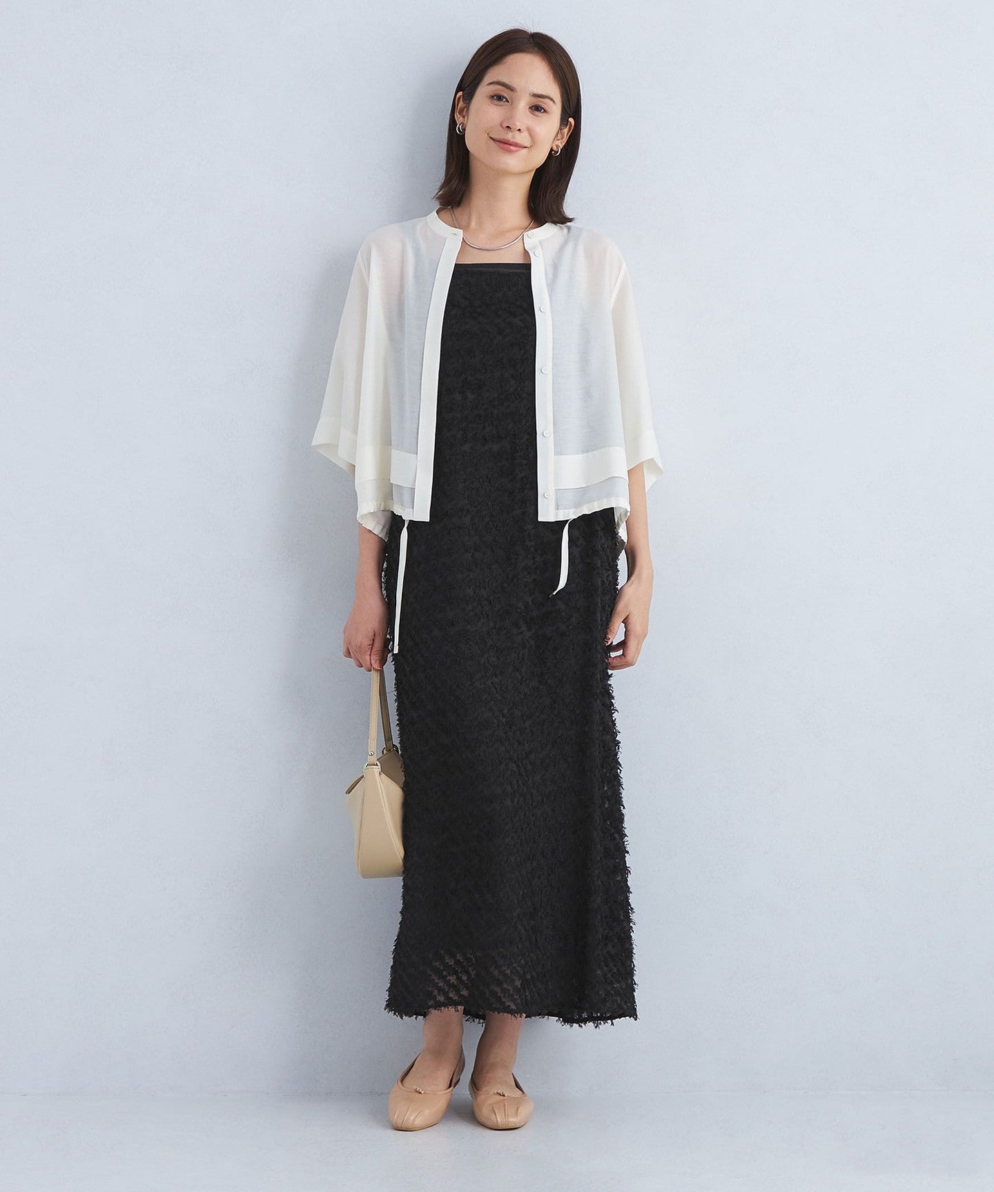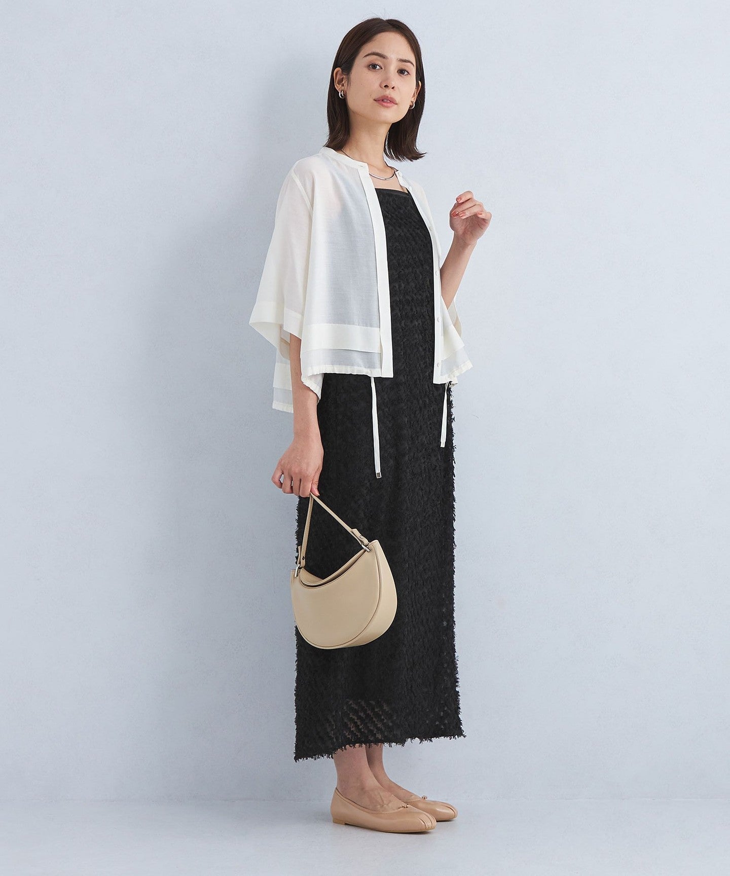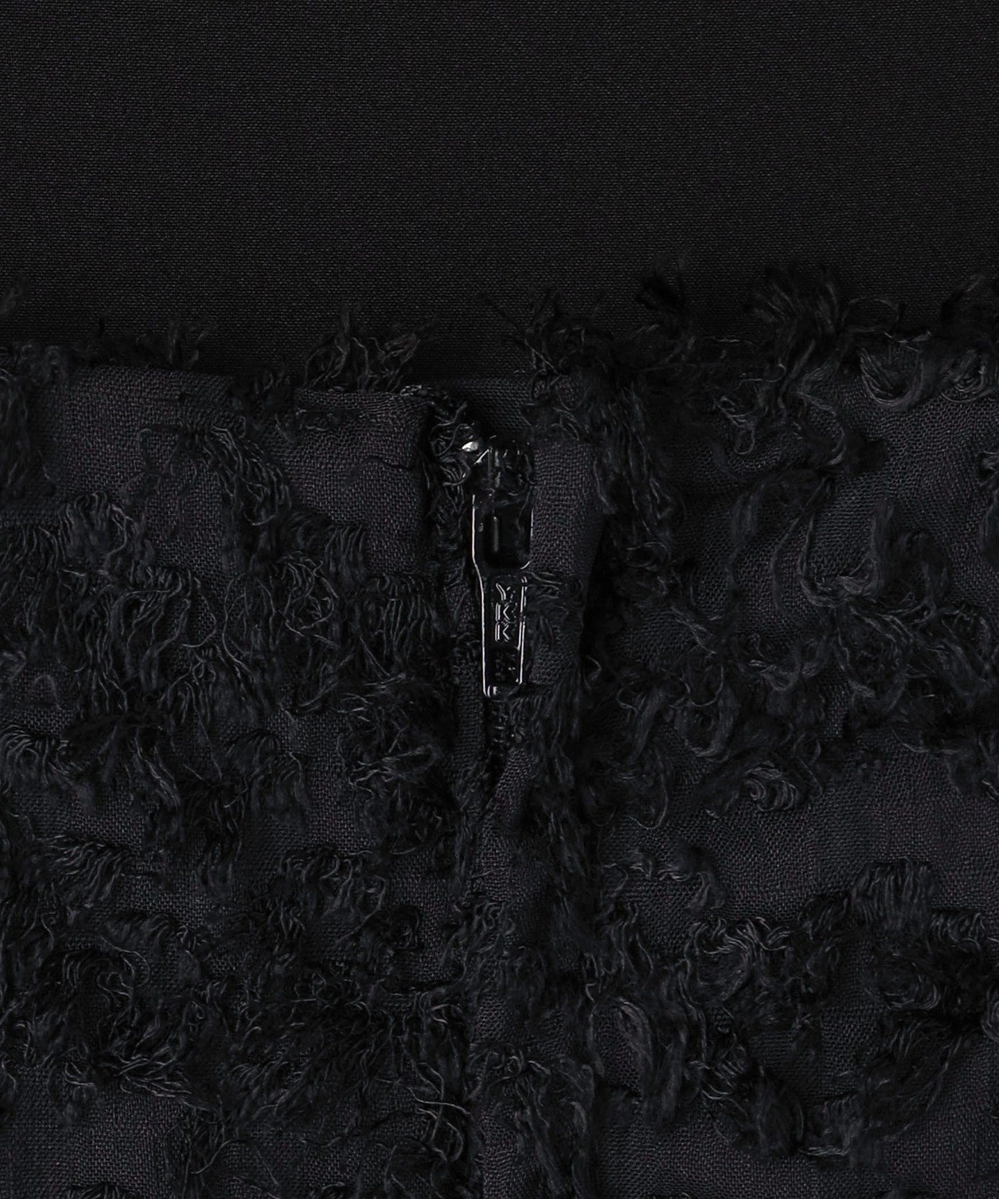 While the jacquard gives it a voluminous feel, the silhouette has been adjusted to give it a clean look.