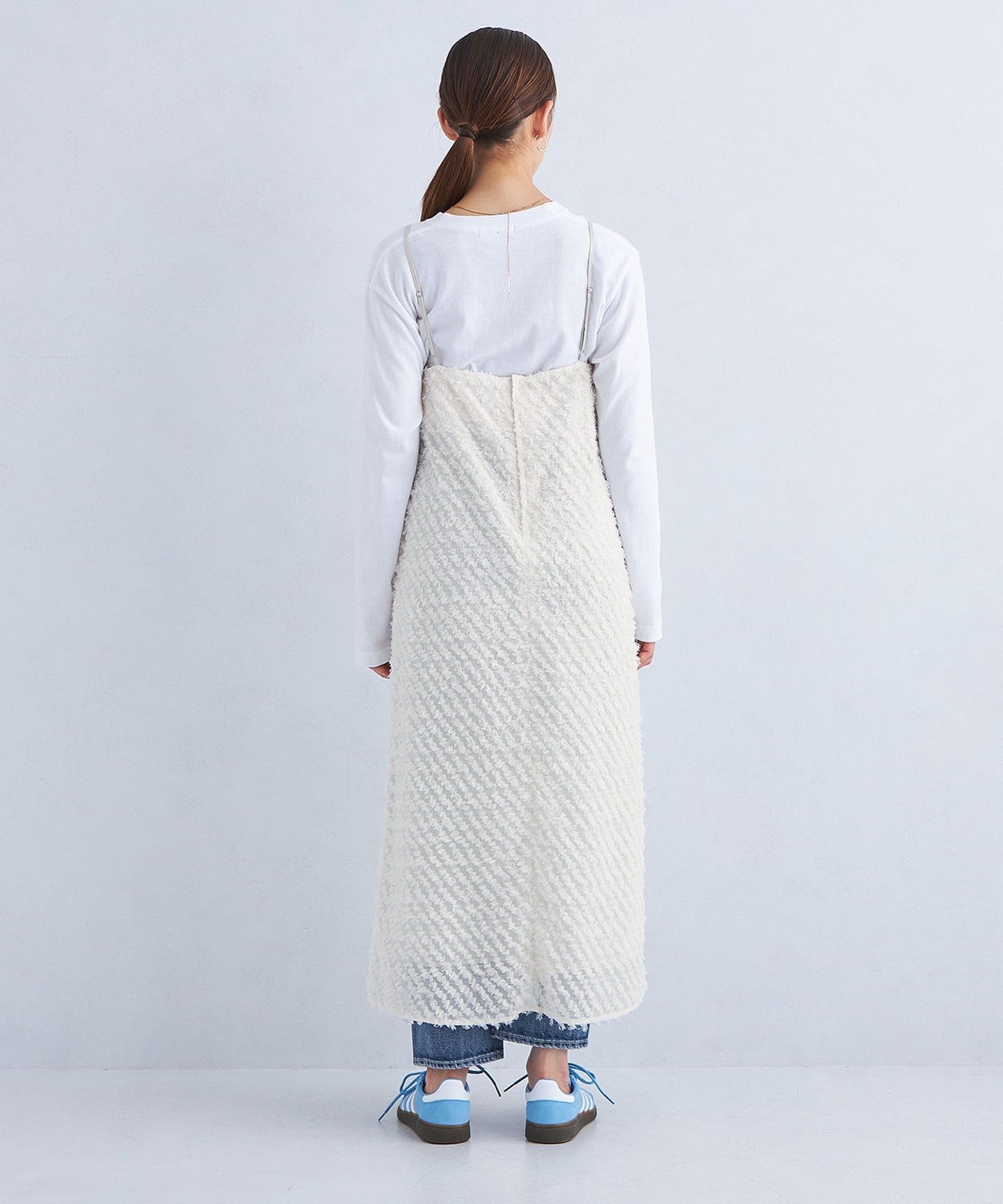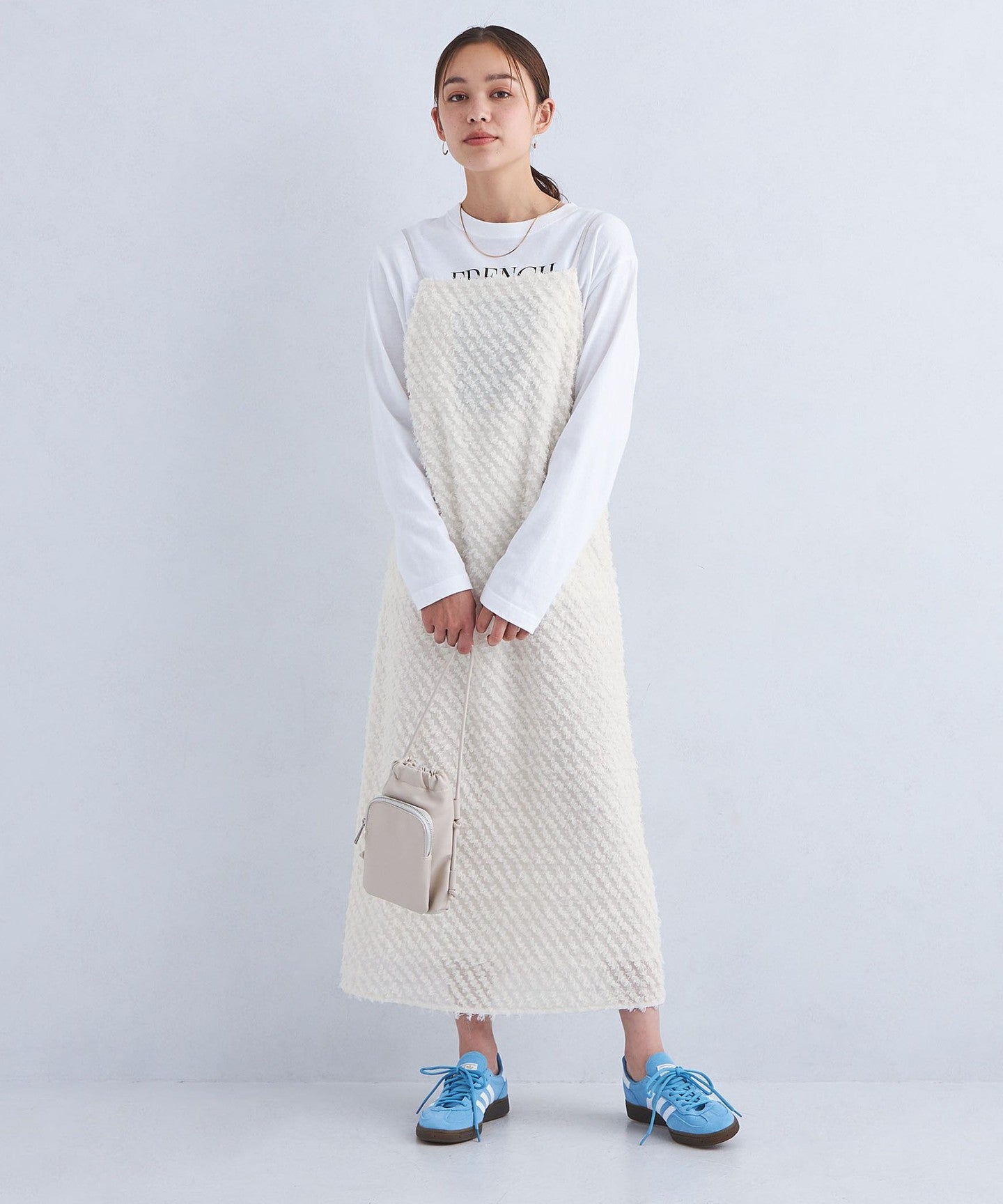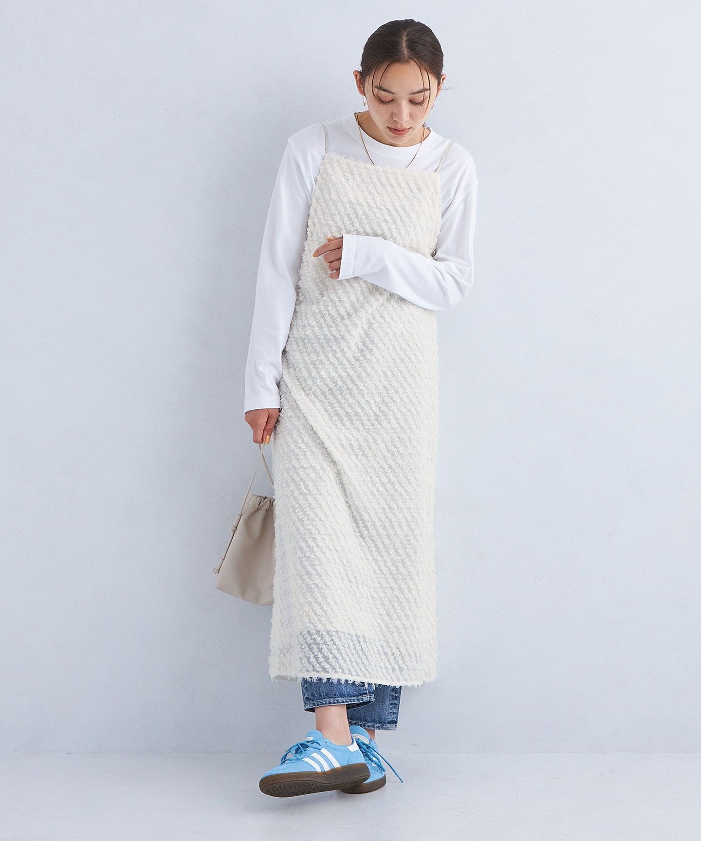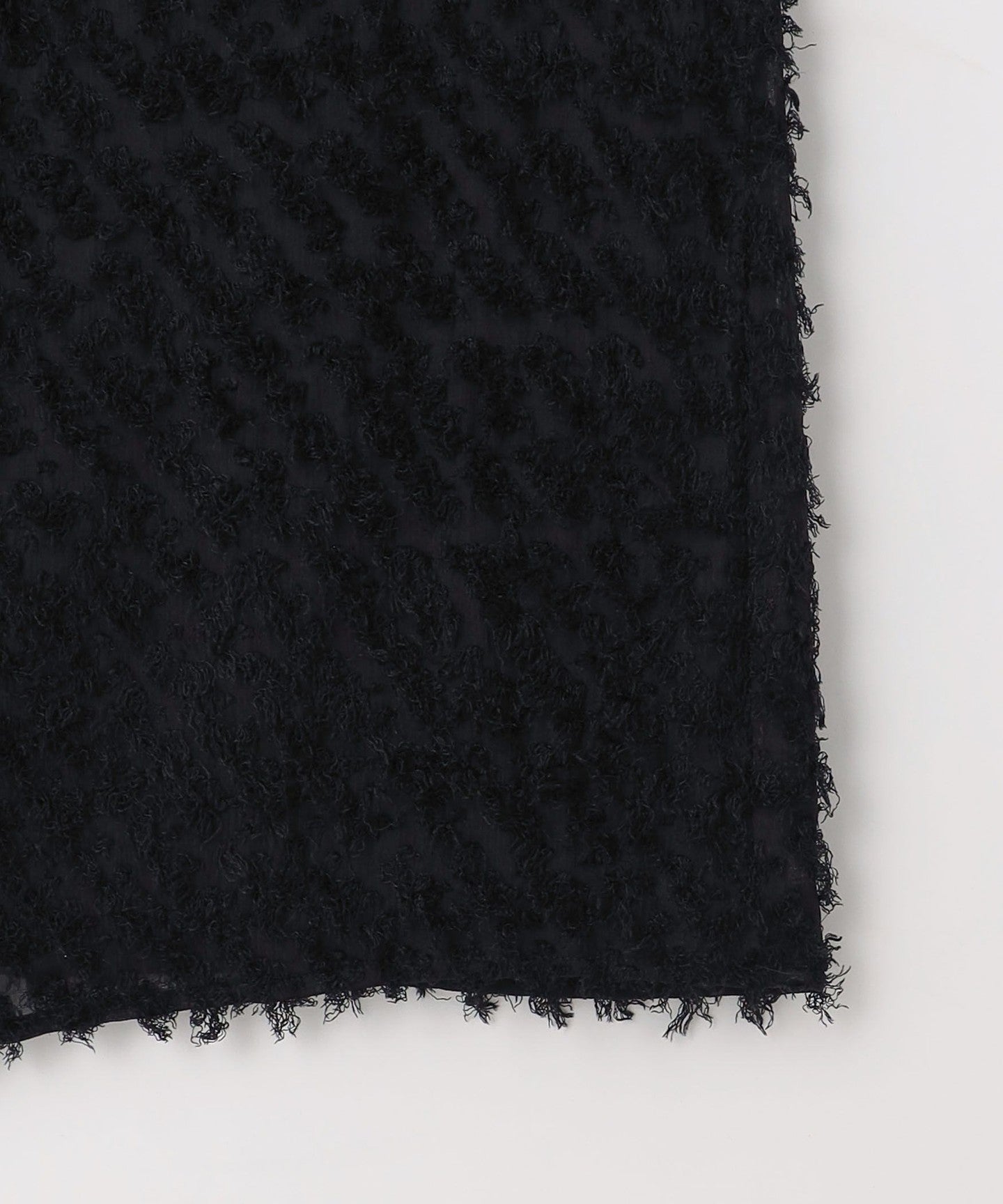 While the jacquard gives it a voluminous feel, the silhouette has been adjusted to give it a clean look.