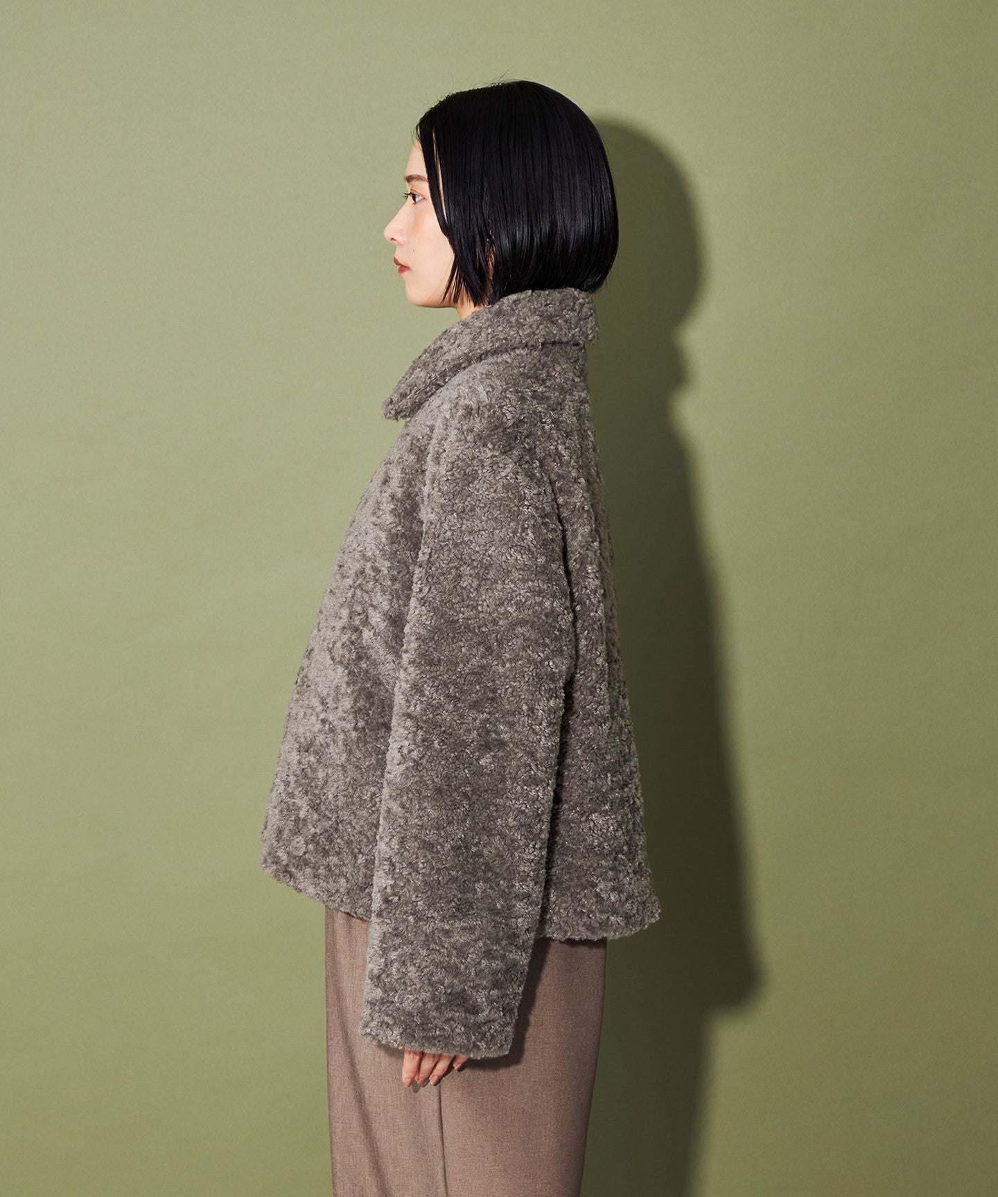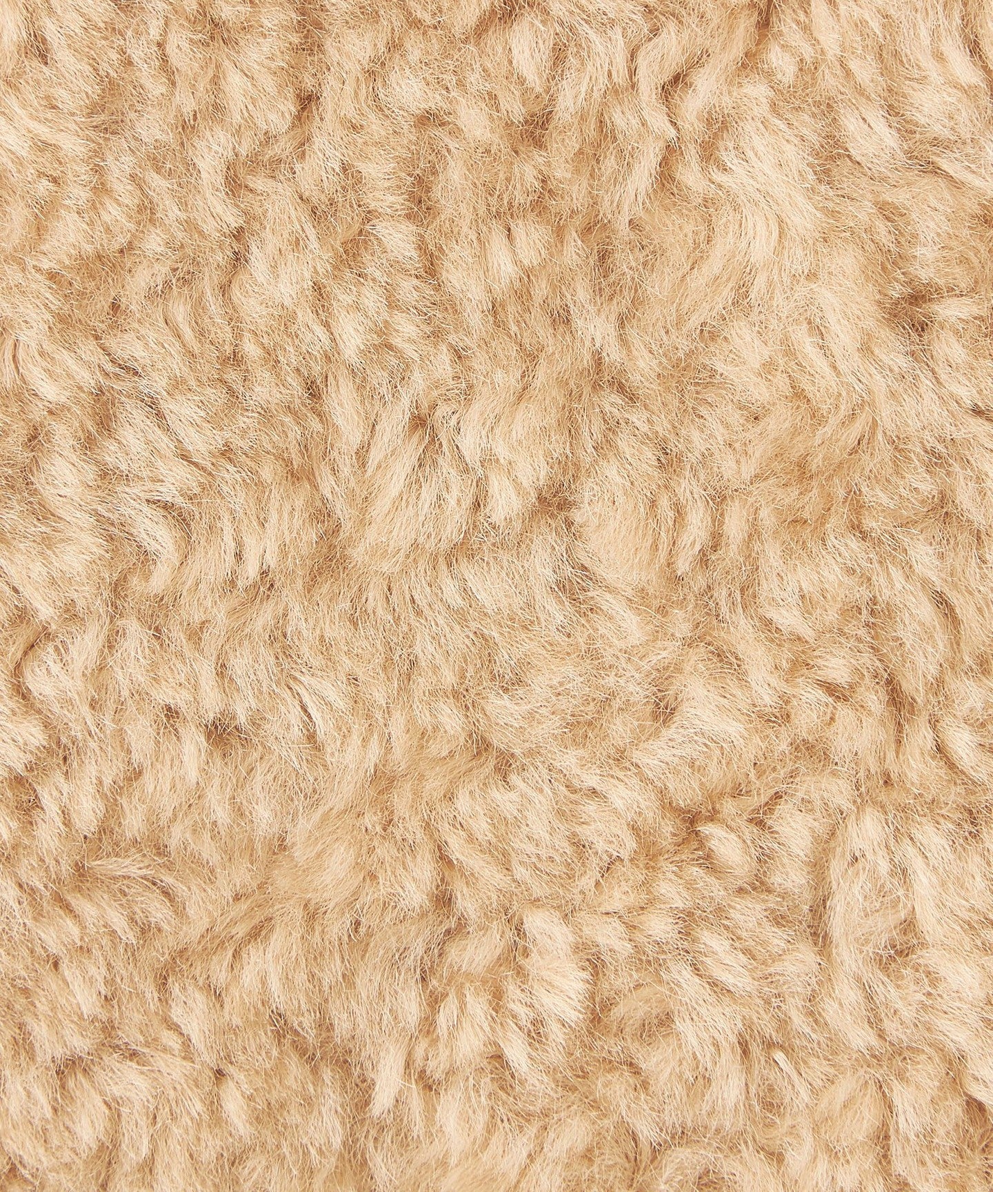 It uses sheepskin-style boa, which has a fluffy and voluminous texture.