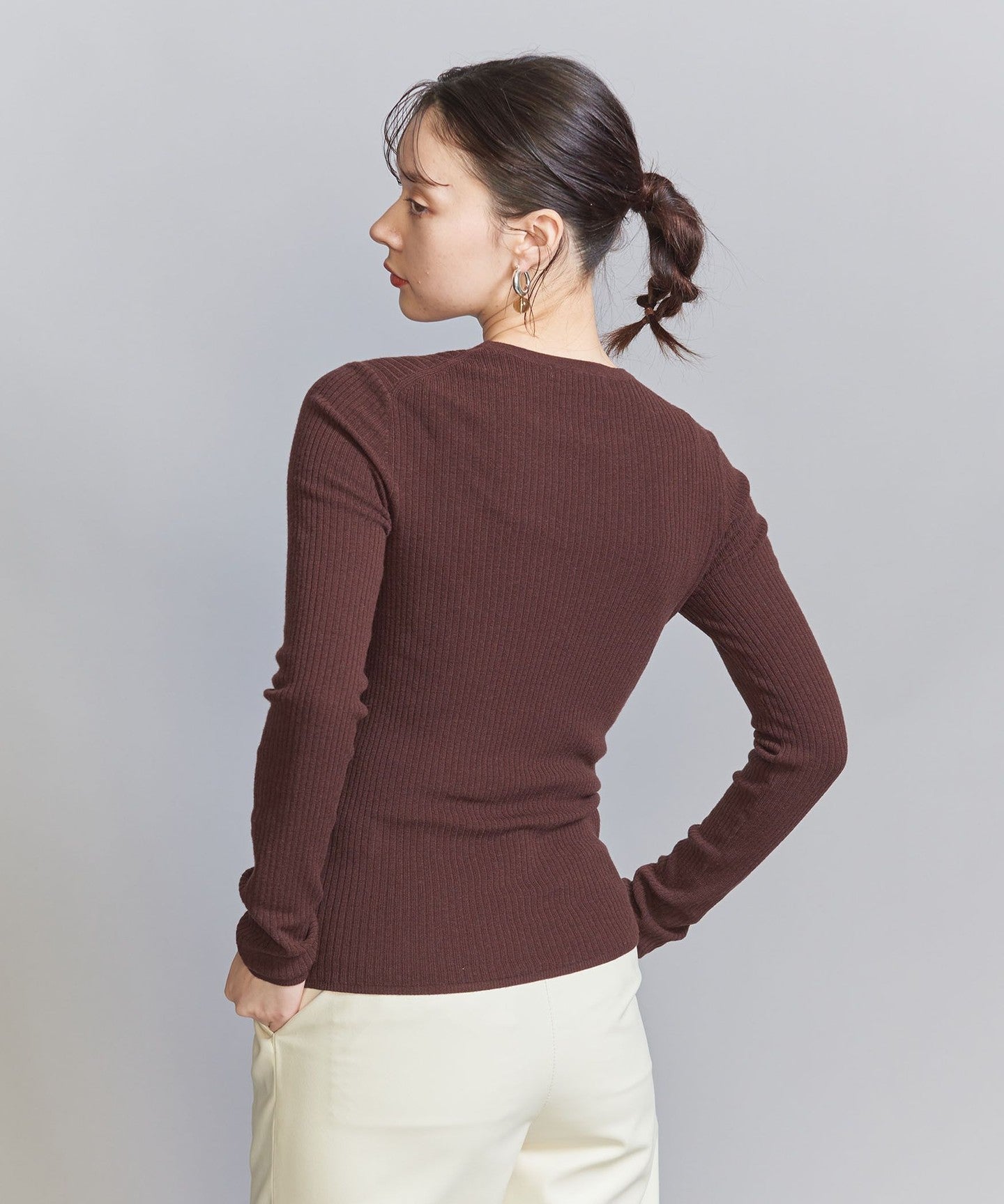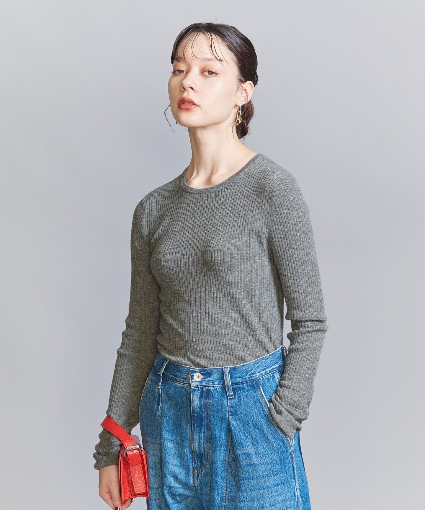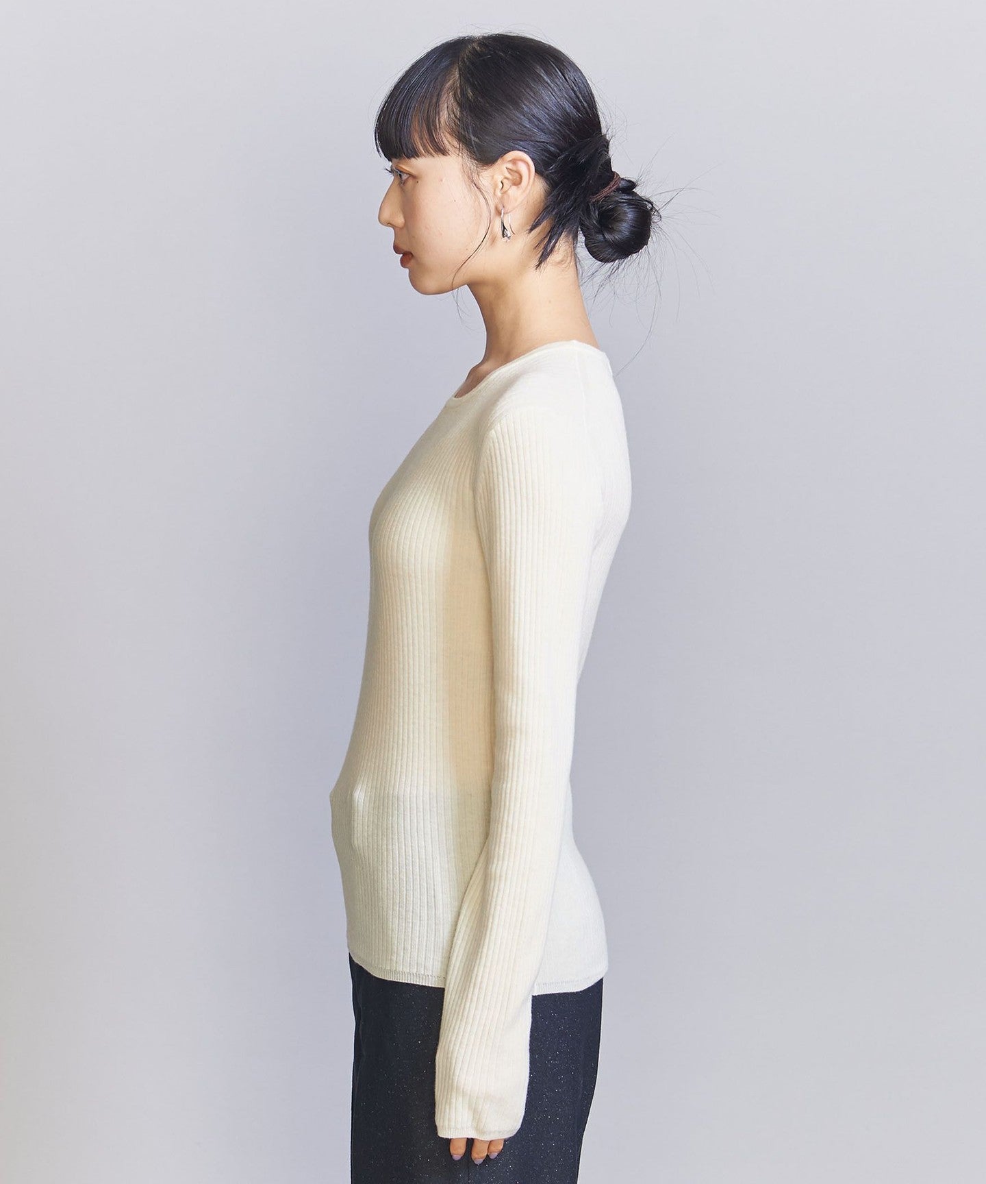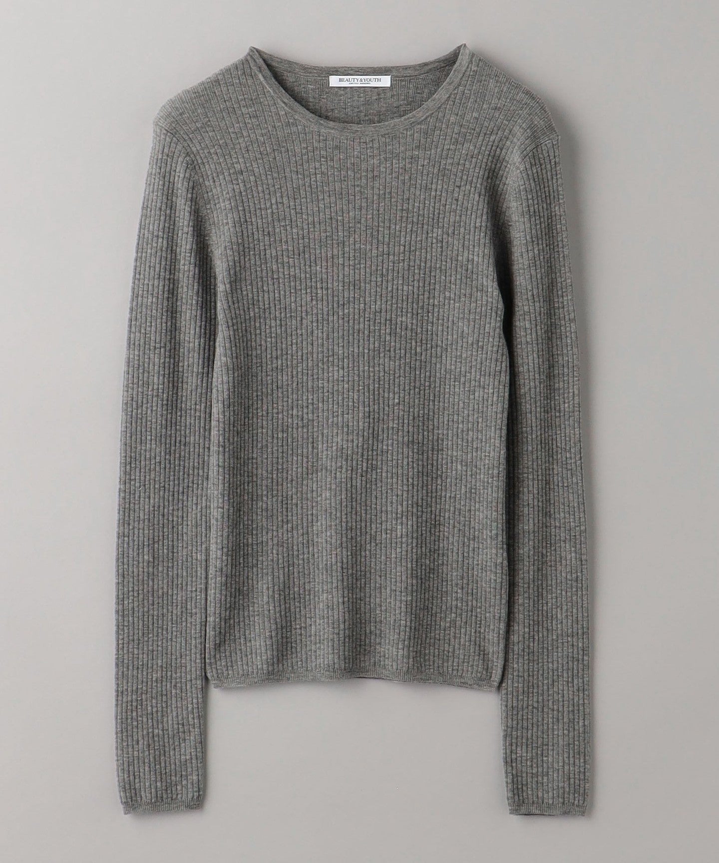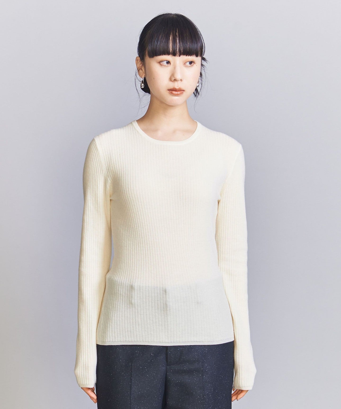 WoolThe blended fine-gauge rib material gives it a delicate sheer feel.