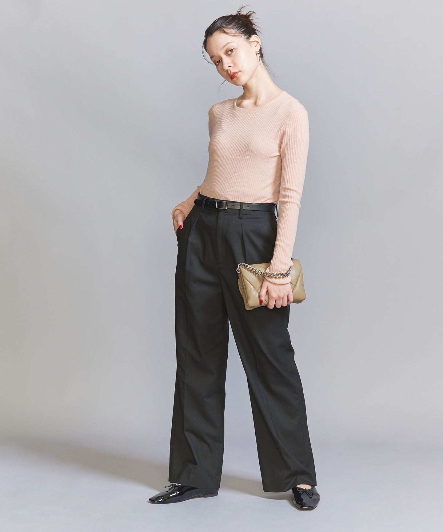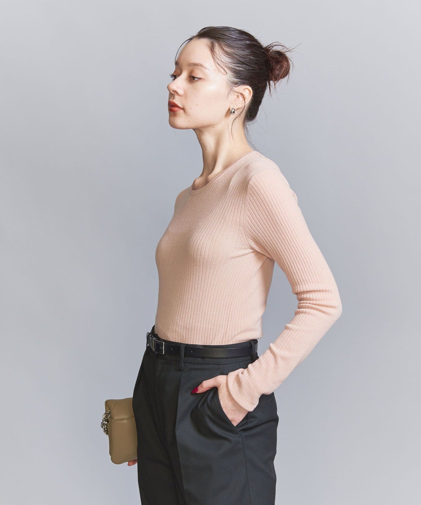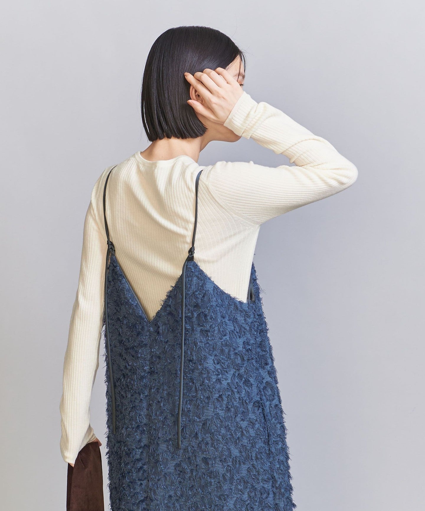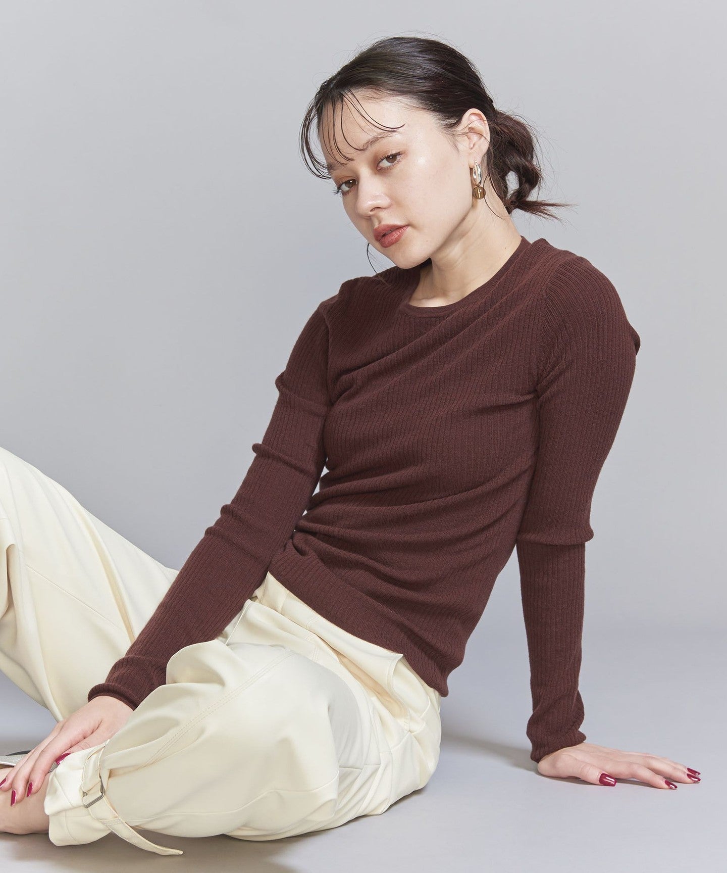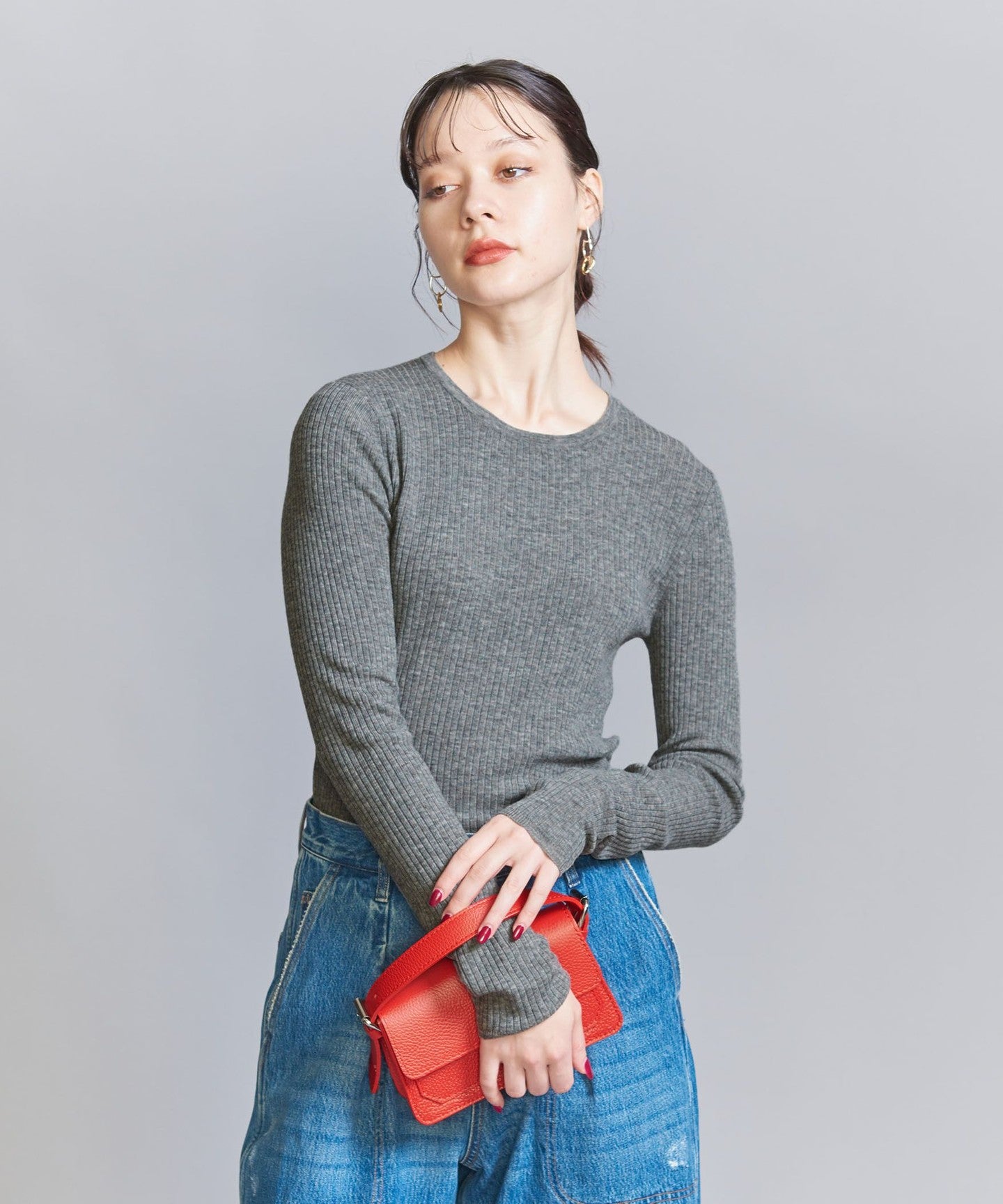 WoolThe blended fine-gauge rib material gives it a delicate sheer feel.