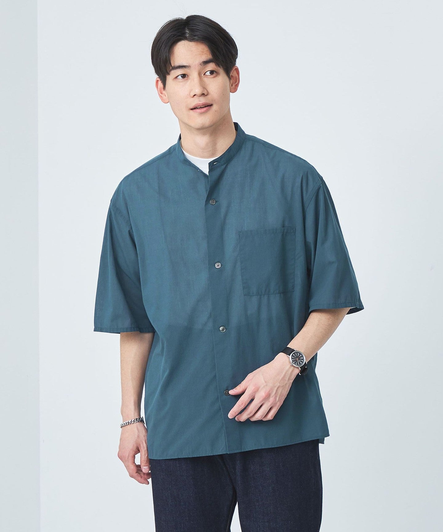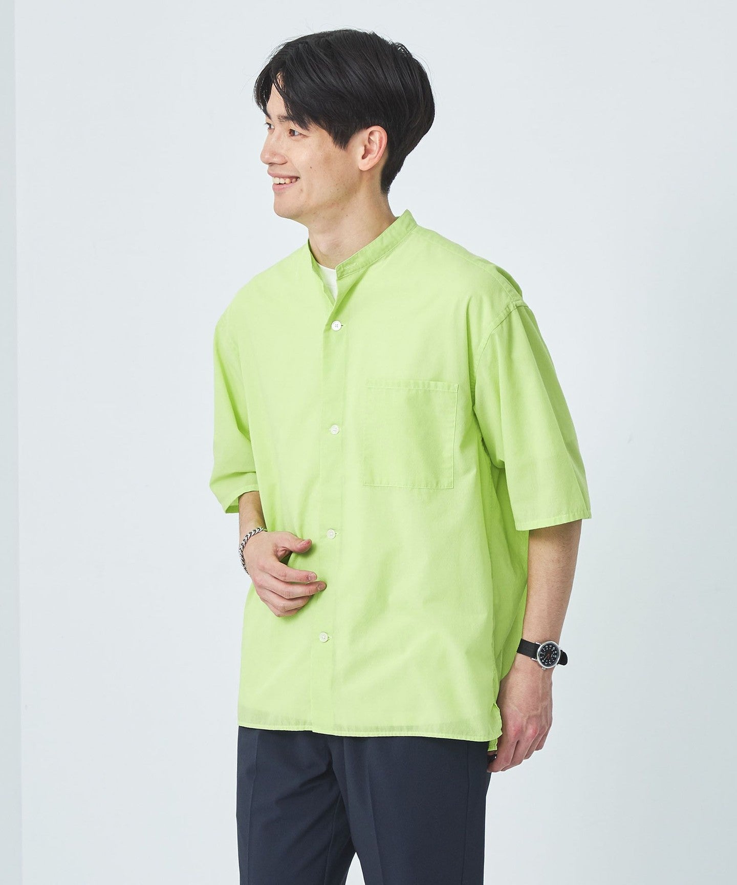 Boiled band collar short sleeve shirt