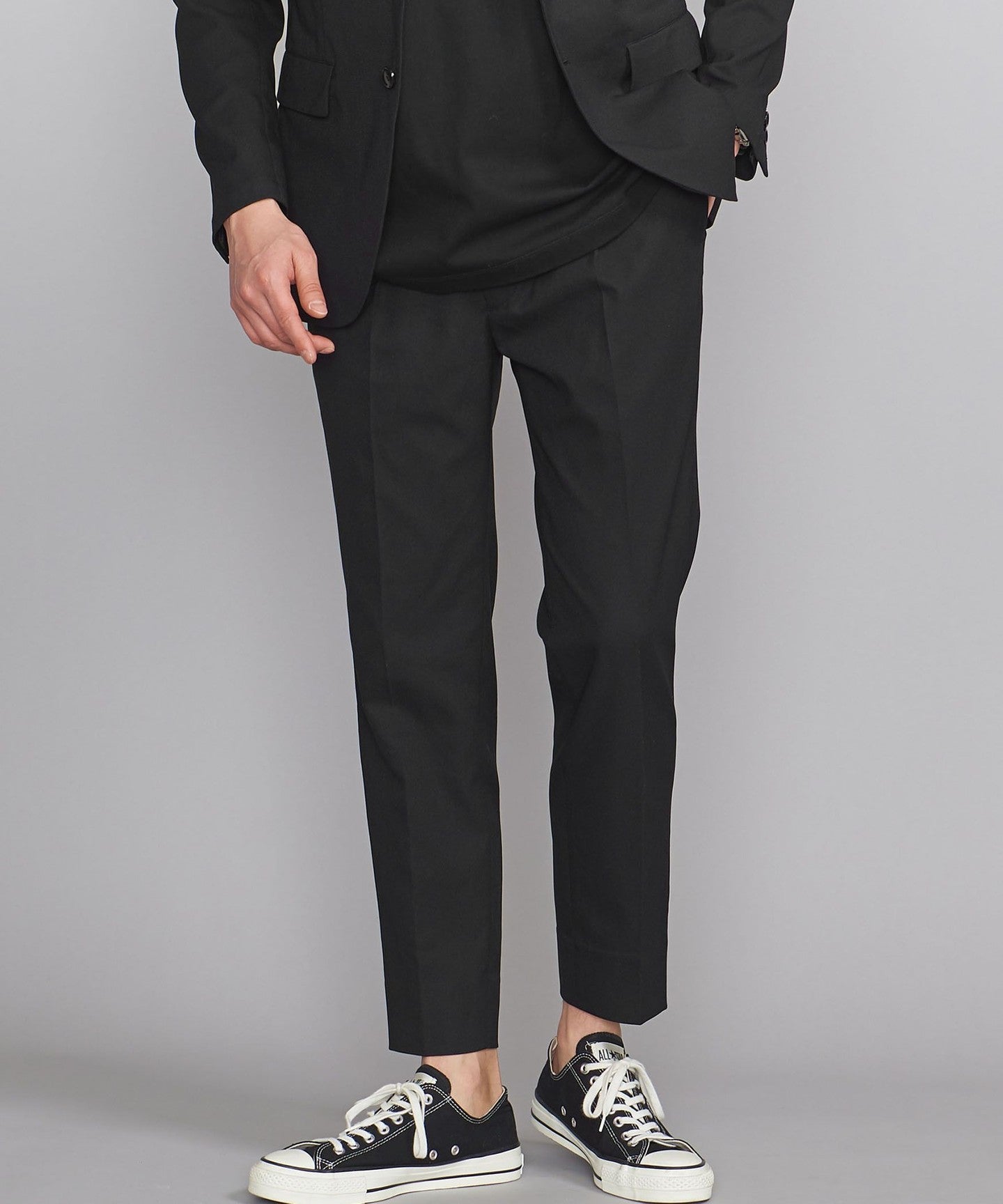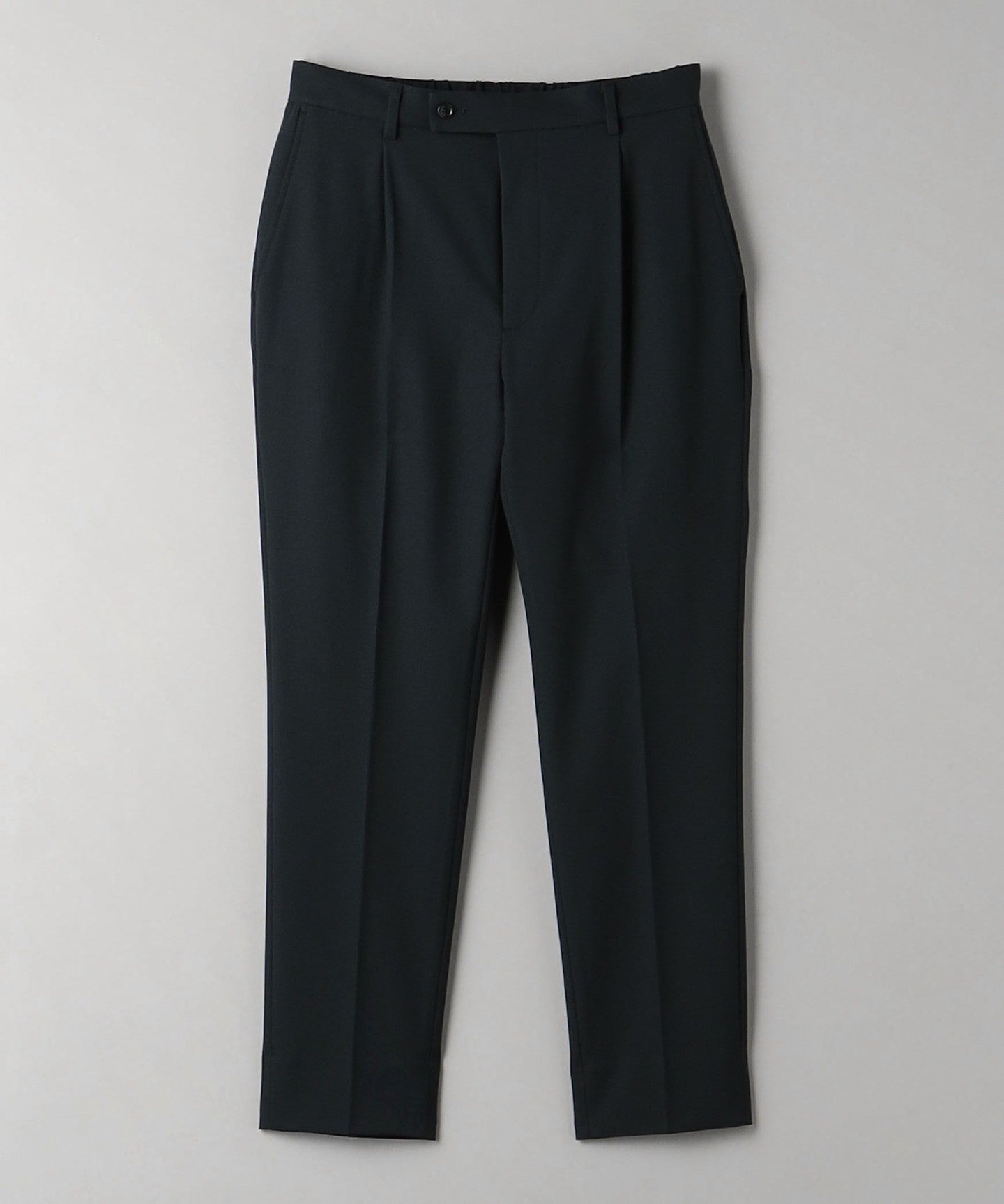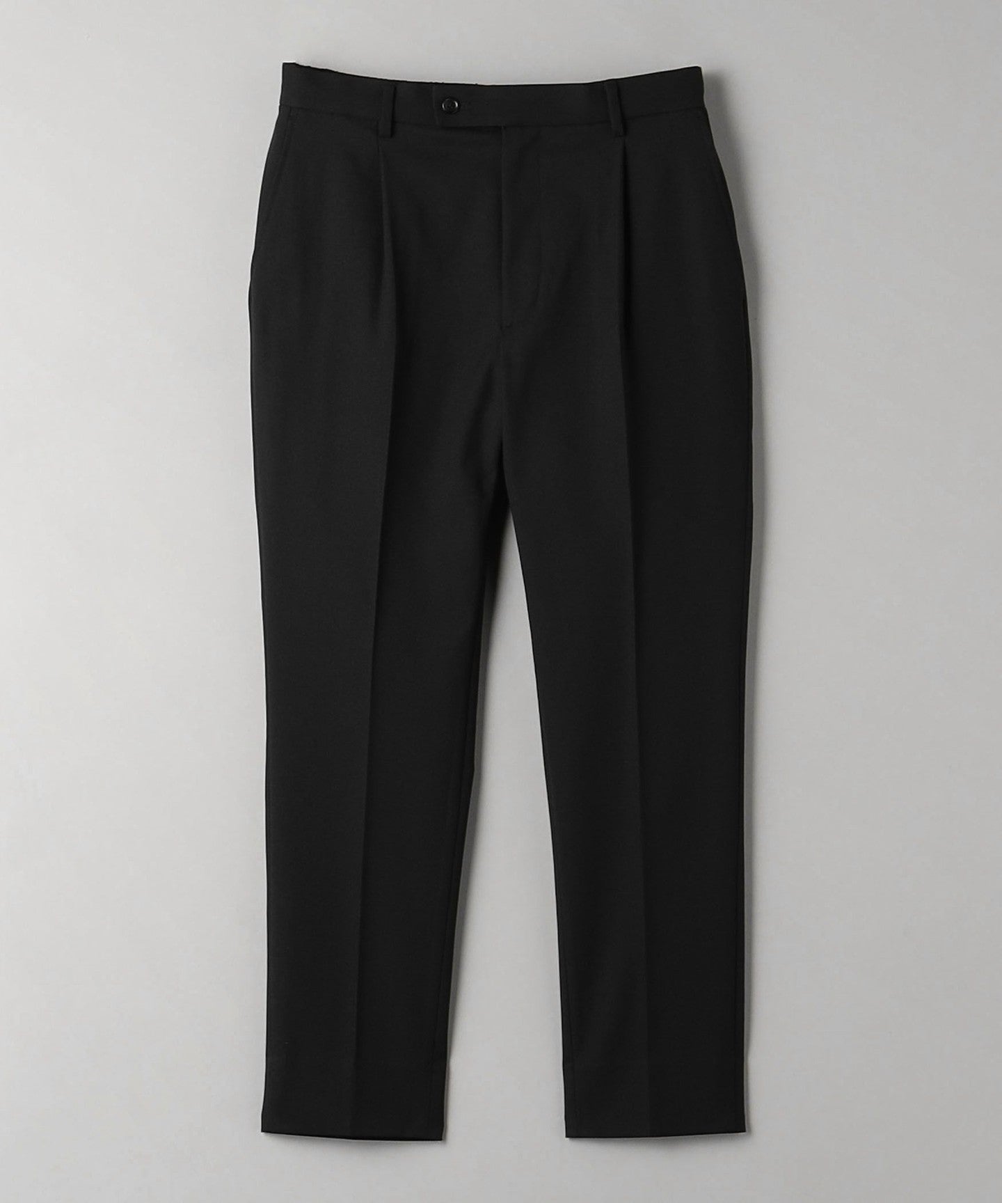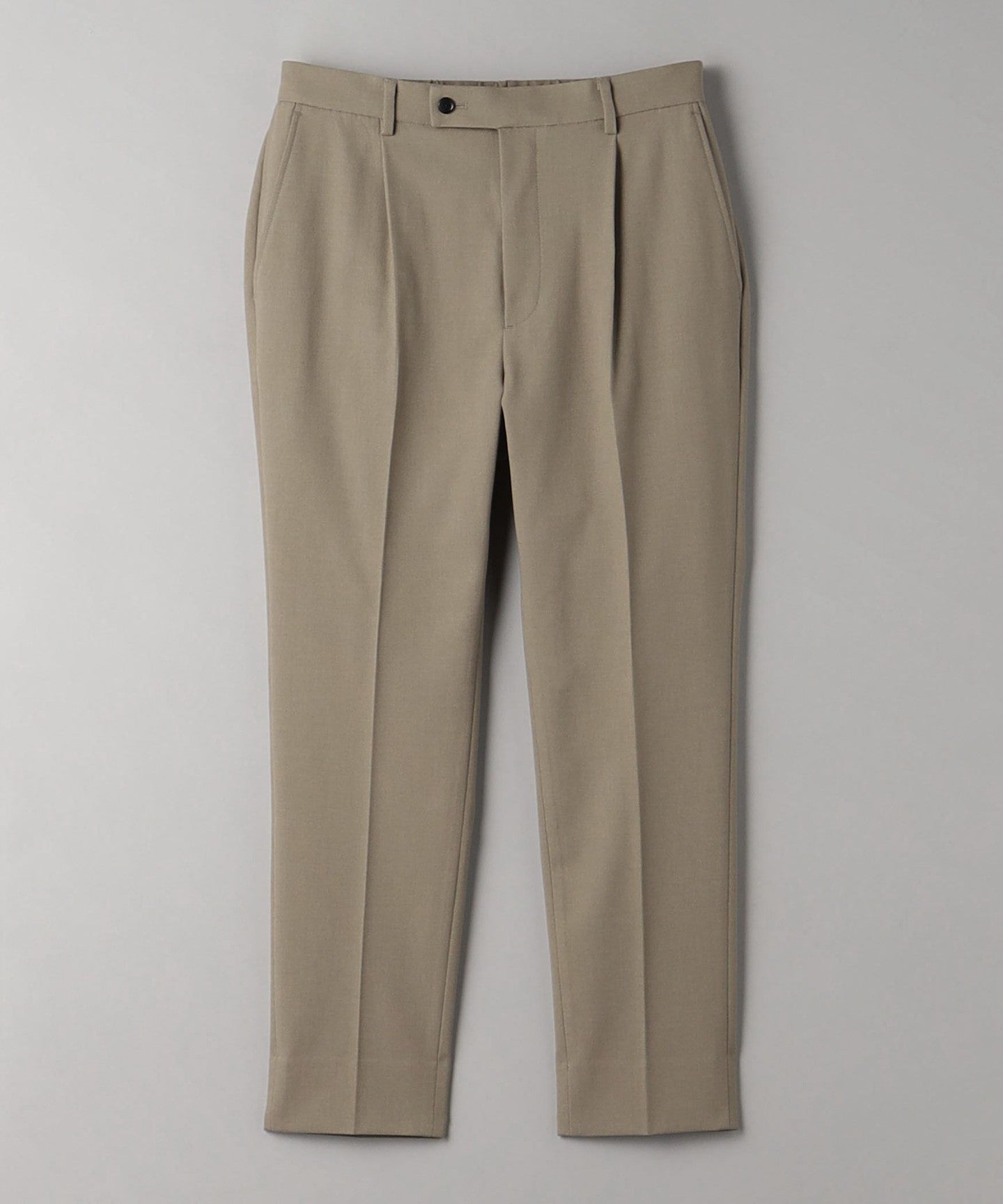 The pants have a single pleat that provides a moderate amount of room around the hips, while the slim tapered silhouette narrows towards the hem.