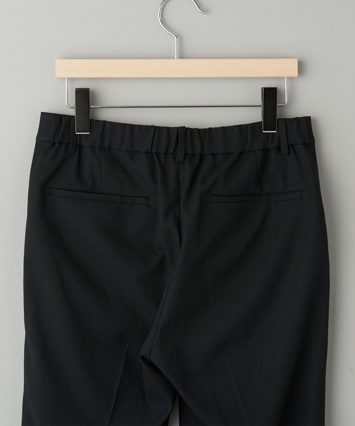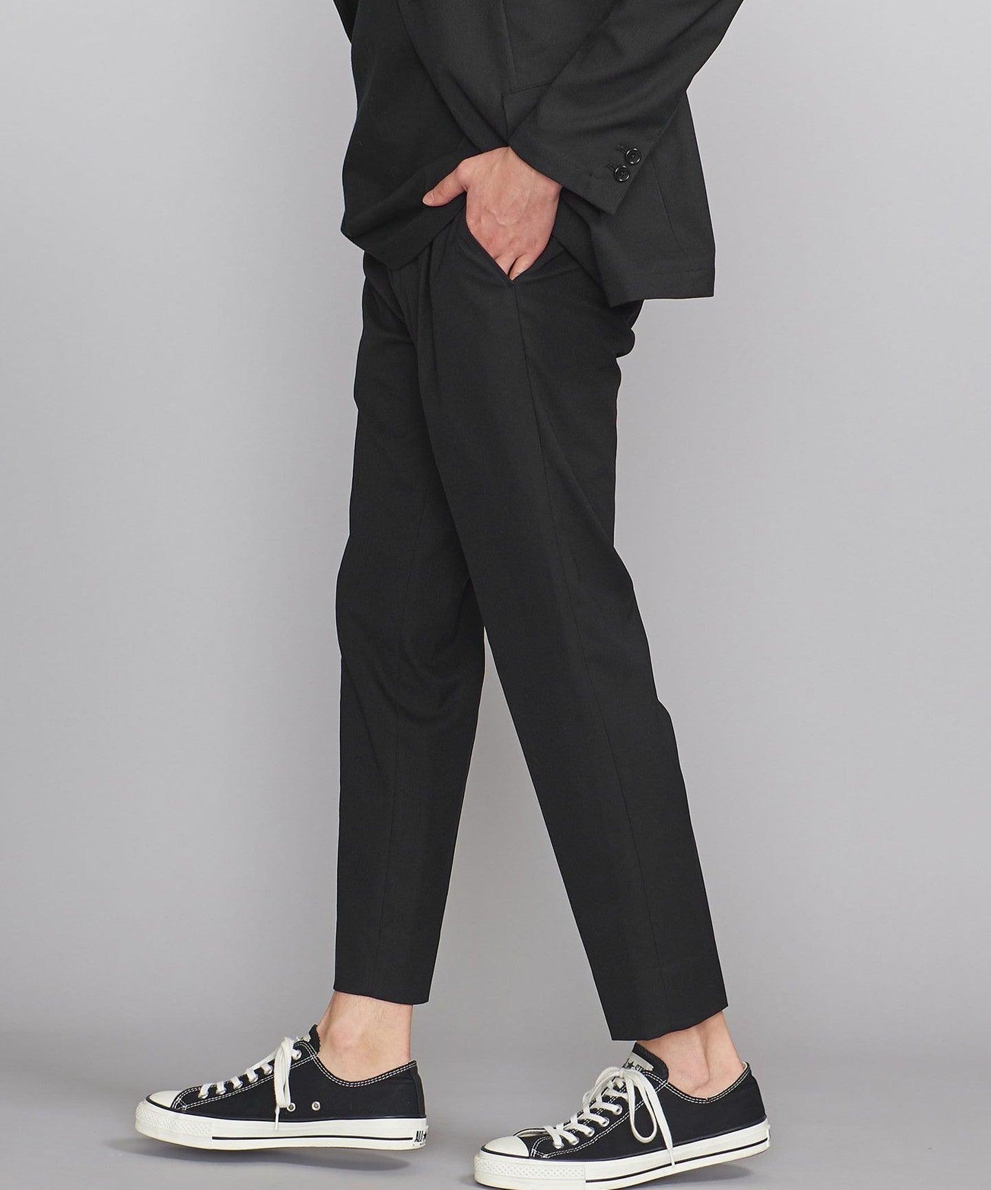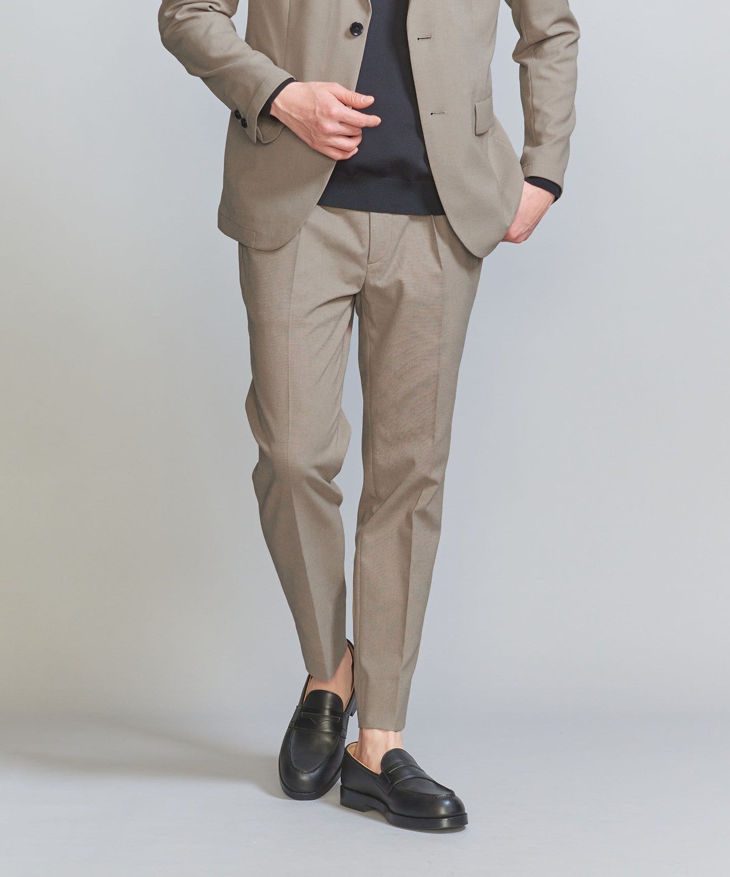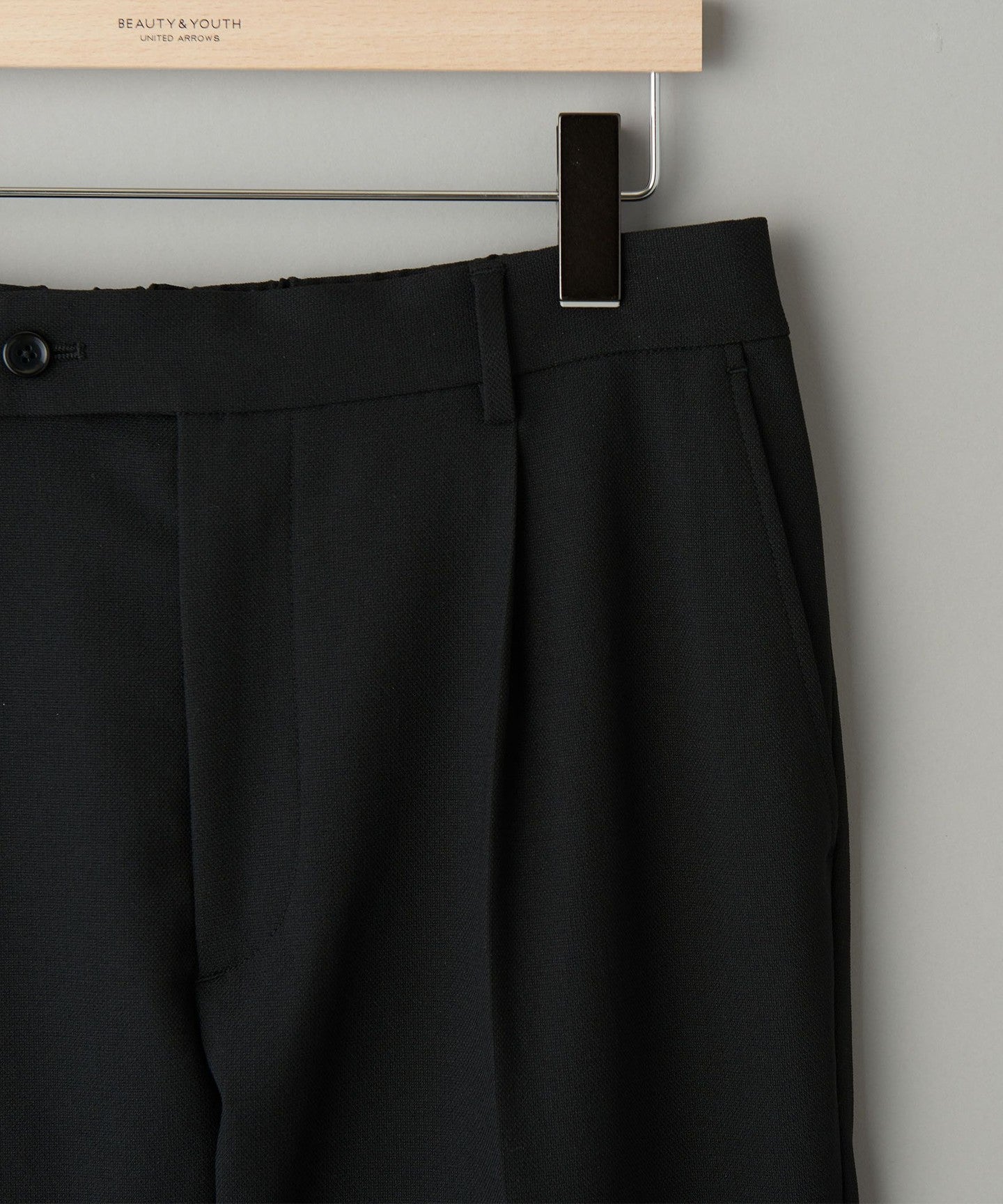 The pants have a single pleat that provides a moderate amount of room around the hips, while the slim tapered silhouette narrows towards the hem.