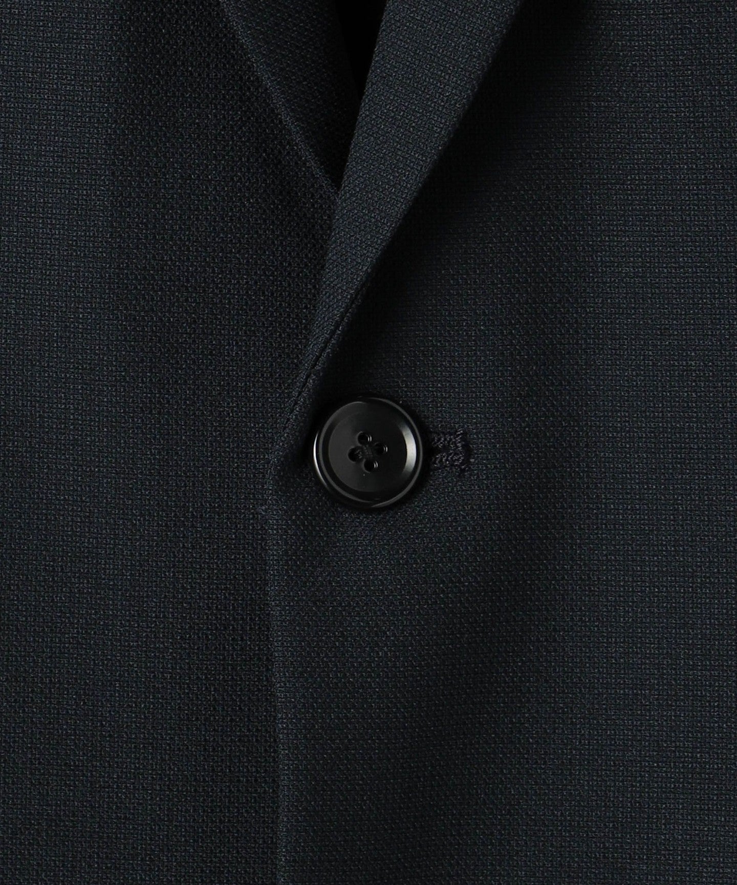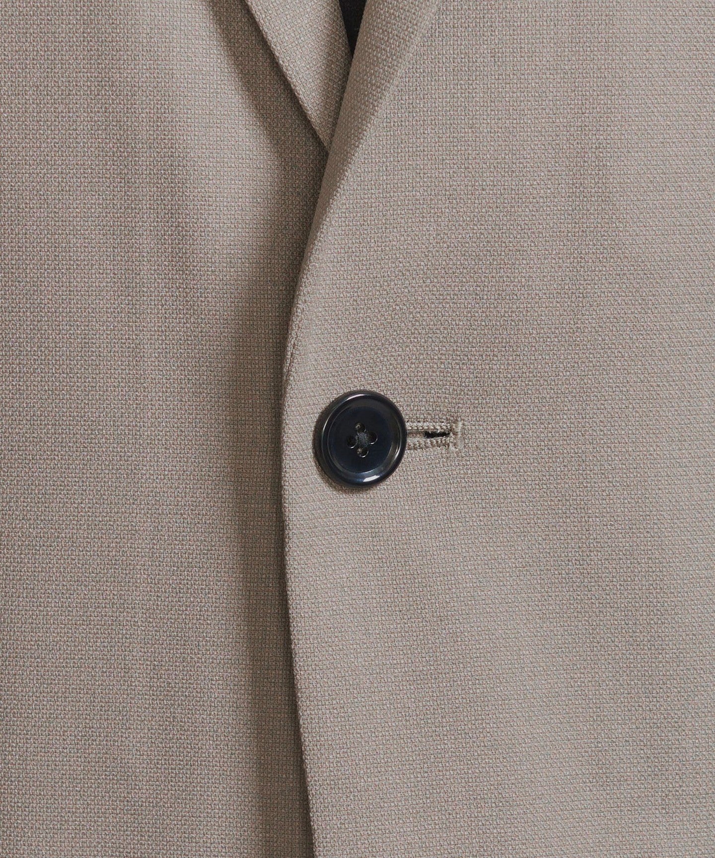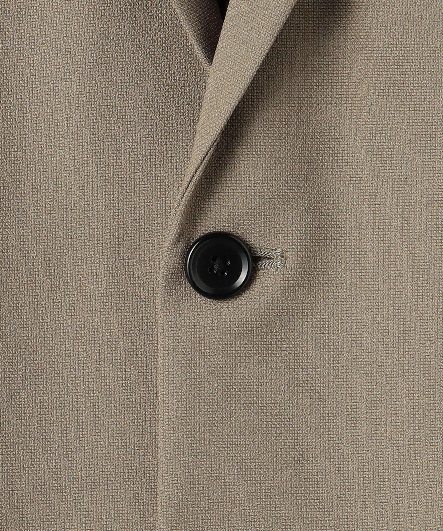 Details include a single 2-button closure, 2-button cuffs with full-cut cuffs, center vent, notch lapel, double flap pockets, and left and right inner pockets.