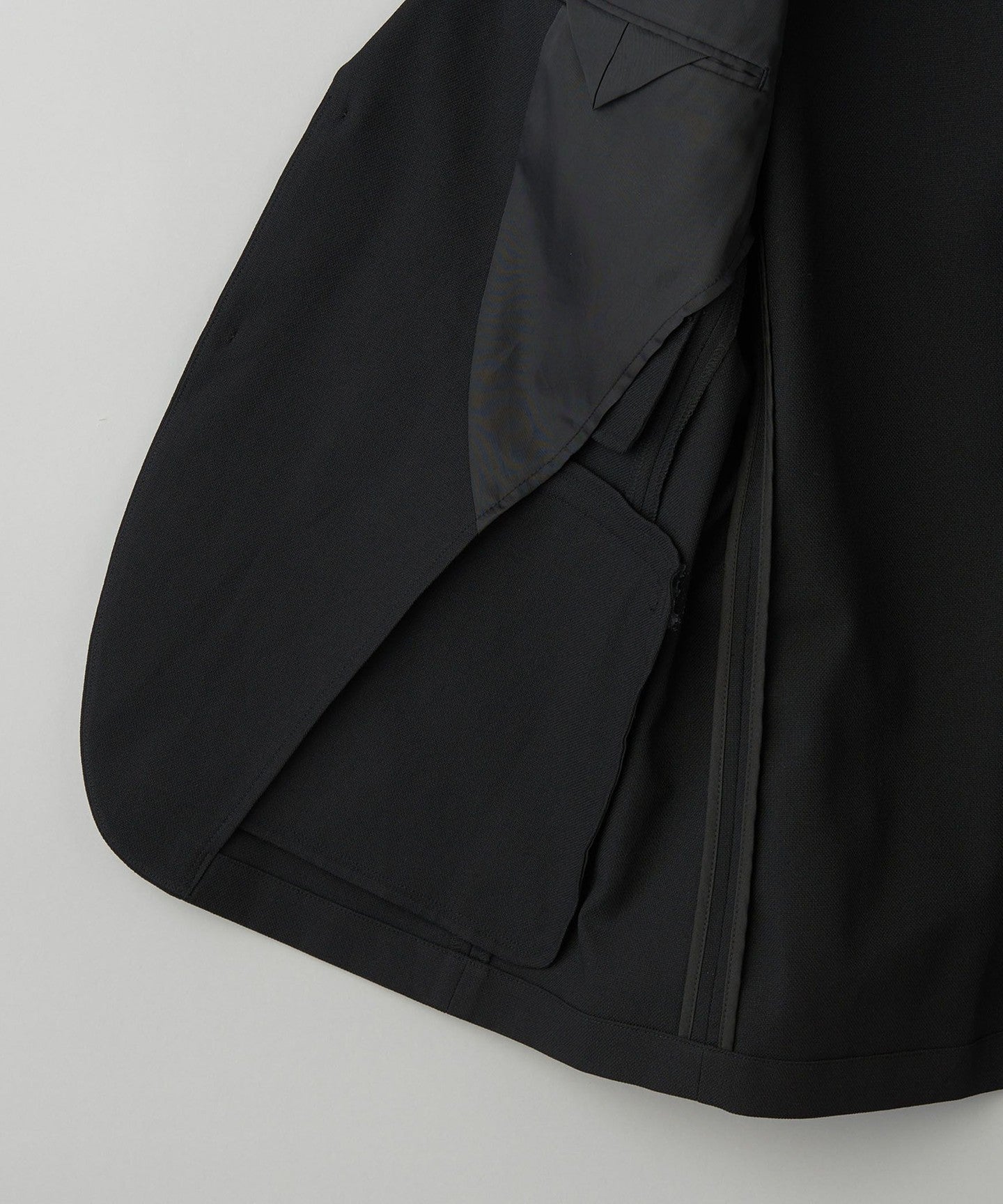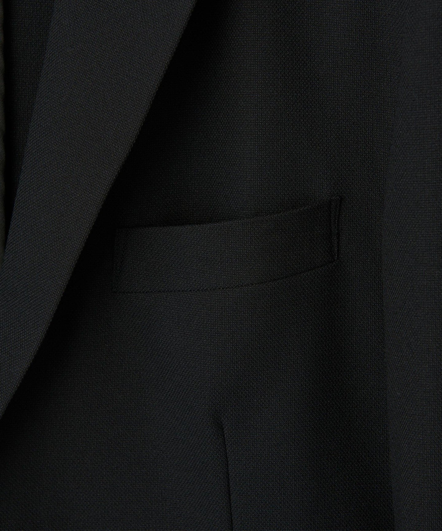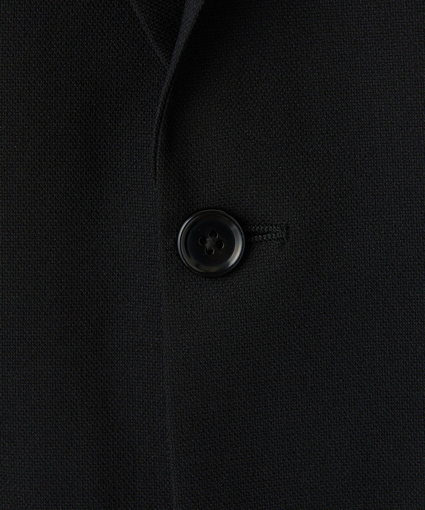 Details include a single 2-button closure, 2-button cuffs with full-cut cuffs, center vent, notch lapel, double flap pockets, and left and right inner pockets.