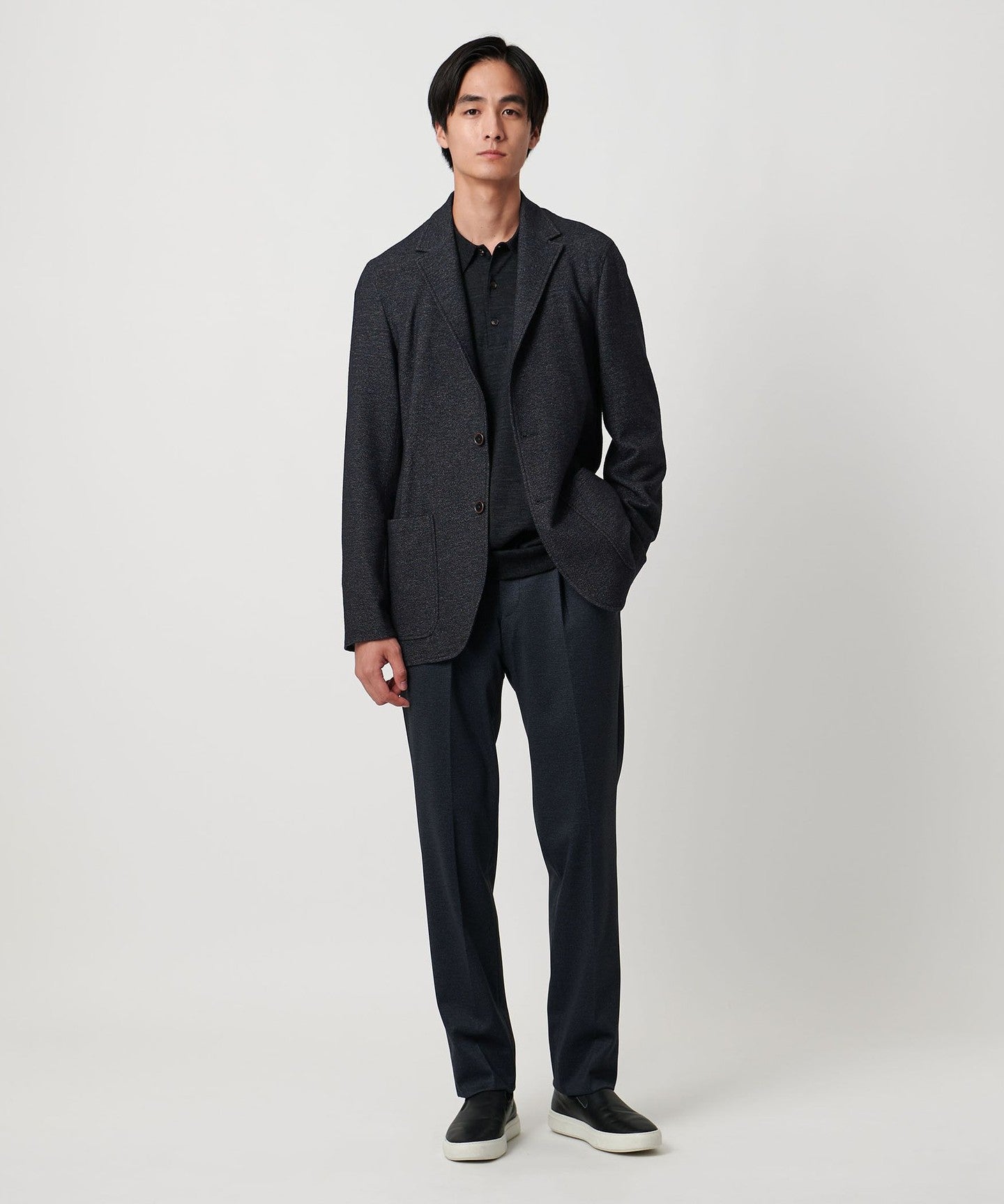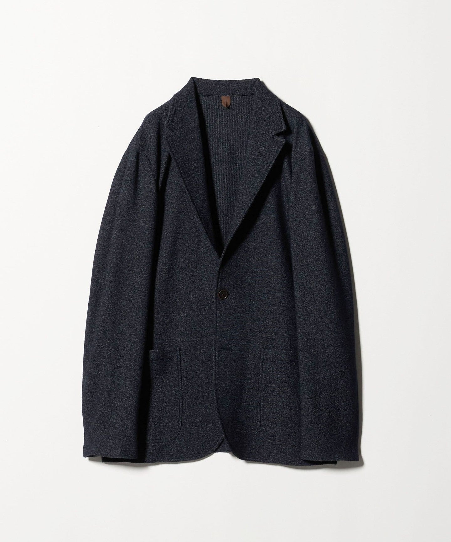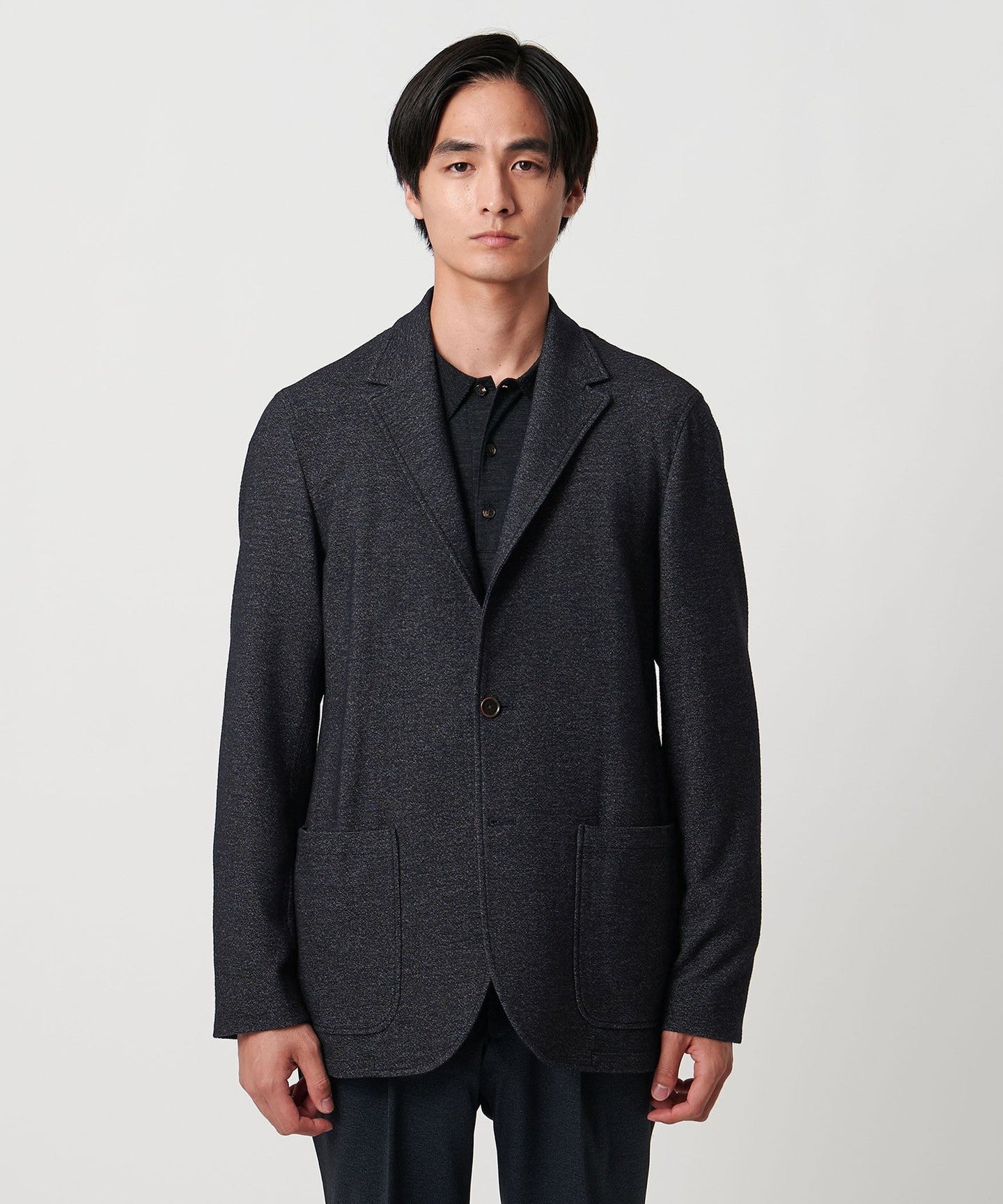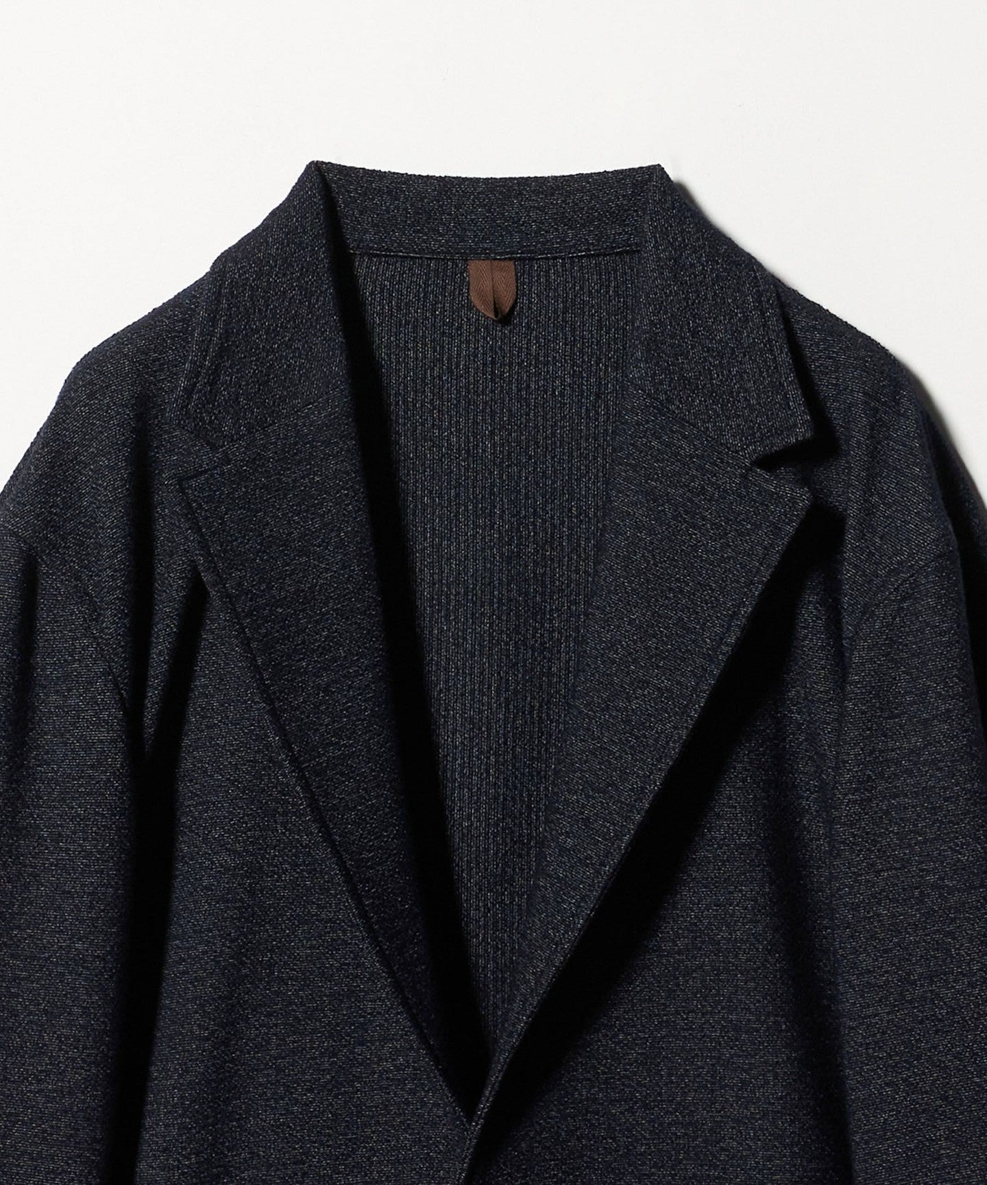 The lapel design gives a neat impression, but the shape is positioned just far enough away from the body to create a relaxed, adult-like mood.