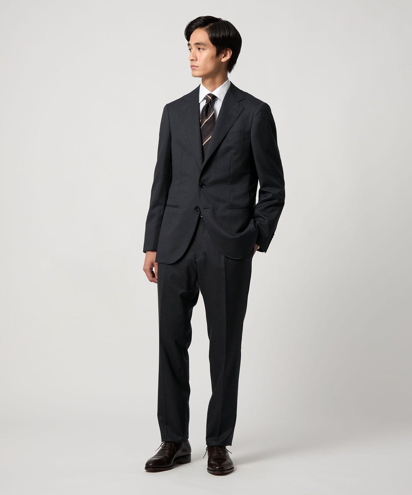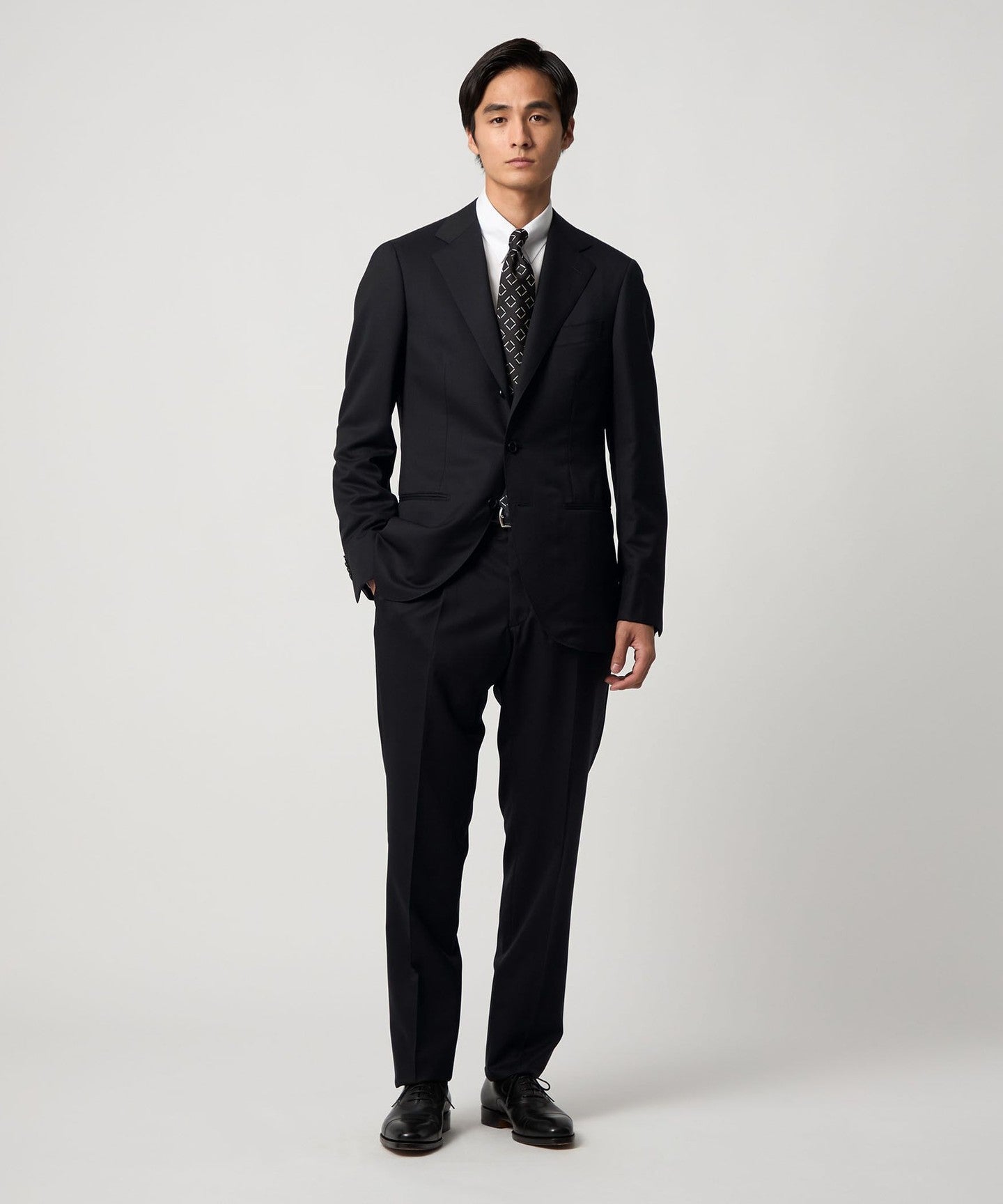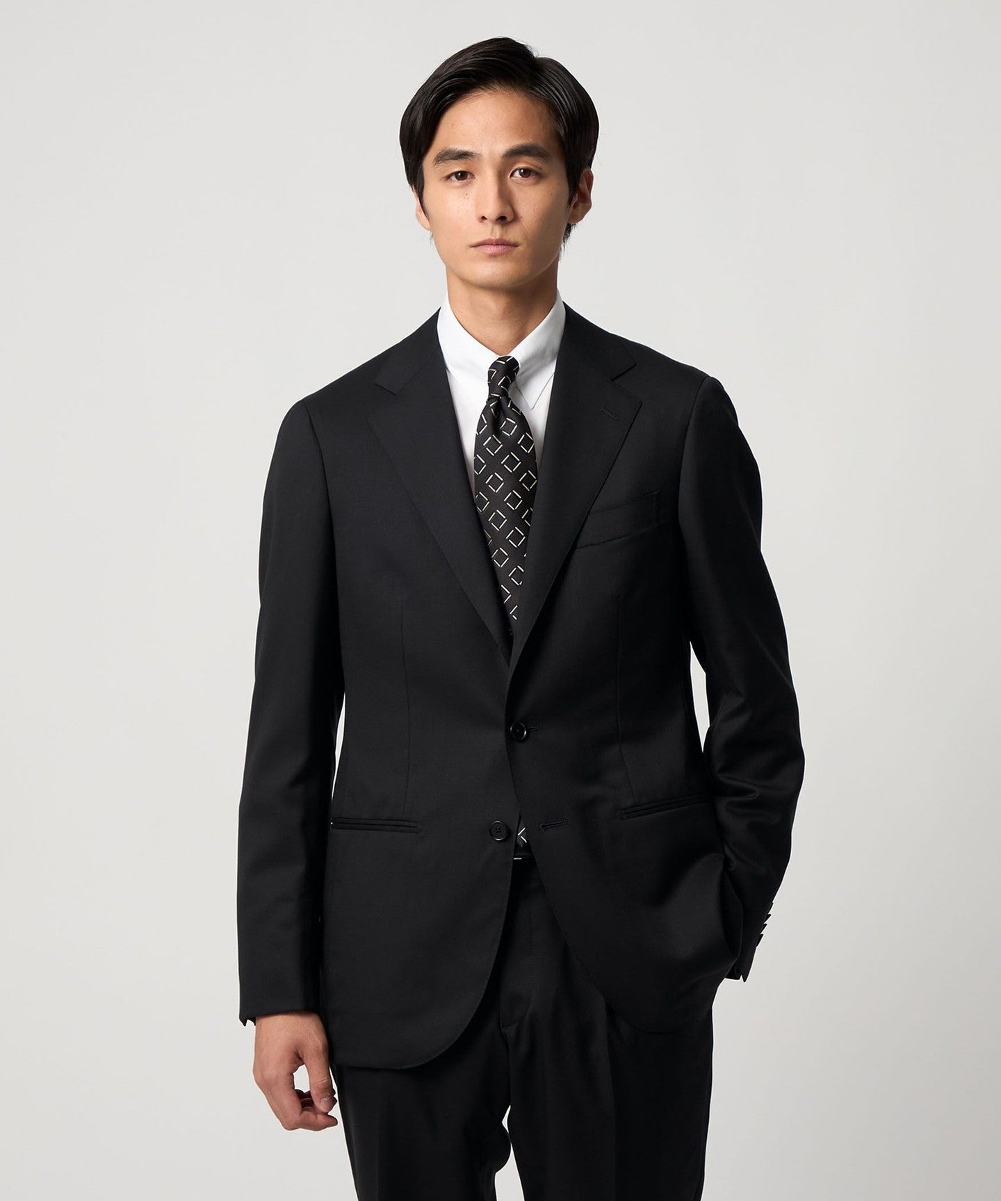 A classic suit that can be worn in a wide range of situations, from business to formal occasions.