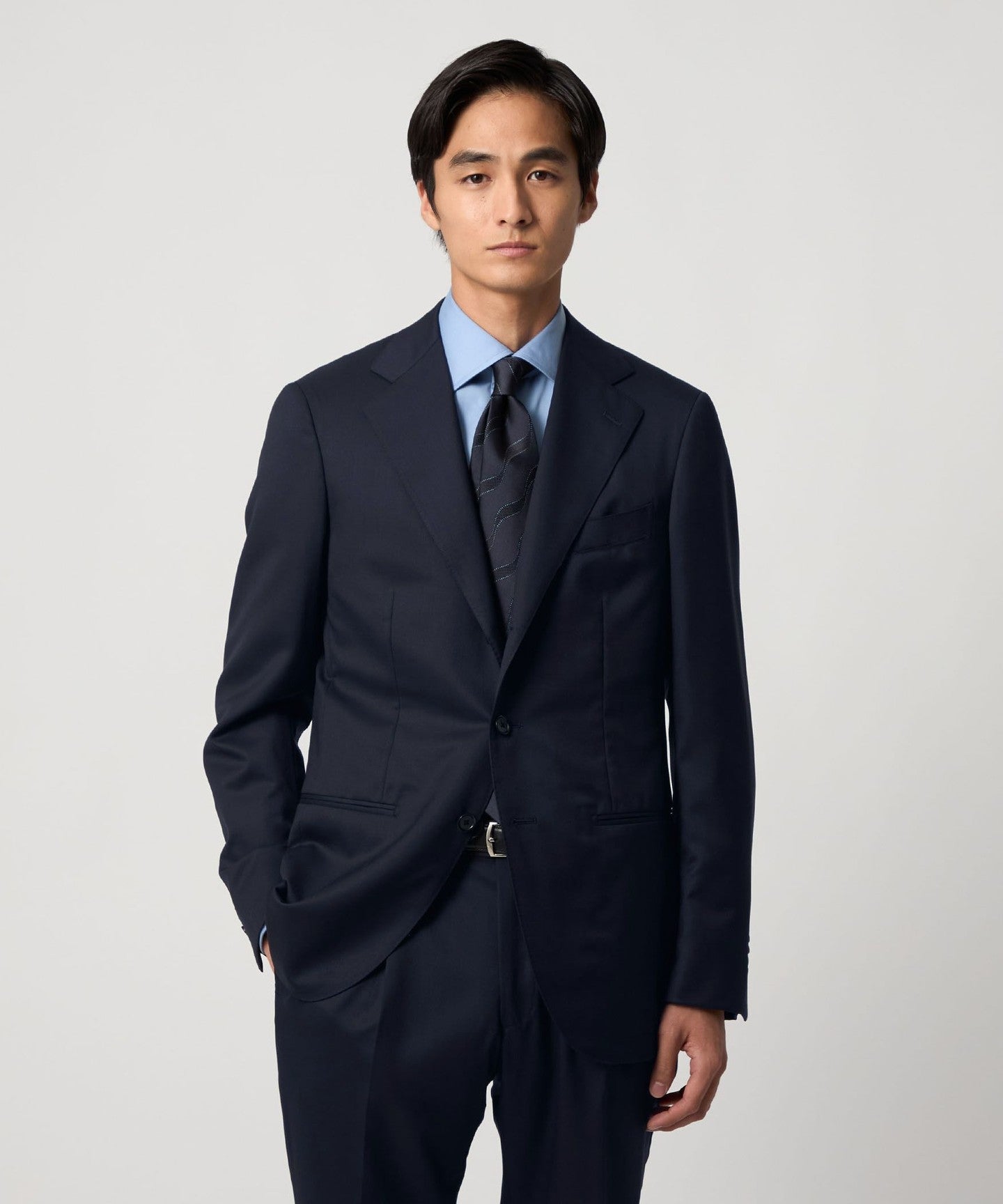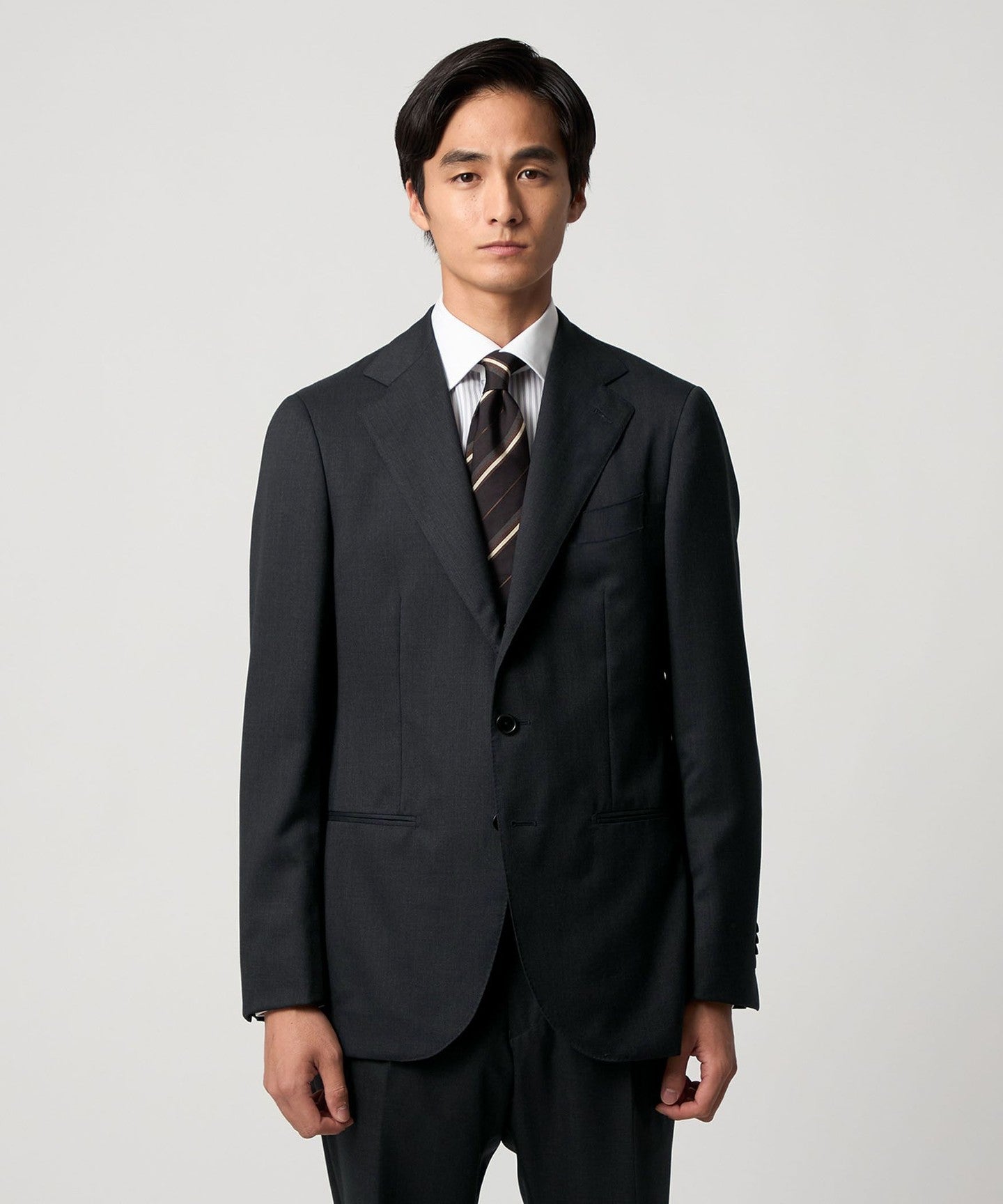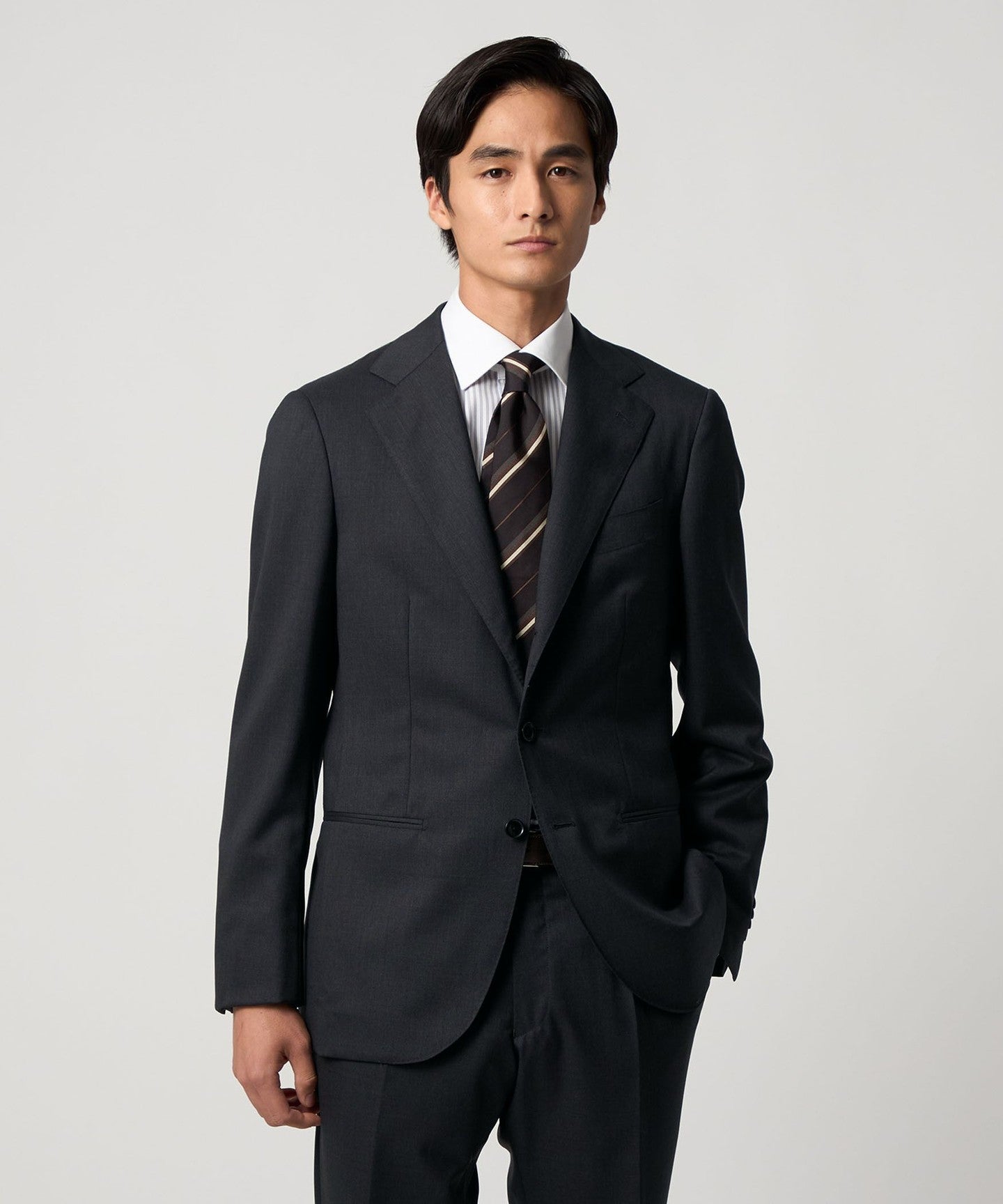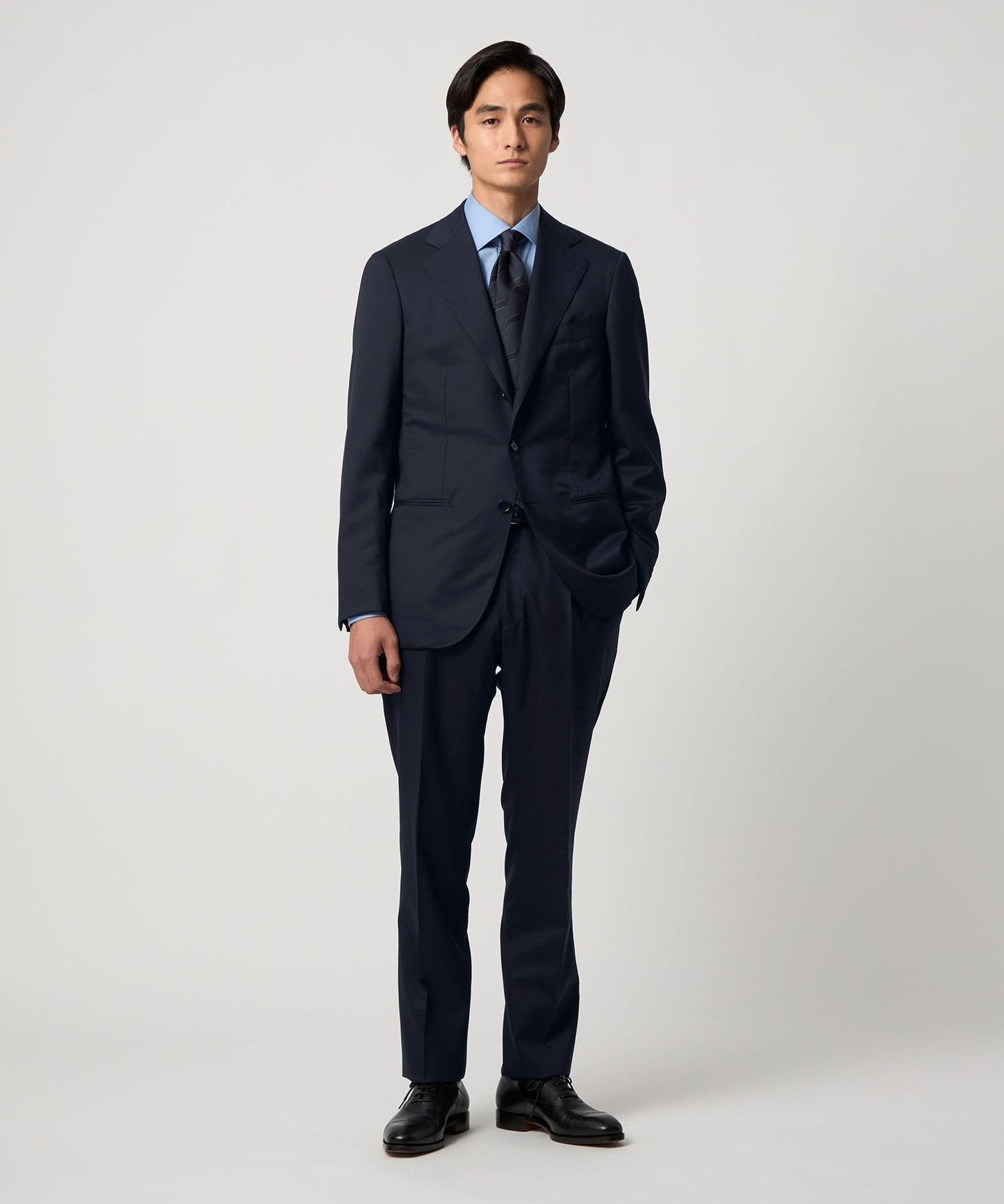 A classic suit that can be worn in a wide range of situations, from business to formal occasions.