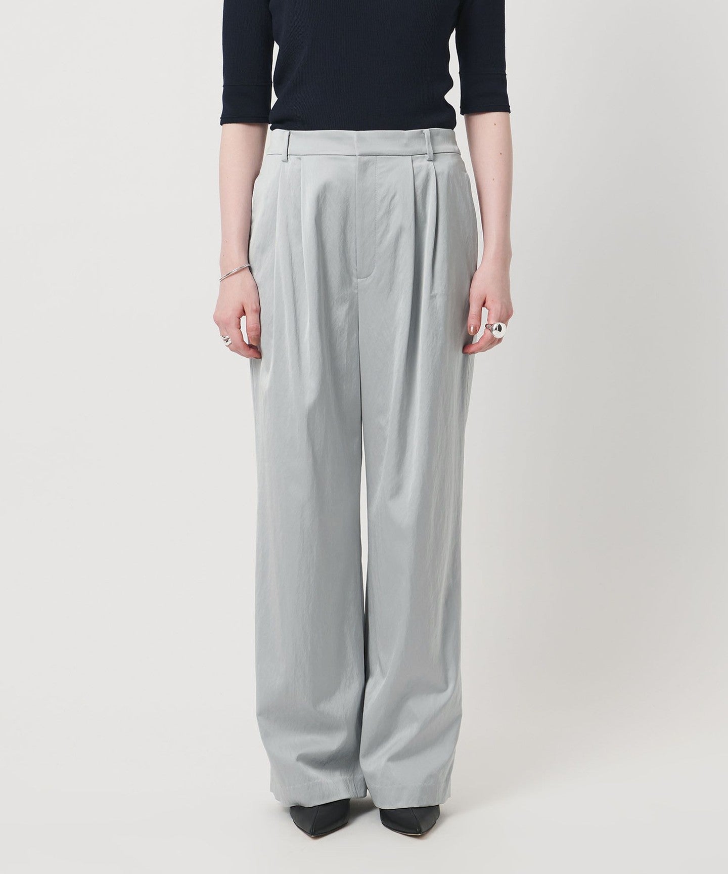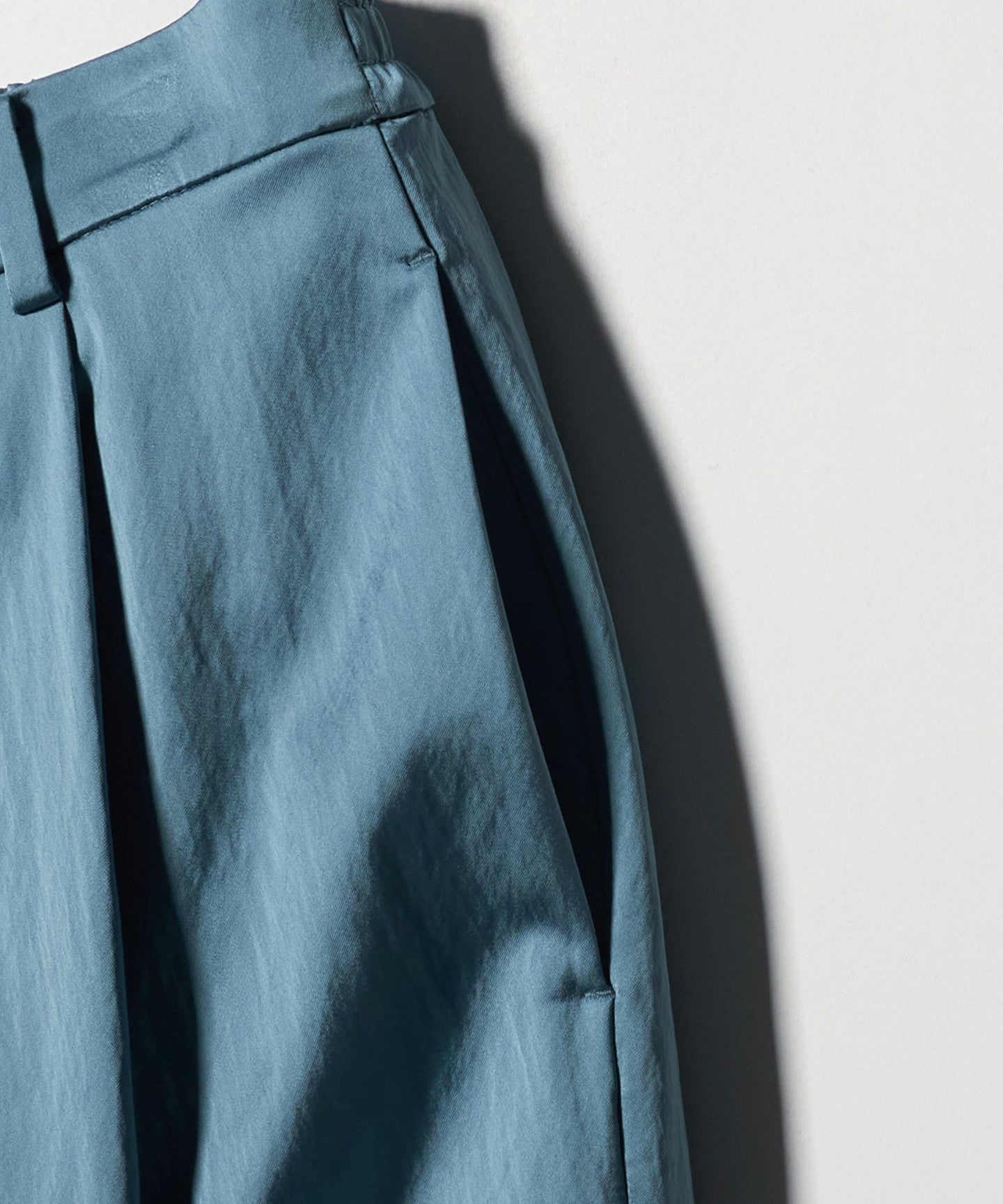 サテンの艷やかさを活かしたラフなシボ感が、着こなしにモードさをプラス。