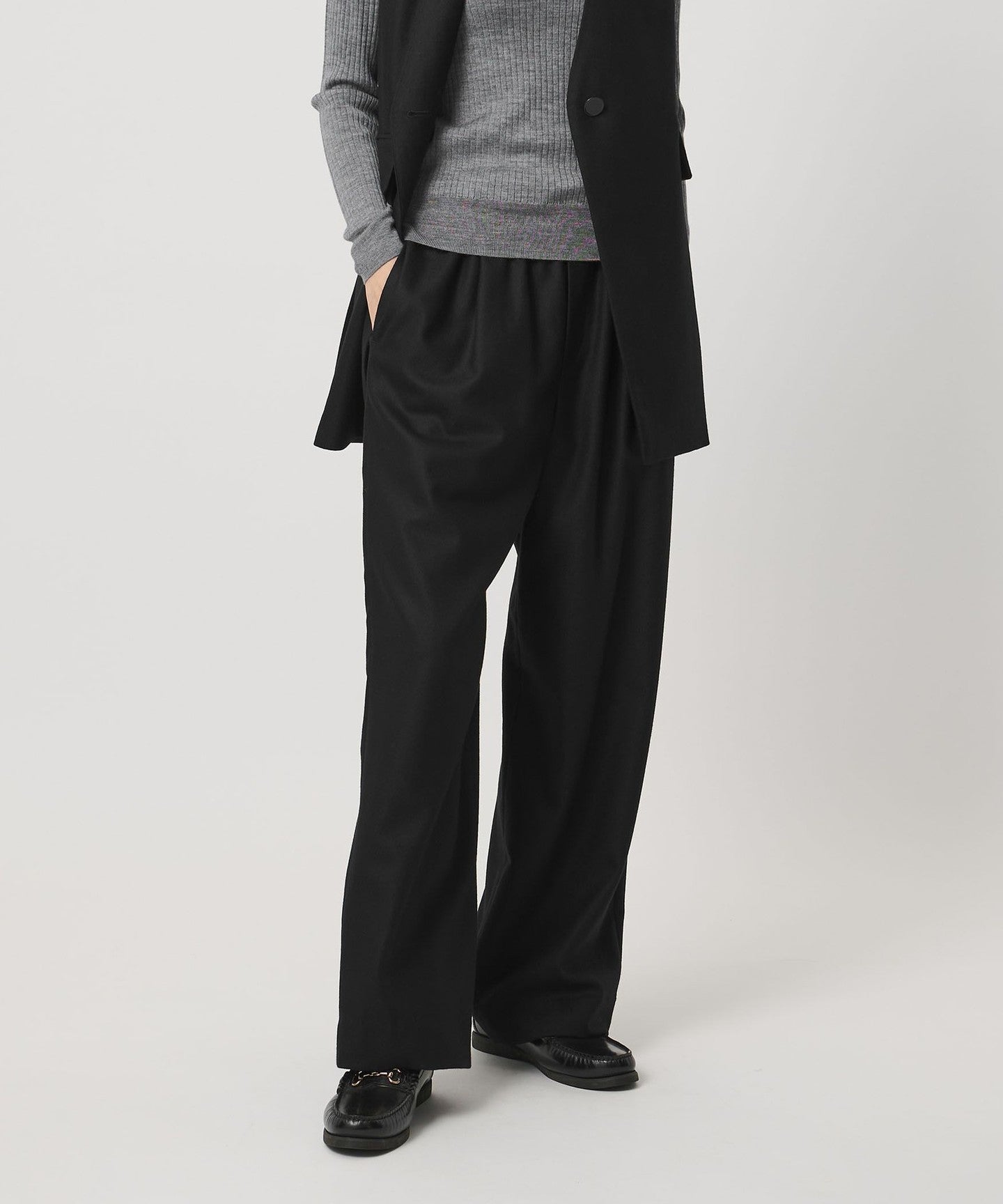 素材の魅力を引き立て、すっきりとしたシルエットに仕上げたシンプルなイージーパンツ。