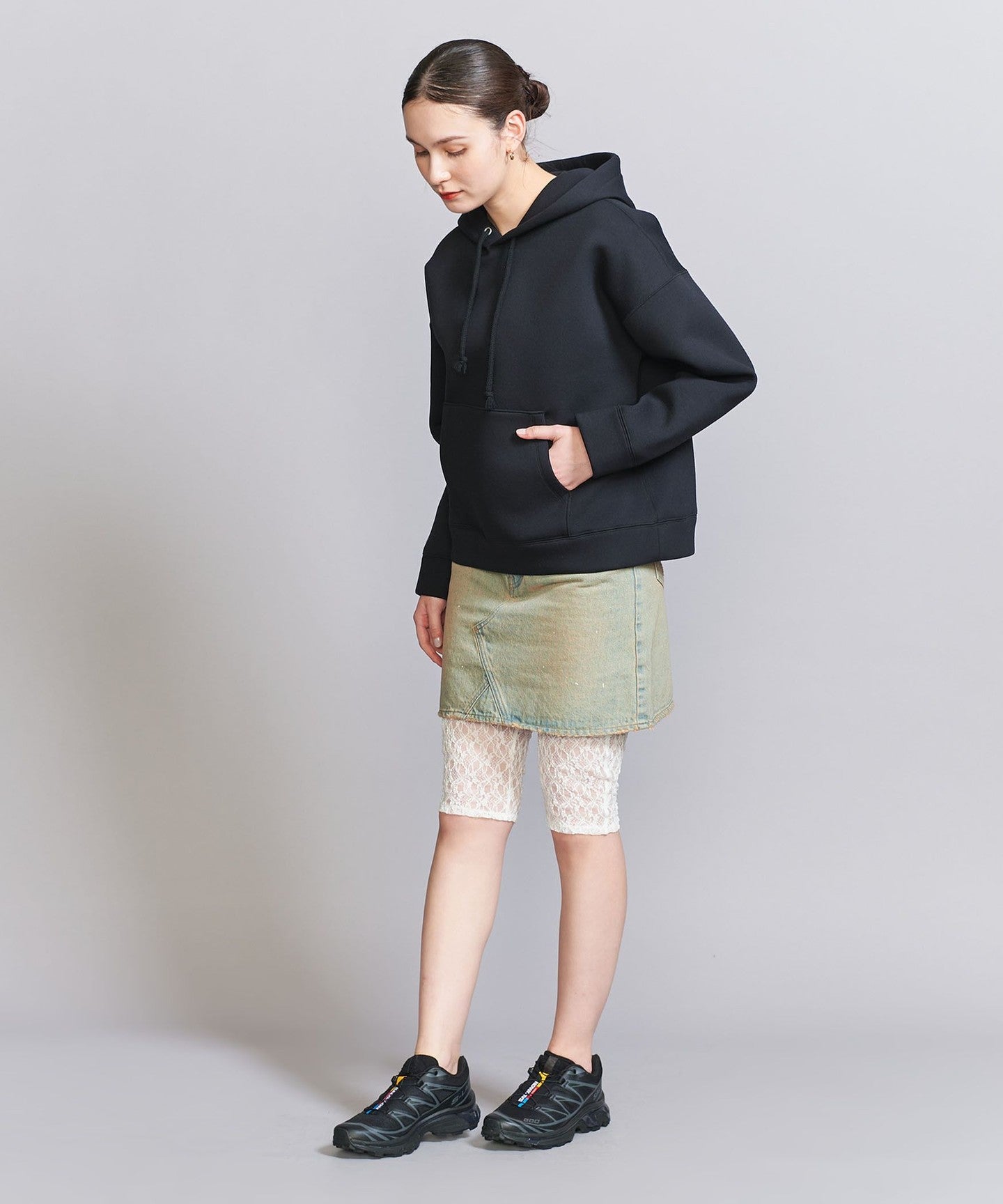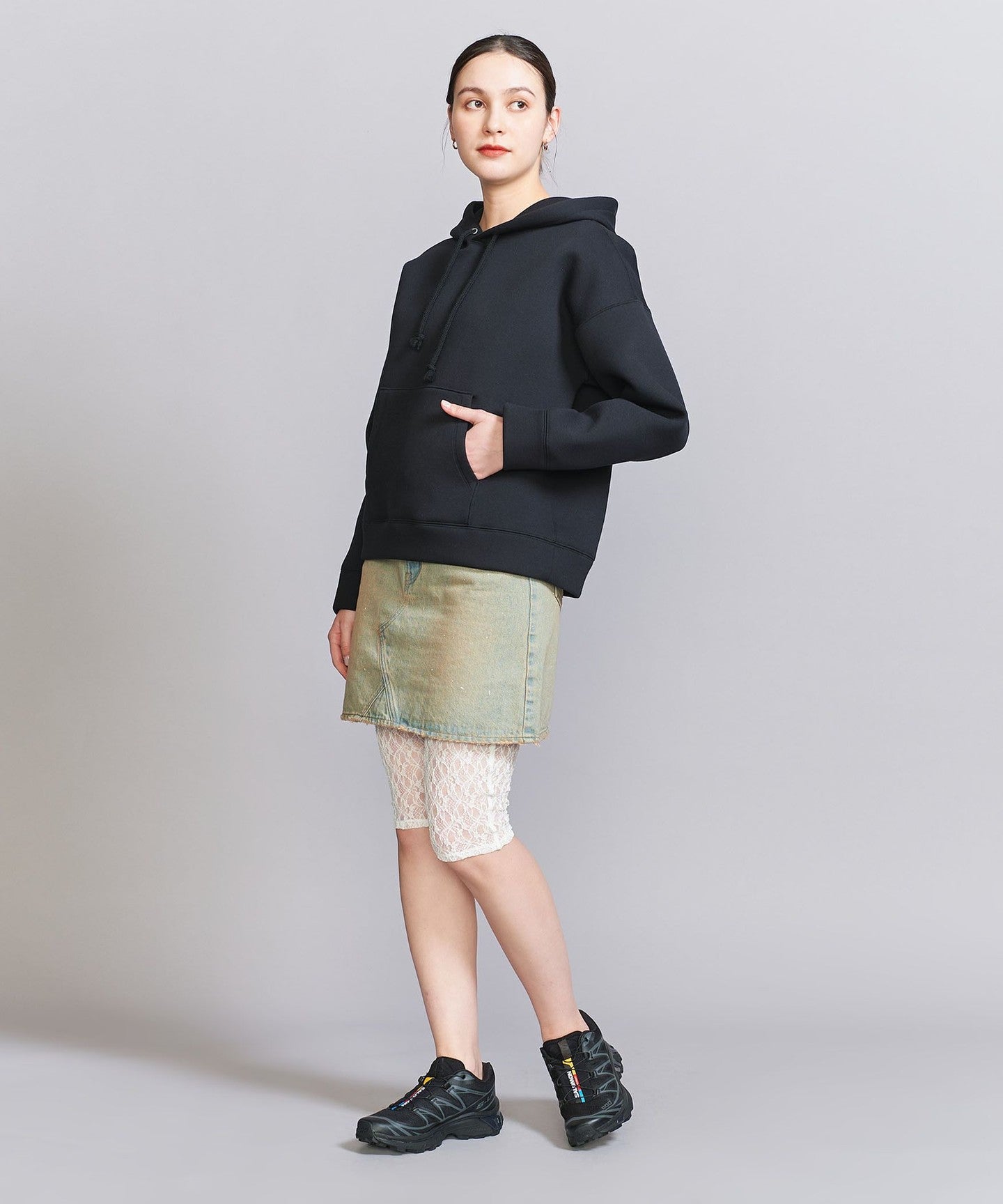 BLACK:本体;ポリエステル94% ポリウレタン6% ウエスト部分;ナイロン87% ポリウレタン13%