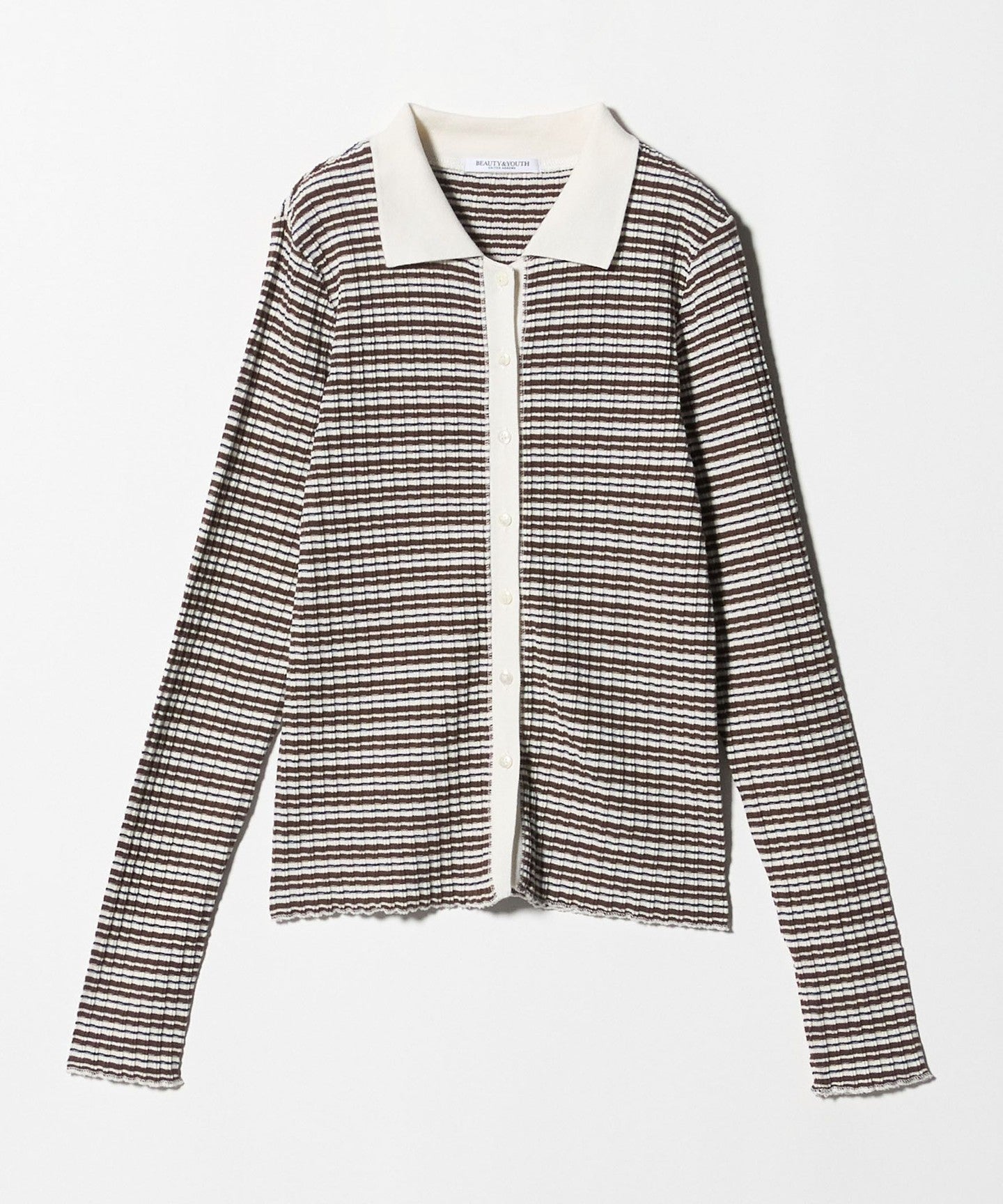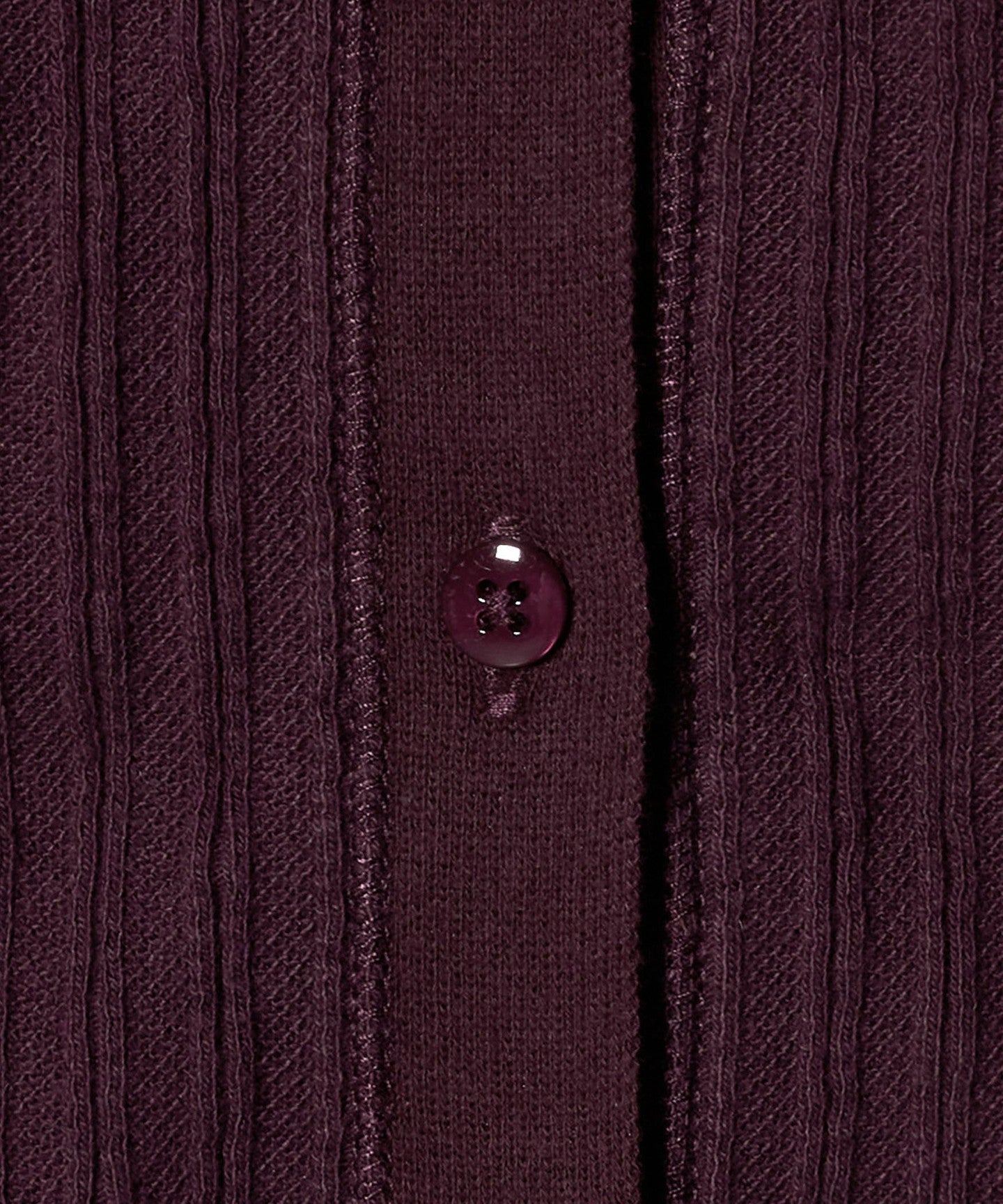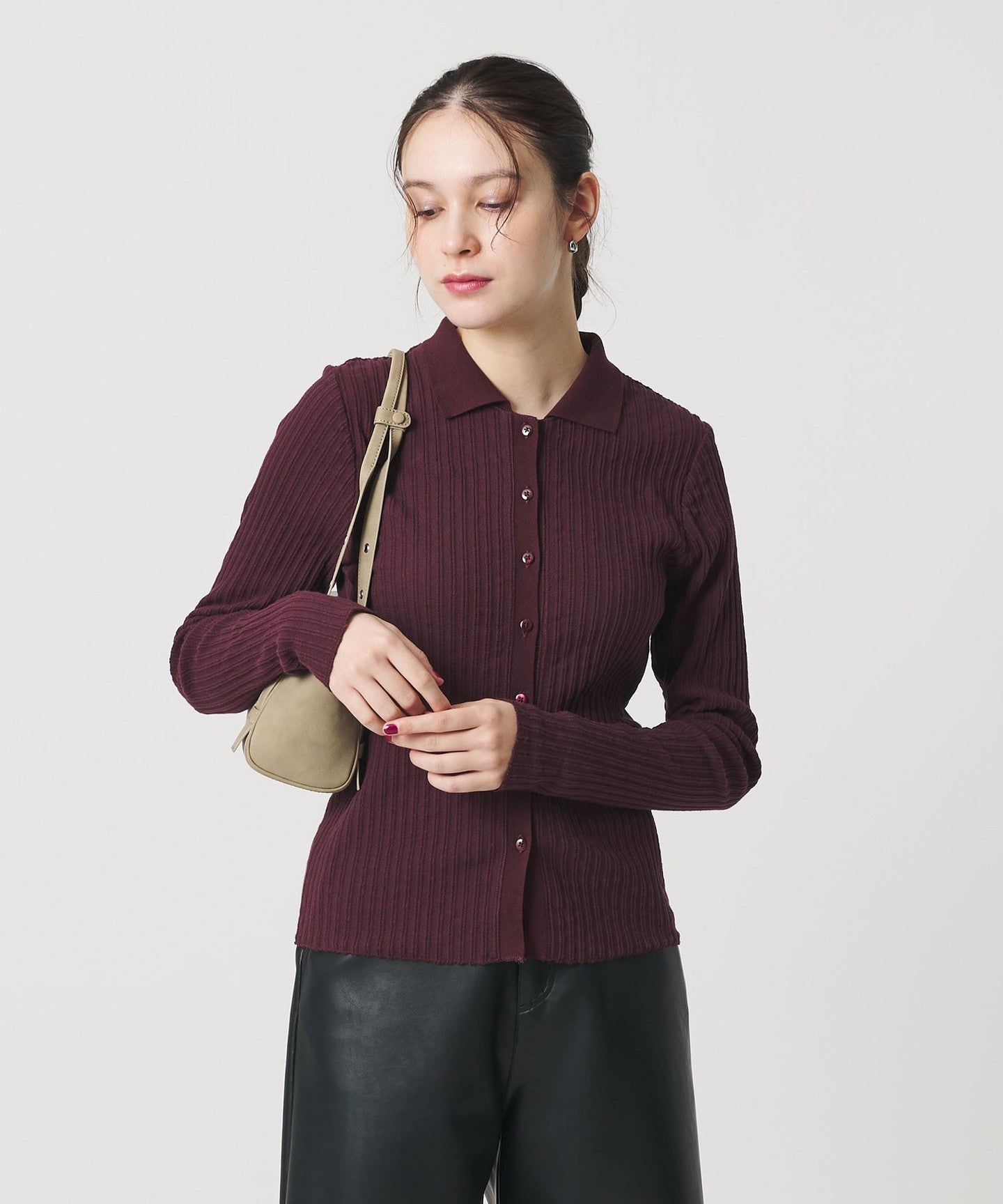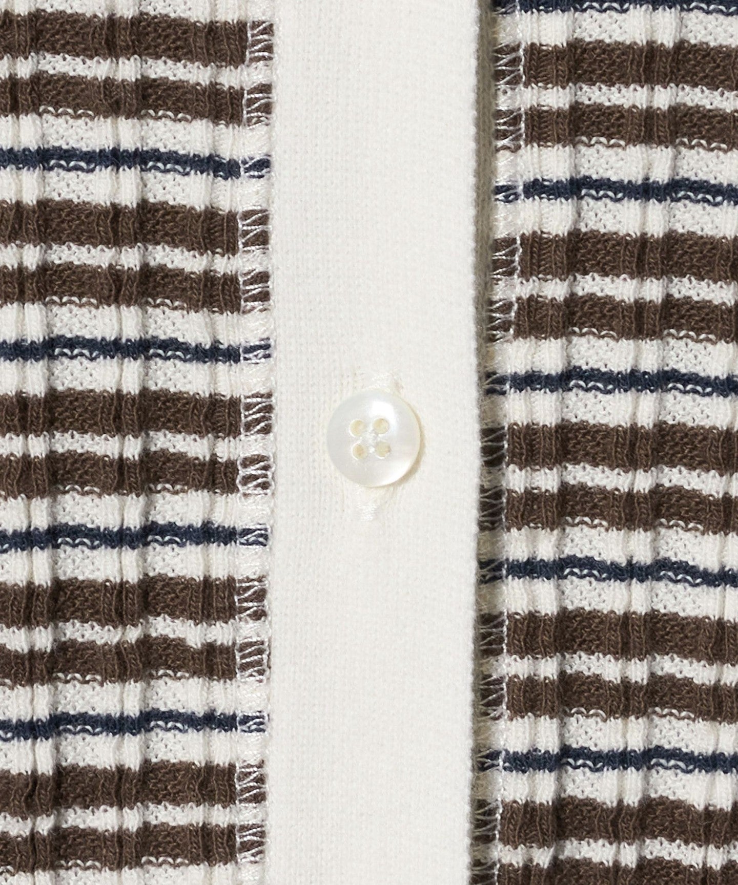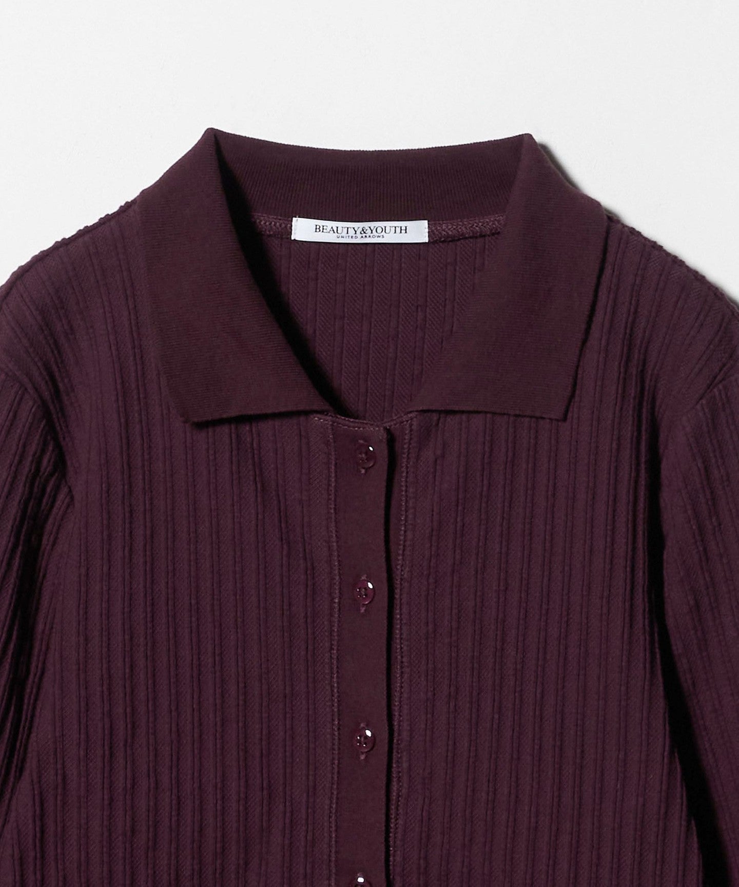 A collared cardigan featuring the uneven texture of deformed ribbing.