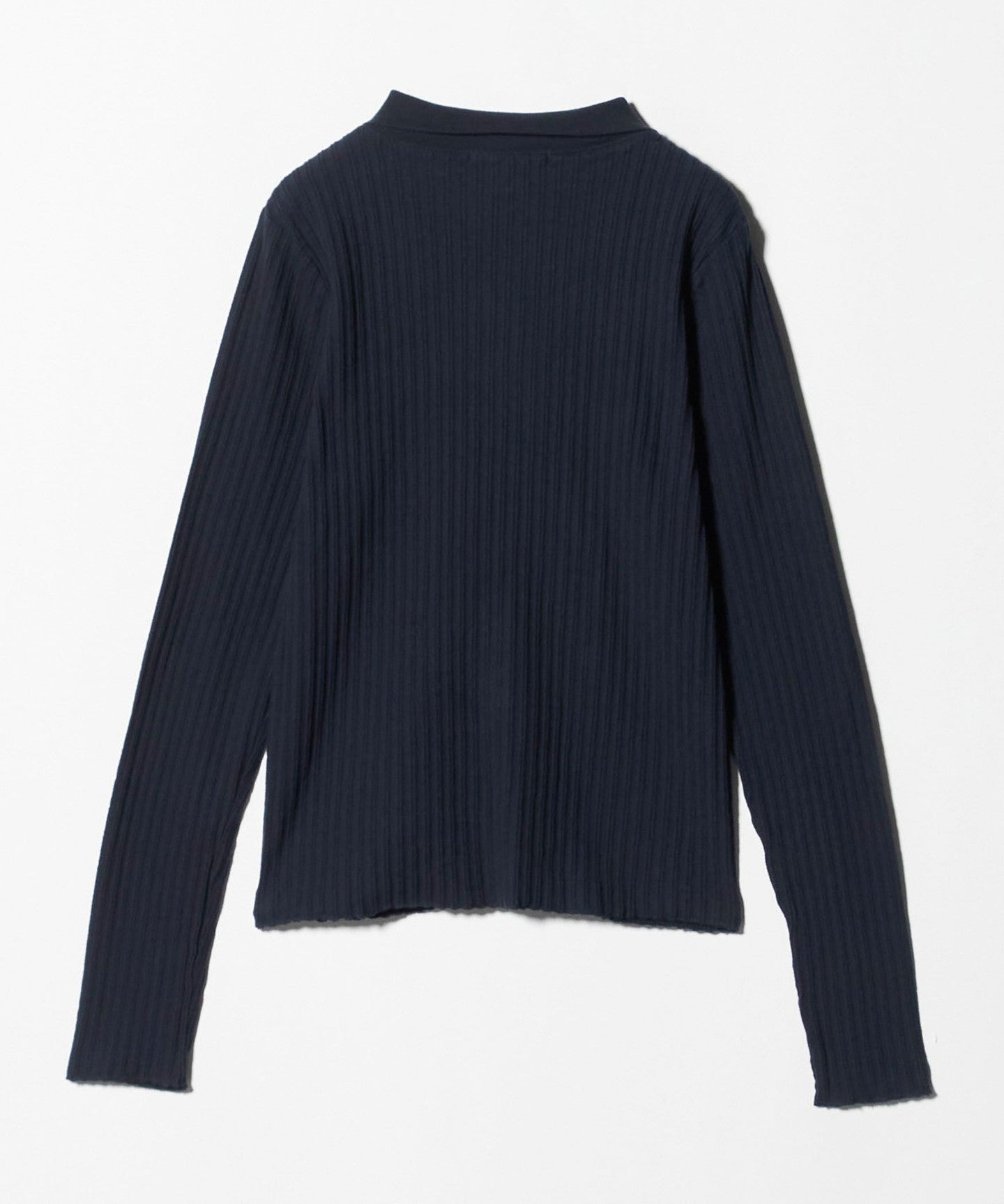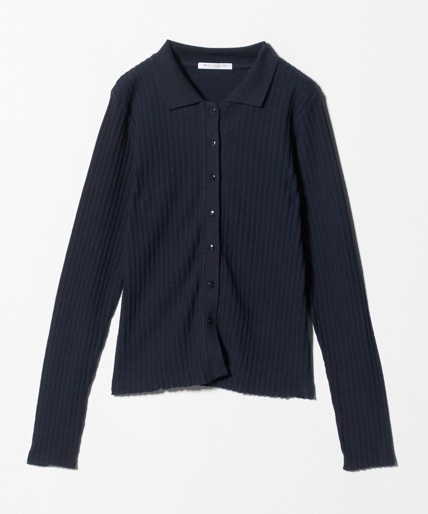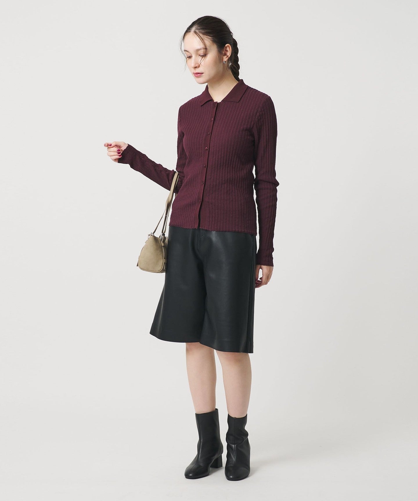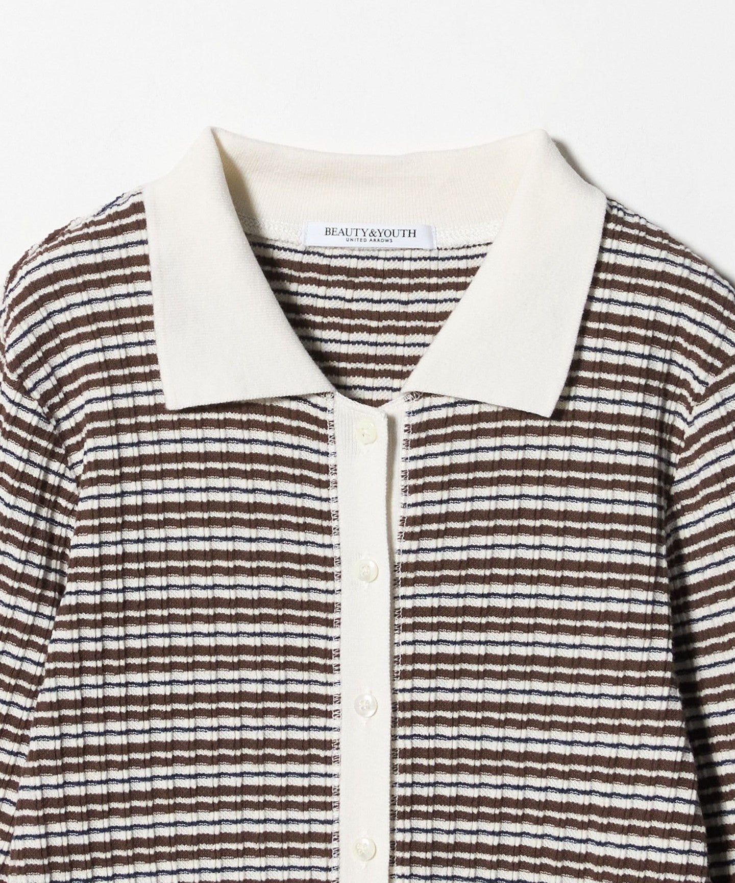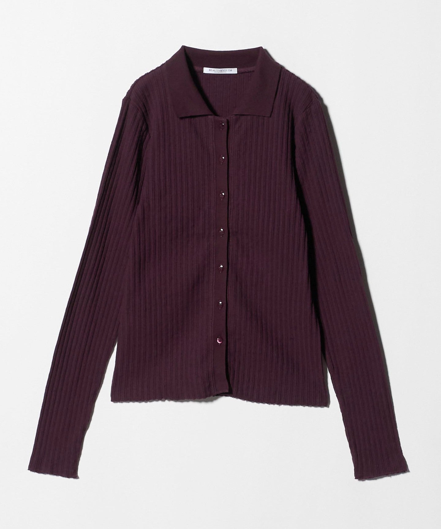 A collared cardigan featuring the uneven texture of deformed ribbing.