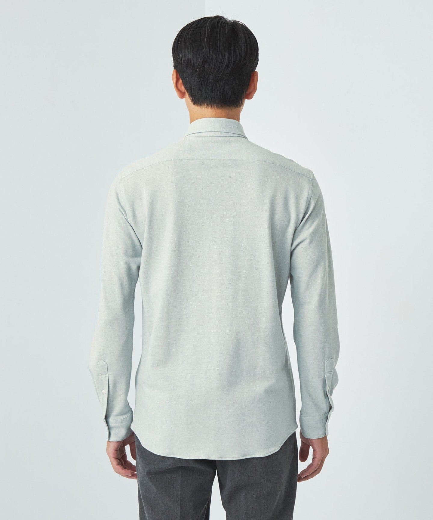 The hem is loosely rounded, giving it a natural look even when worn tucked out.