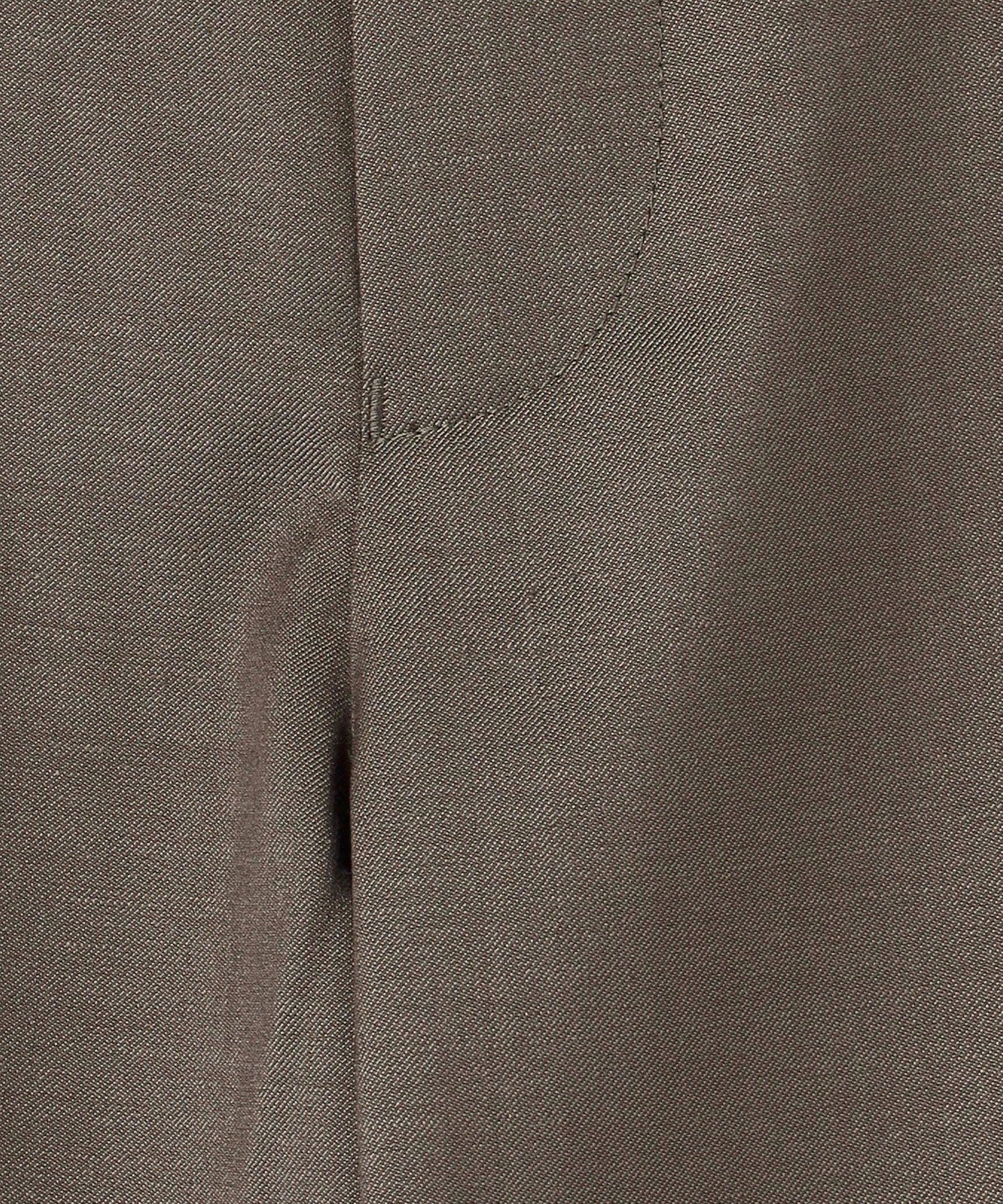 It has no pleats and a clean silhouette that tapers towards the hem.