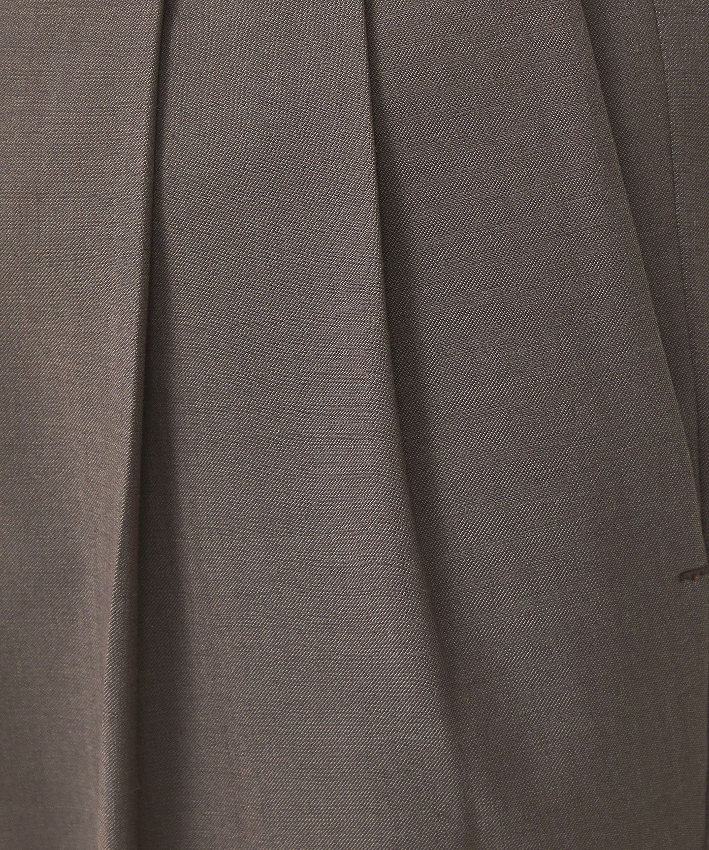 It has two loose pleats and a tapered silhouette that narrows towards the hem.