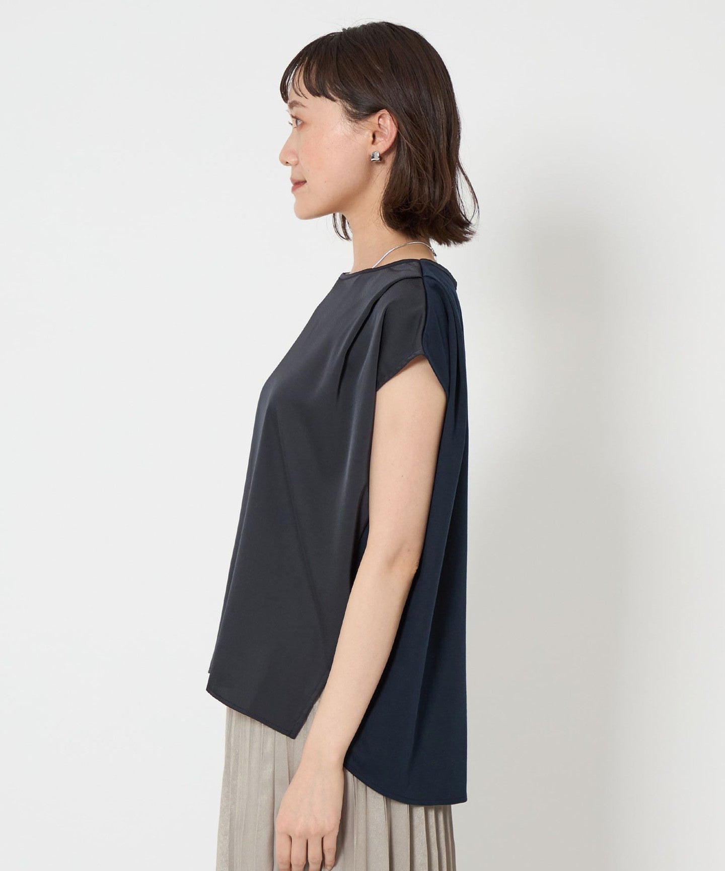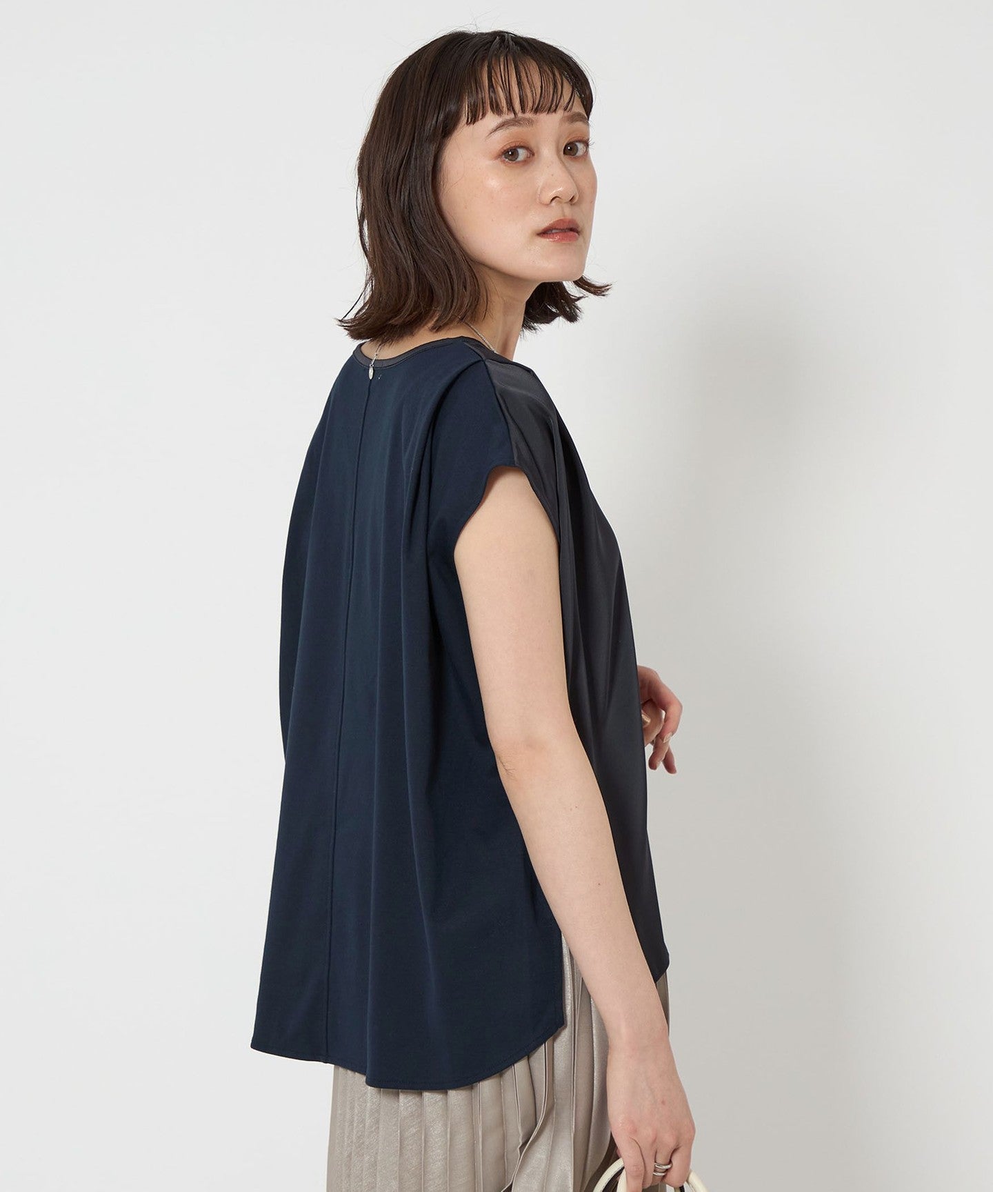 A cut-and-sew top with a docking design that adds an accent to your outfit