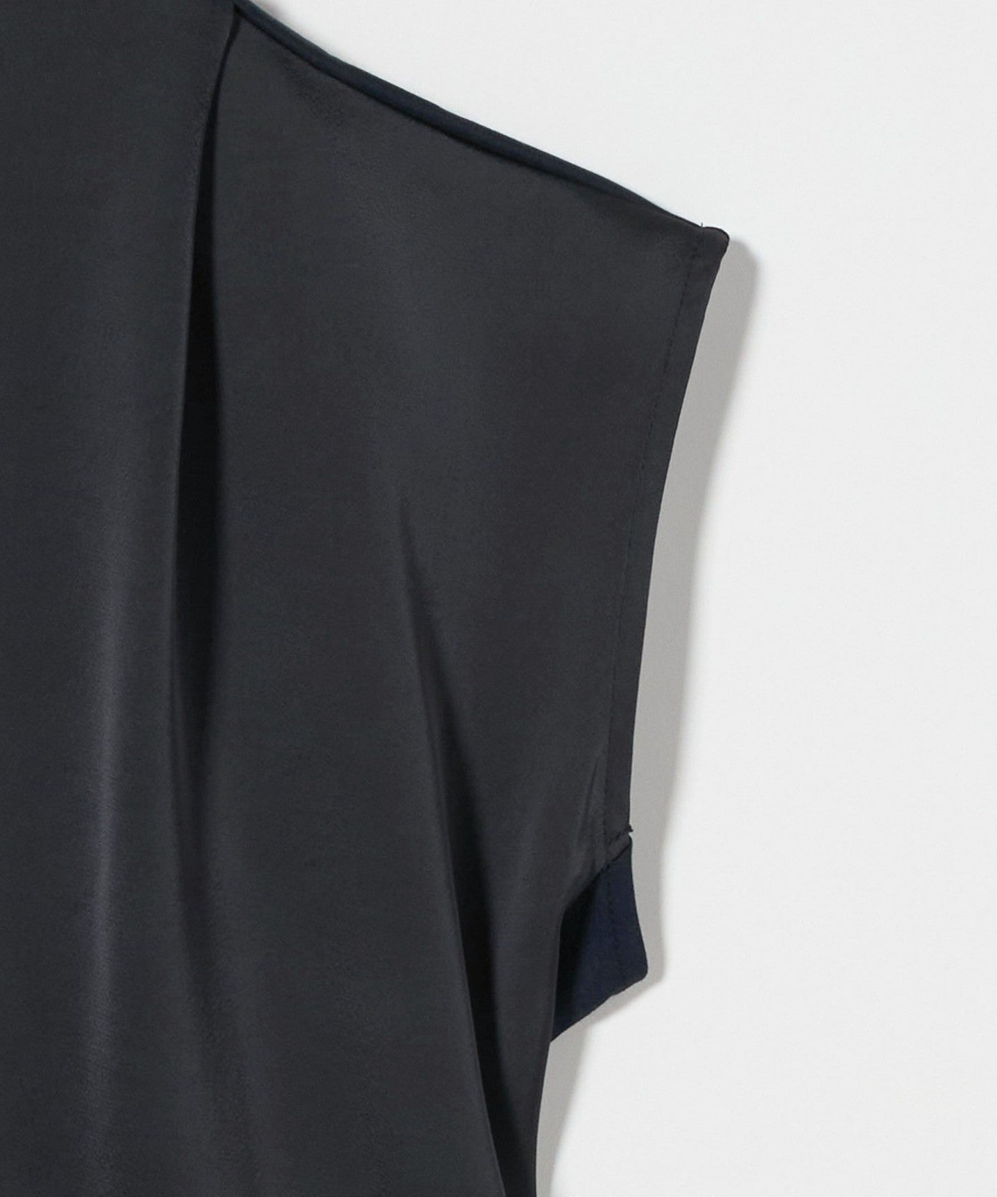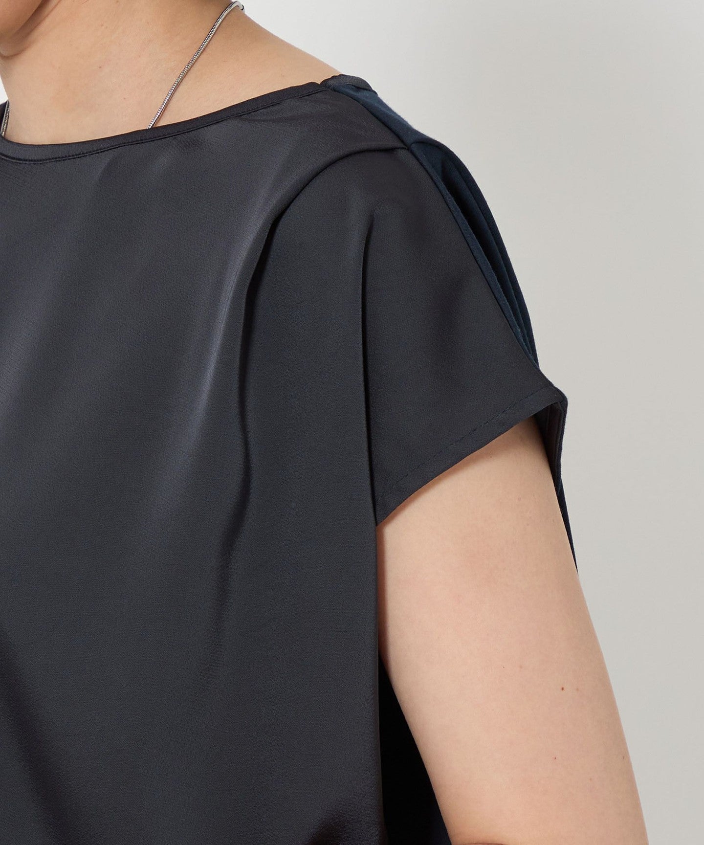This dress has a docking design with the front made of satin fabric and the back made of cut and sew fabric.