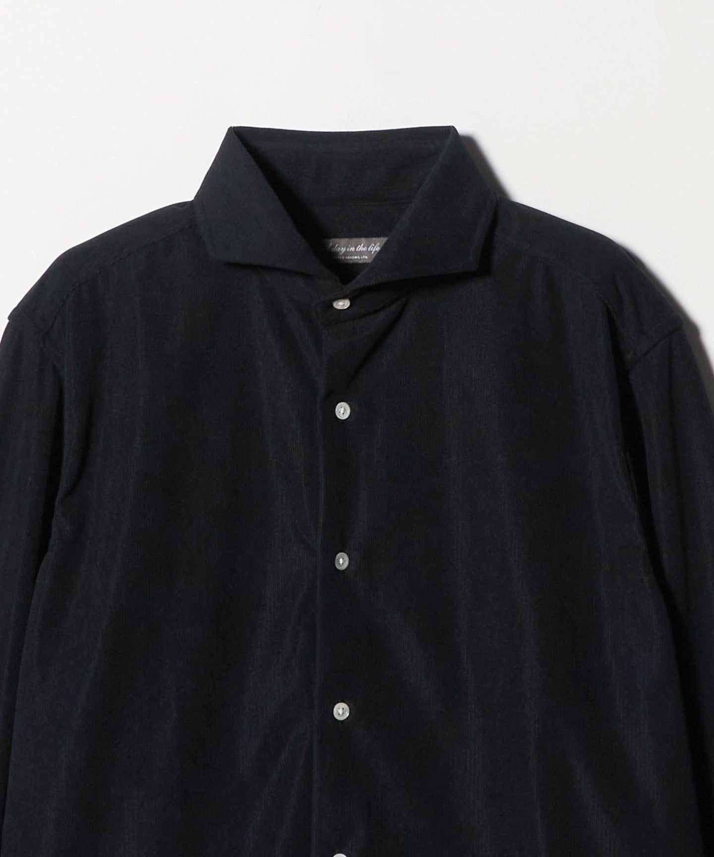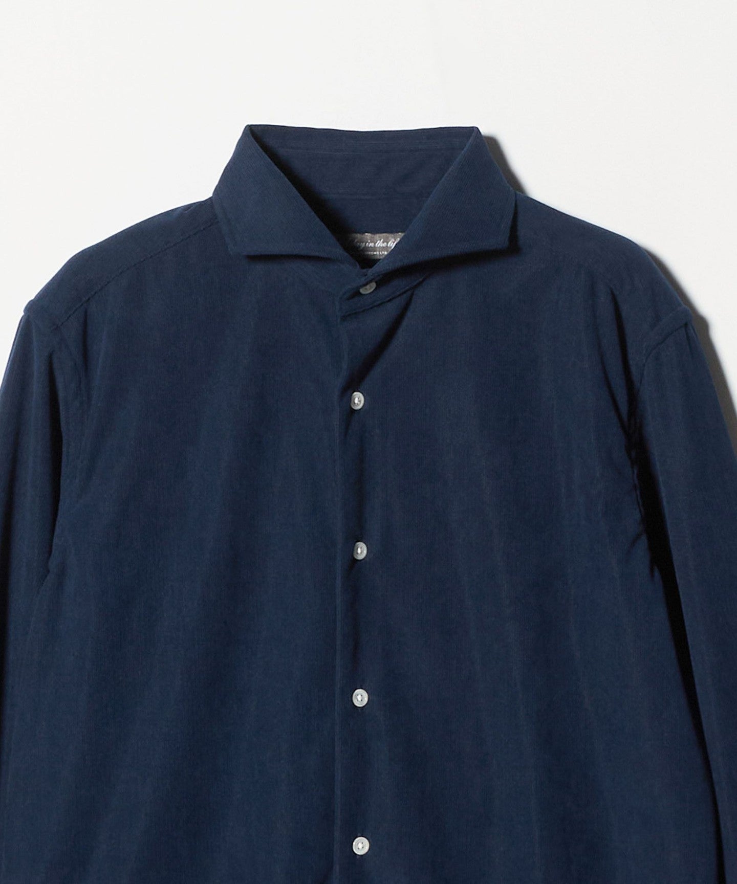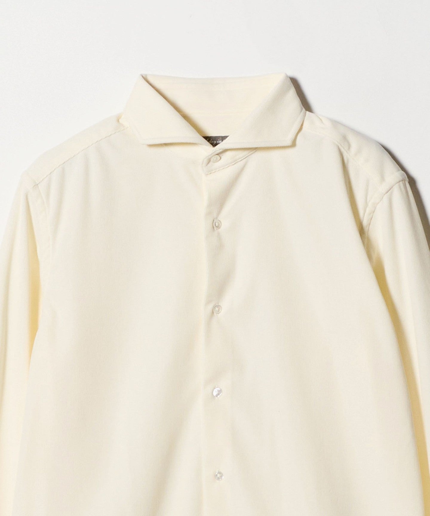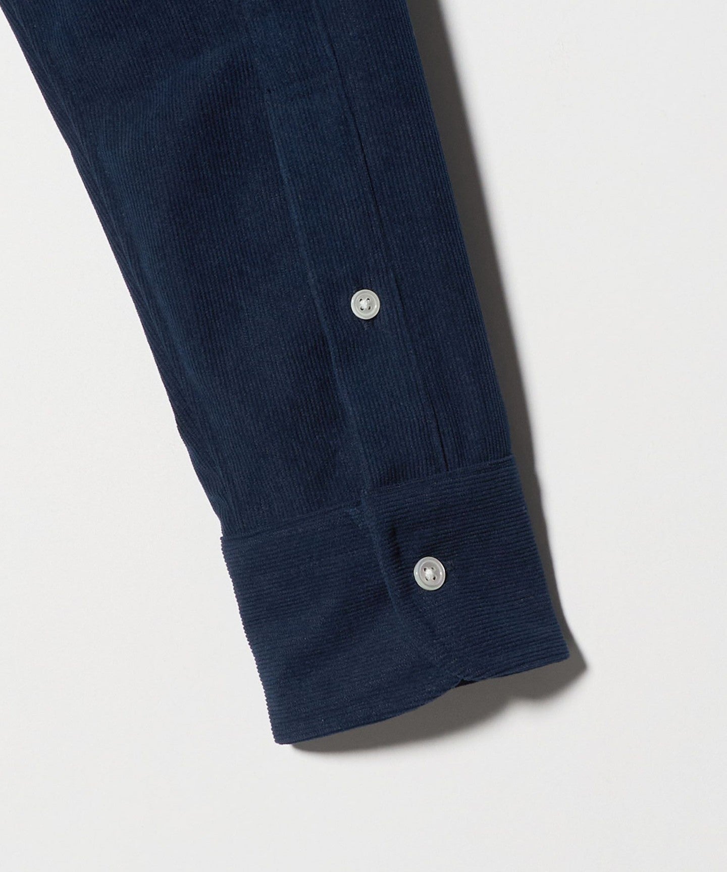 細い畝を持つコーデュロイ素材を用いた長袖シャツ。