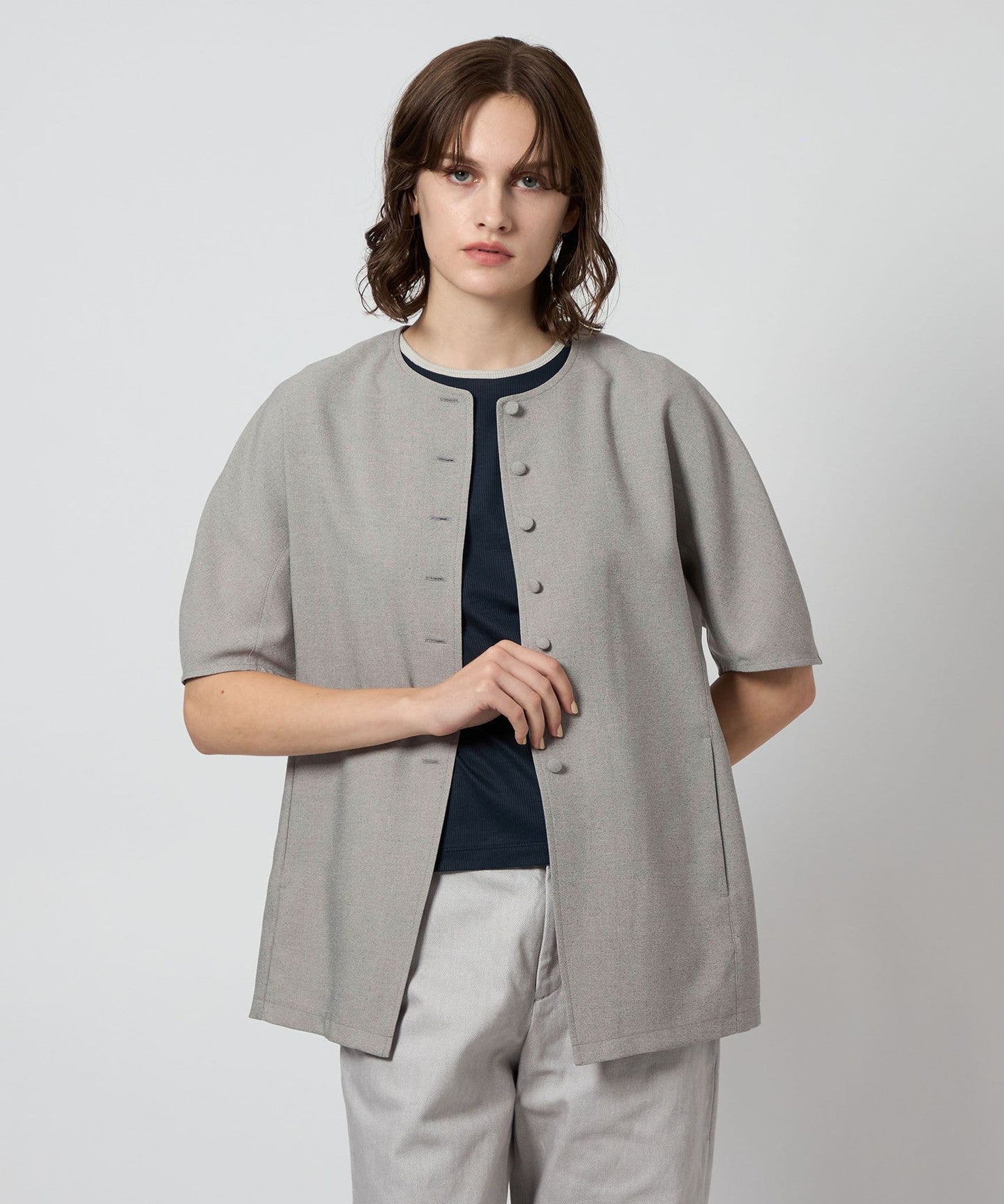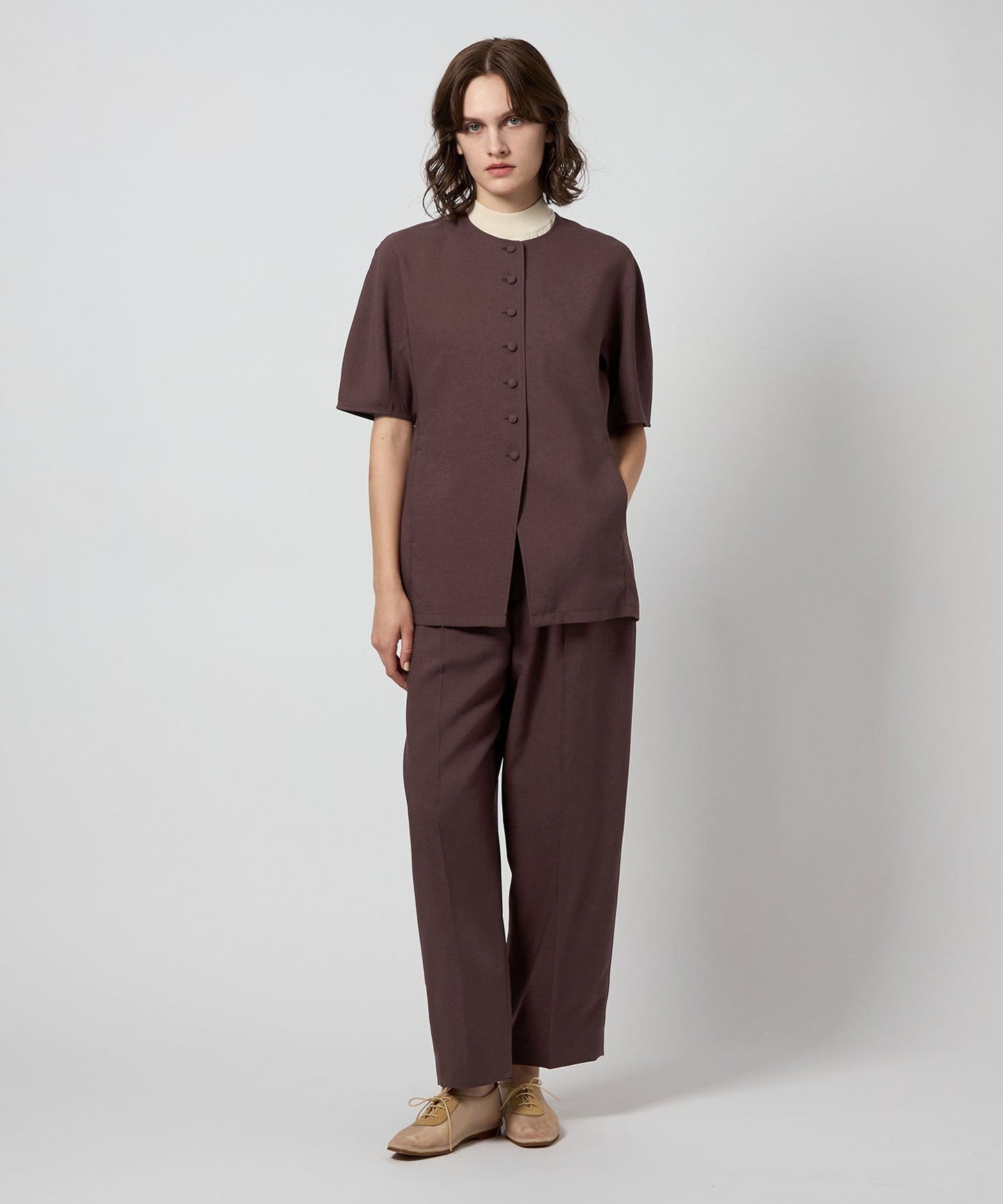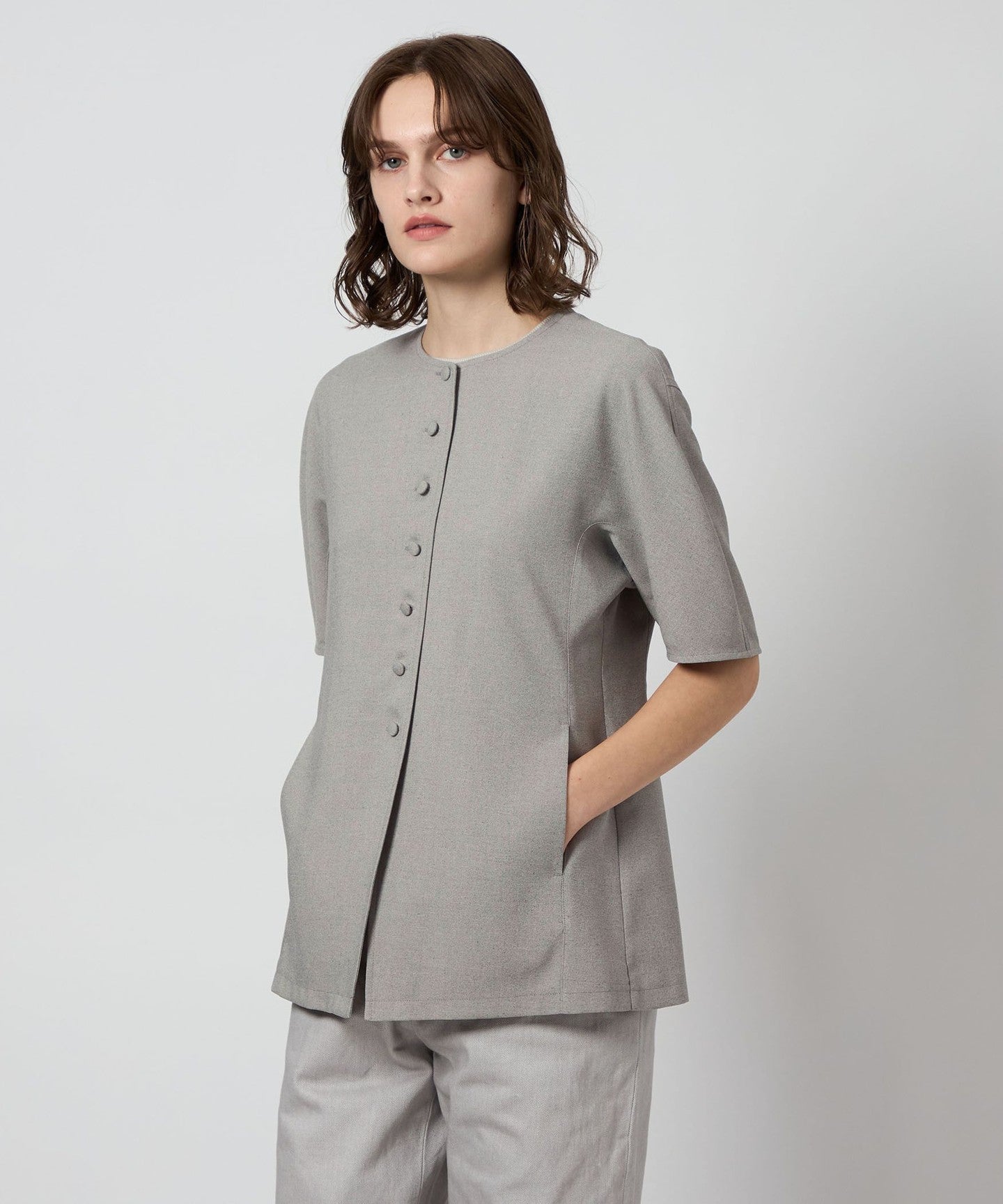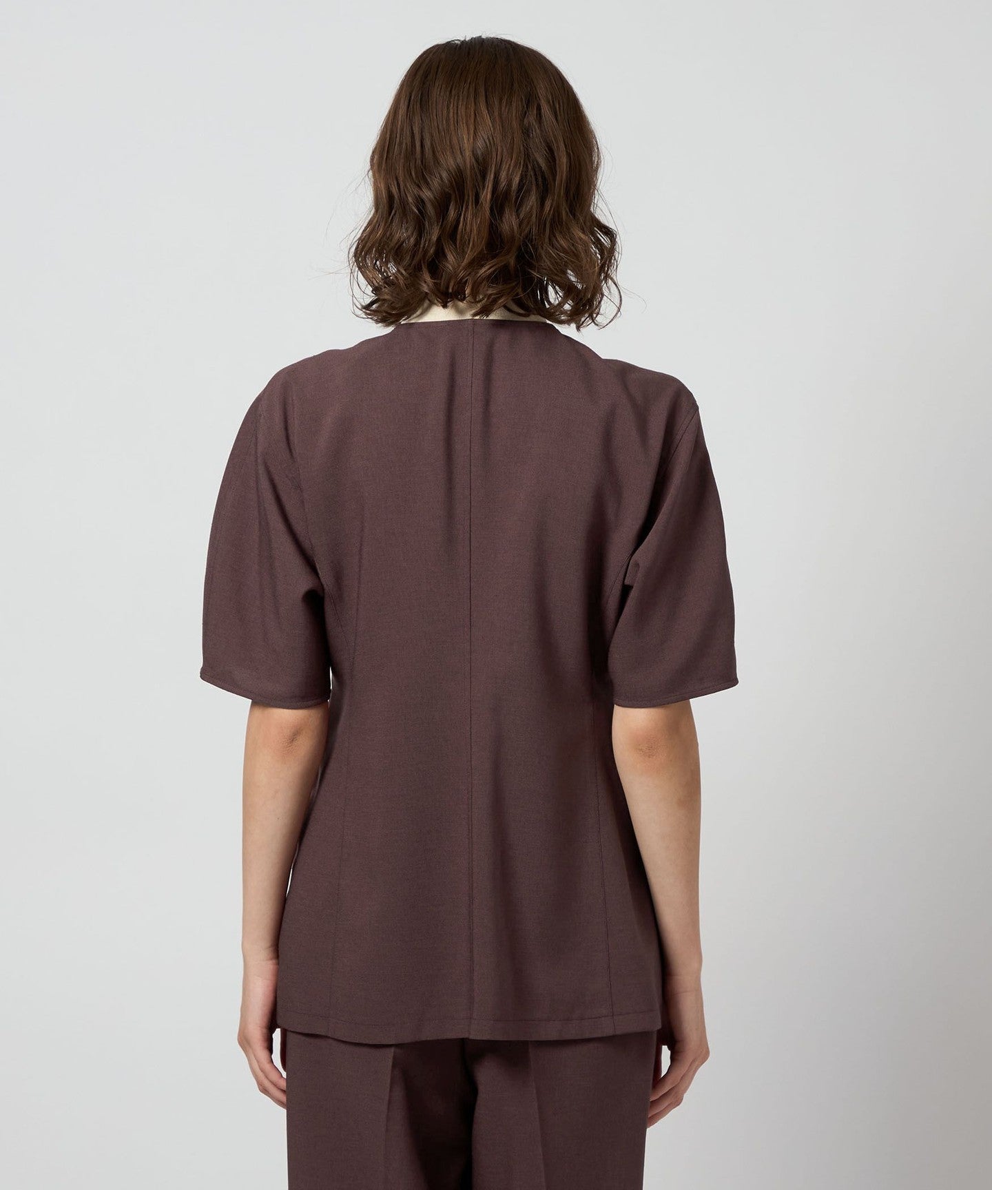 This blouse has a retro feel with rounded tucked sleeves and a slim waistline.
