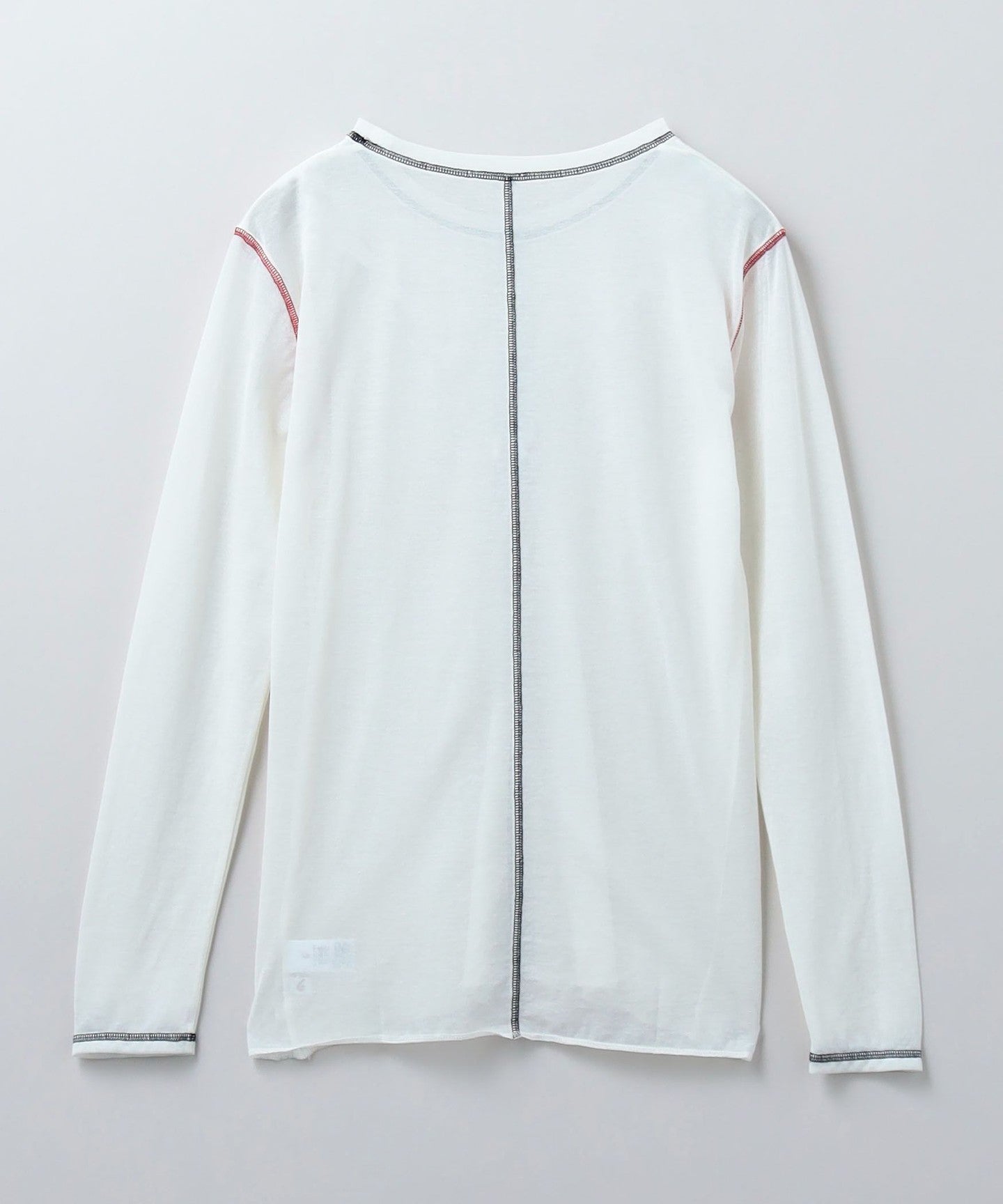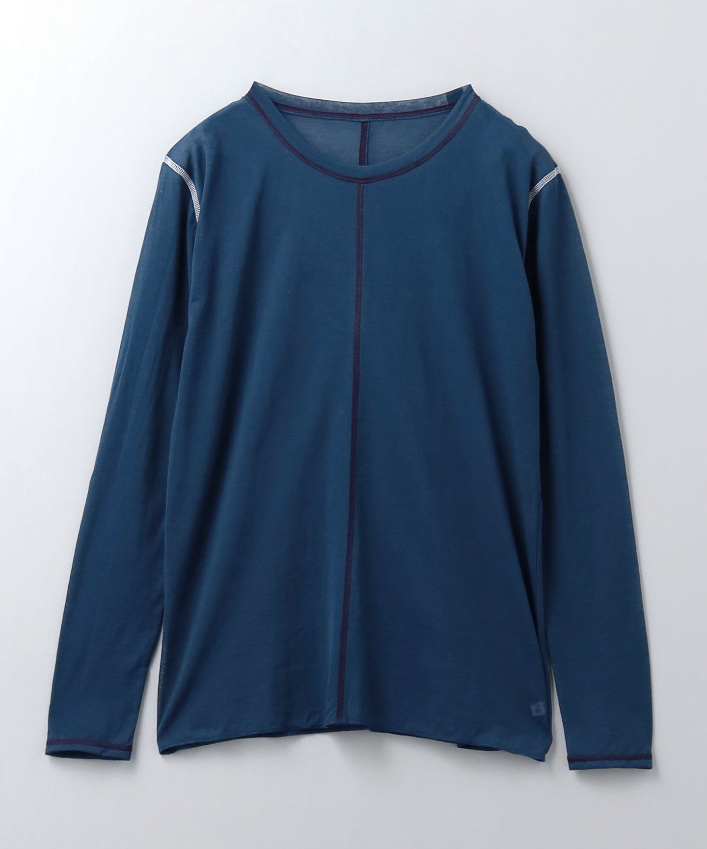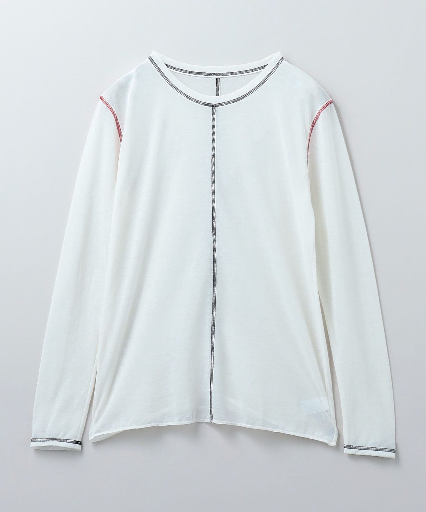 This long-sleeved T-shirt is made from thin cotton thread covered with nylon, giving it a smooth texture and an elegant transparency.