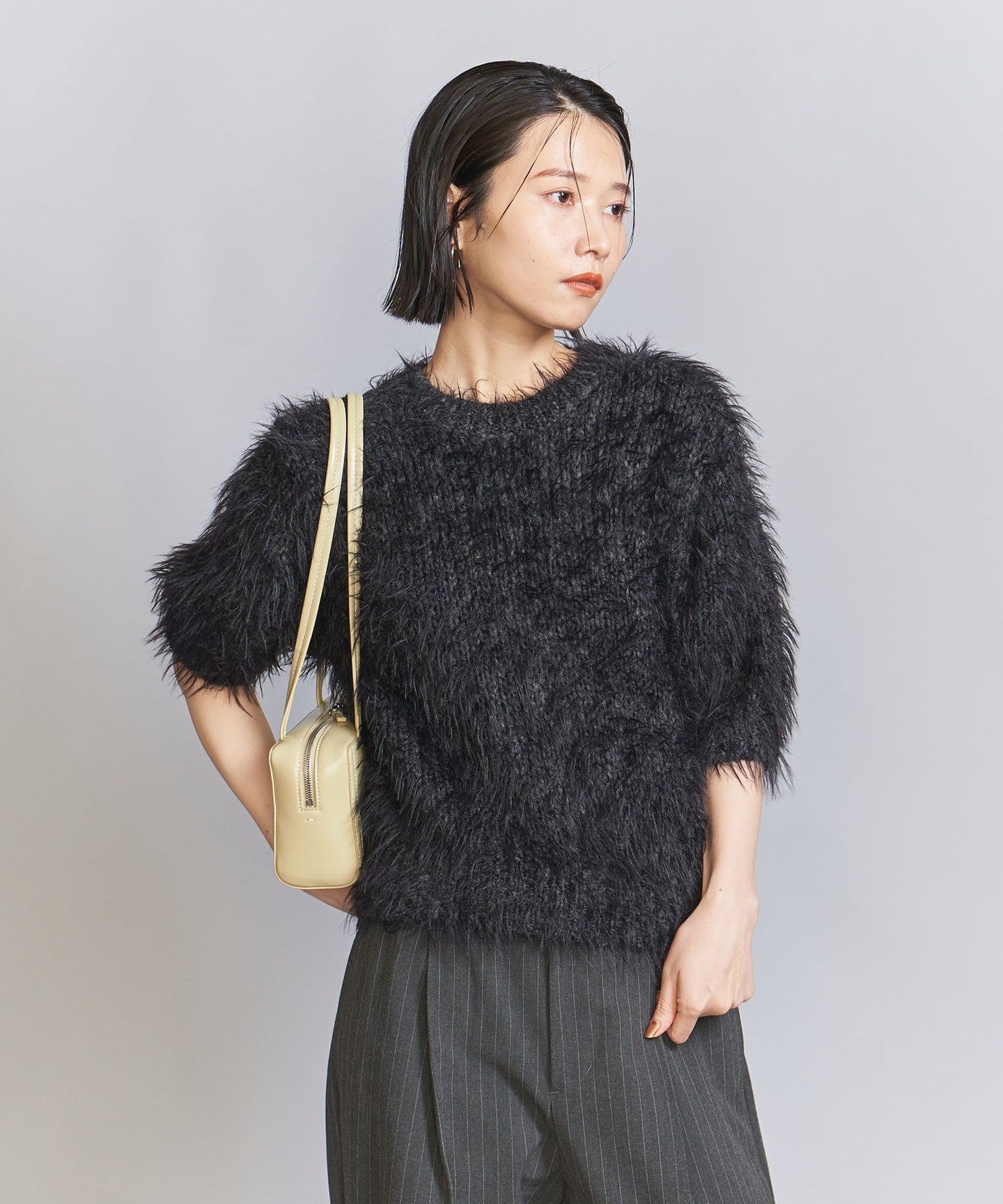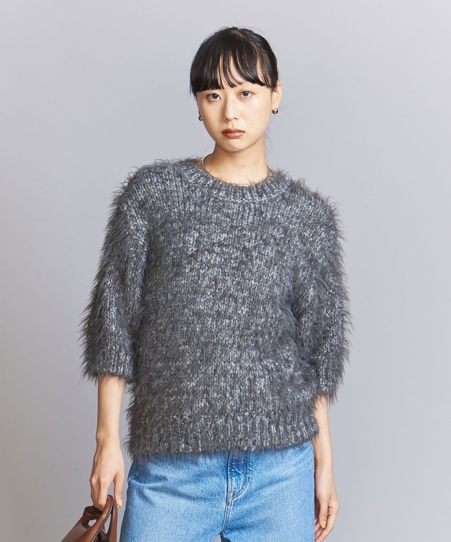 BEAUTY&YOUTHFeather Yarn Short Sleeve Knit Pullover
