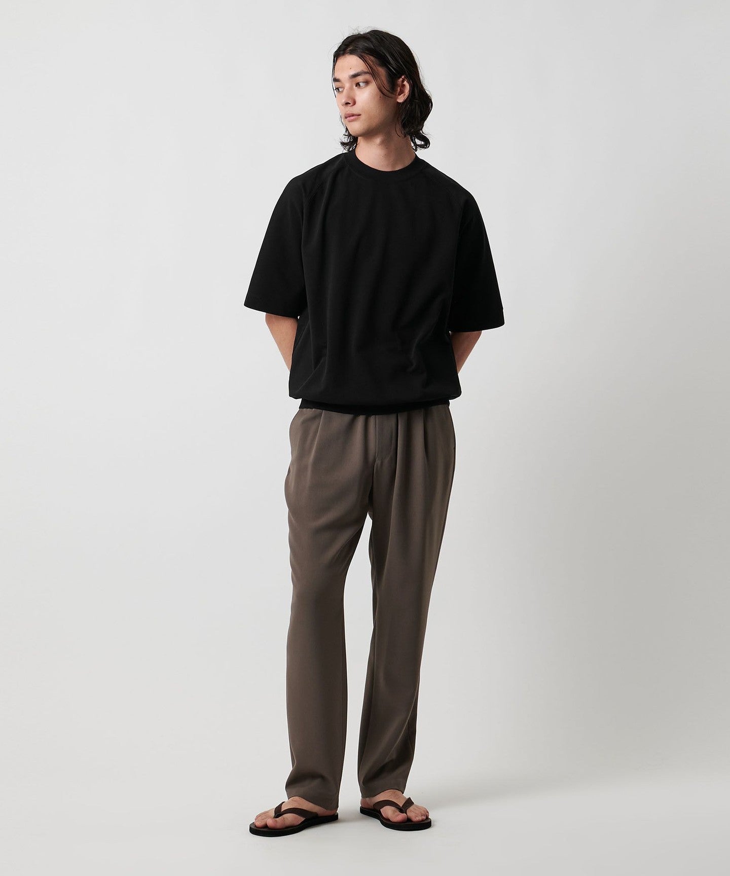 We recommend pairing it with slacks-style trousers for a sophisticated, mature look.