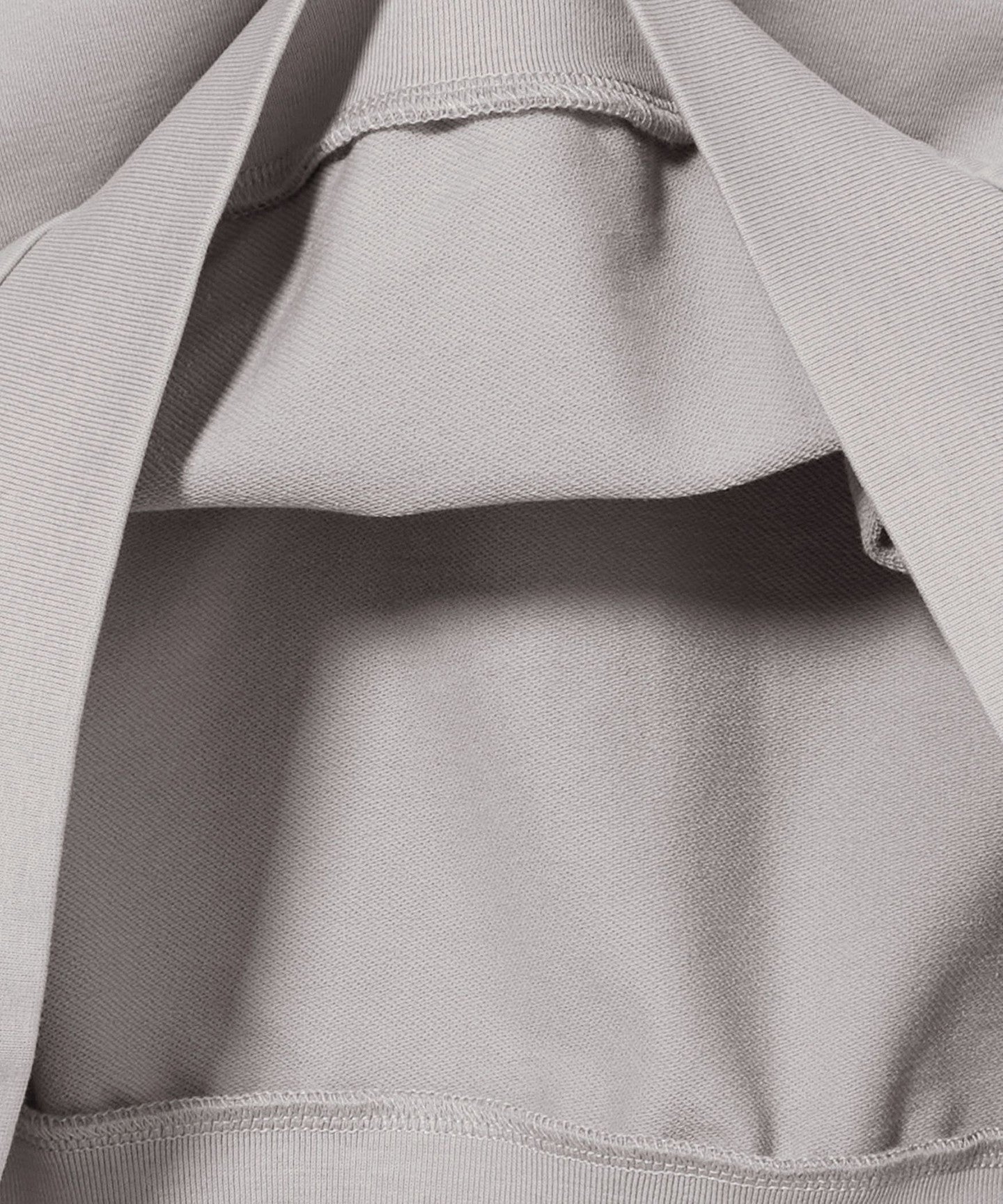 The reverse side has a looped fleece structure, which makes it more voluminous than conventional poncho, giving it the three-dimensional, rounded look that is characteristic of a sweatshirt when worn.