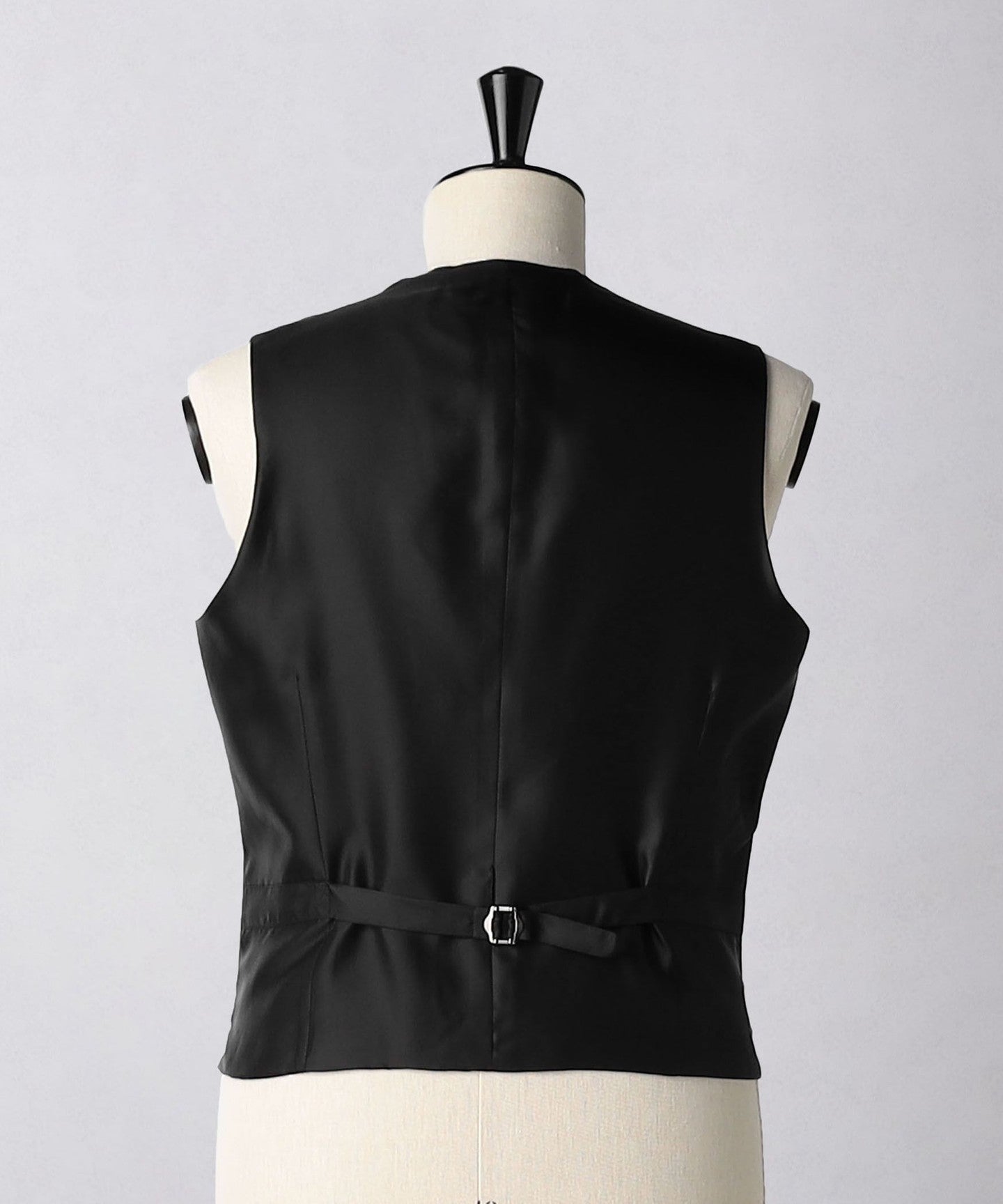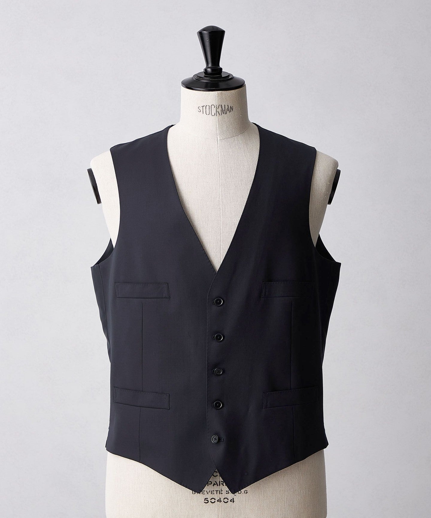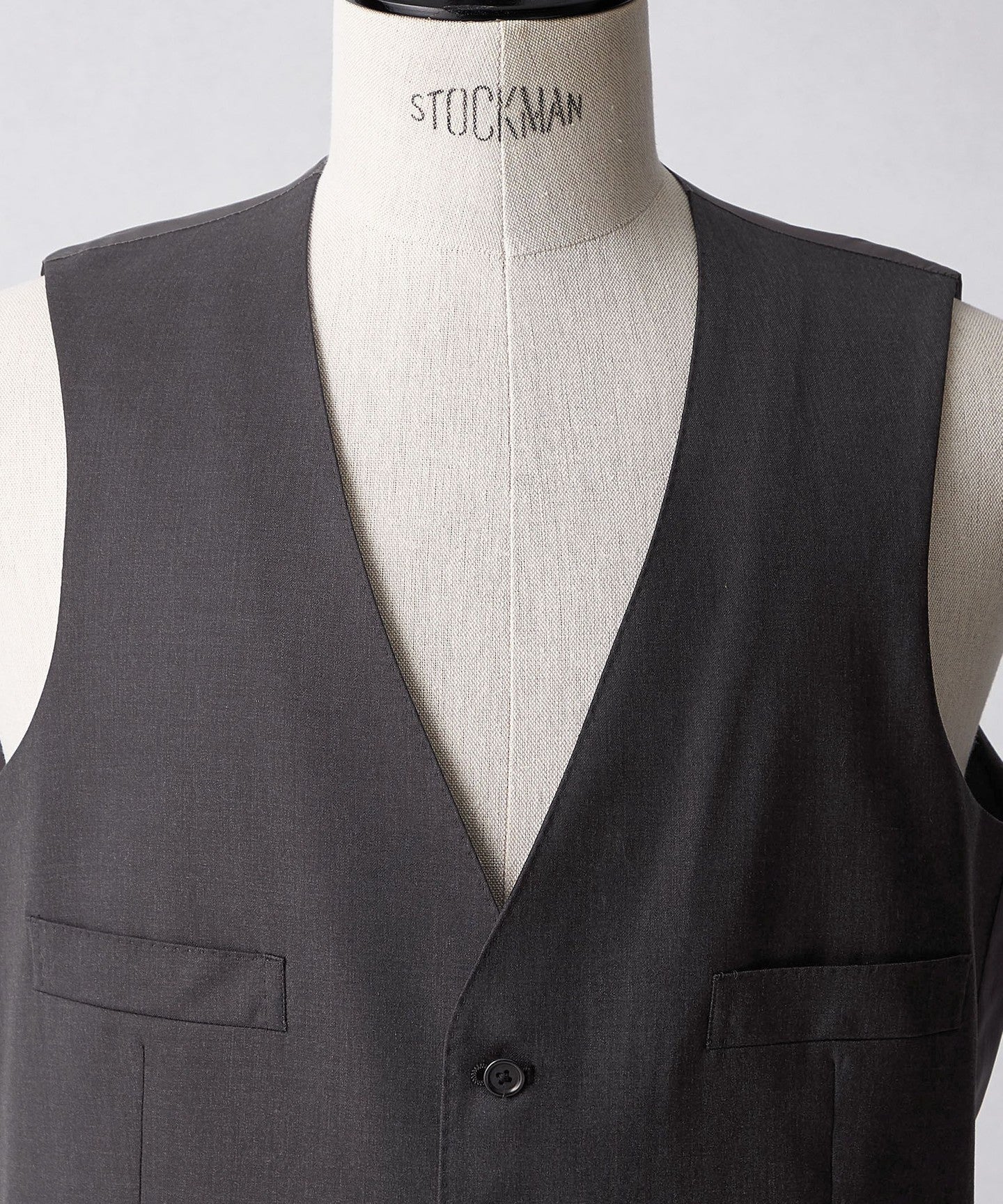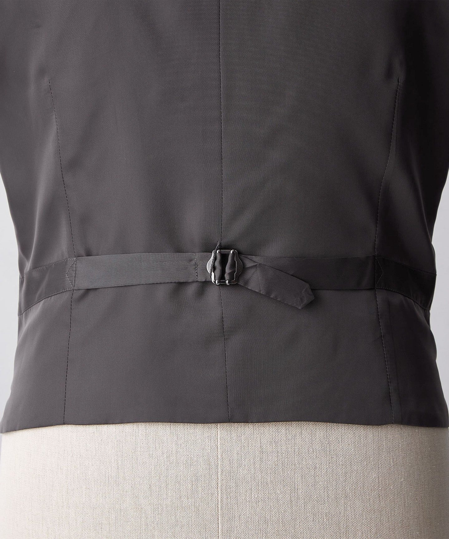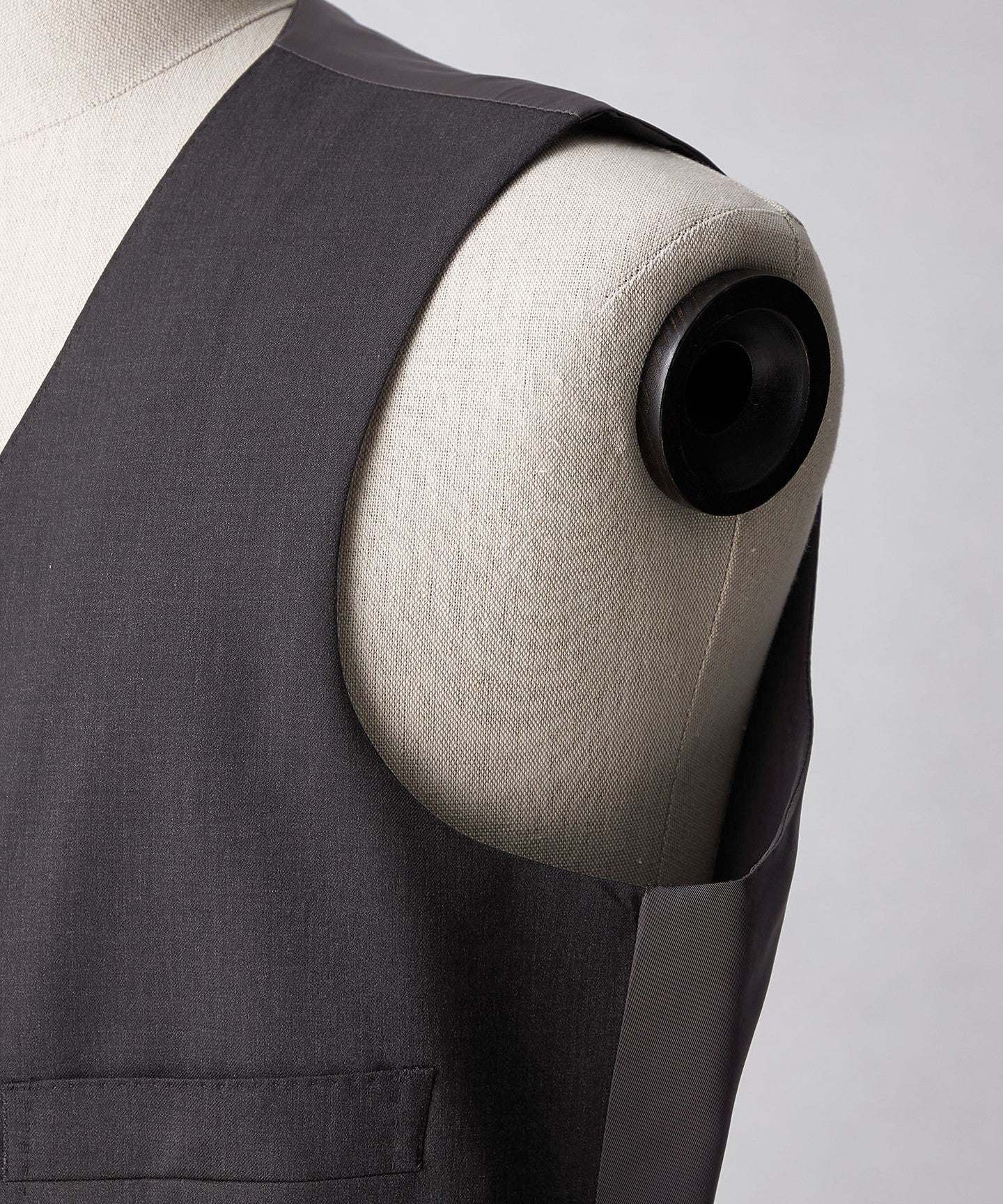 This vest is made from Tasmanian wool gabardine, which has a smooth texture and a natural, elegant luster.
