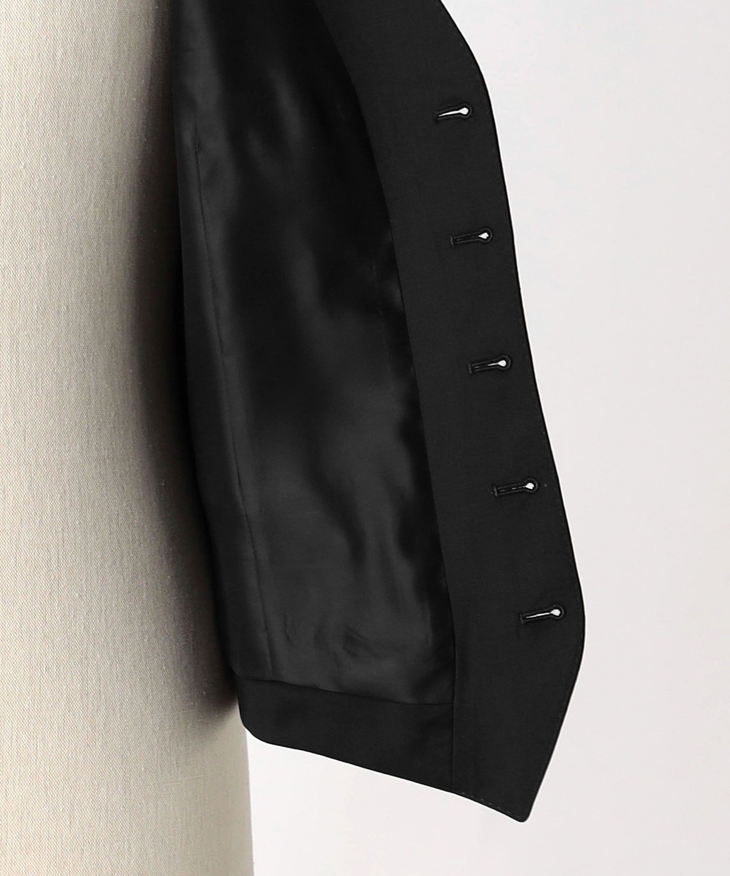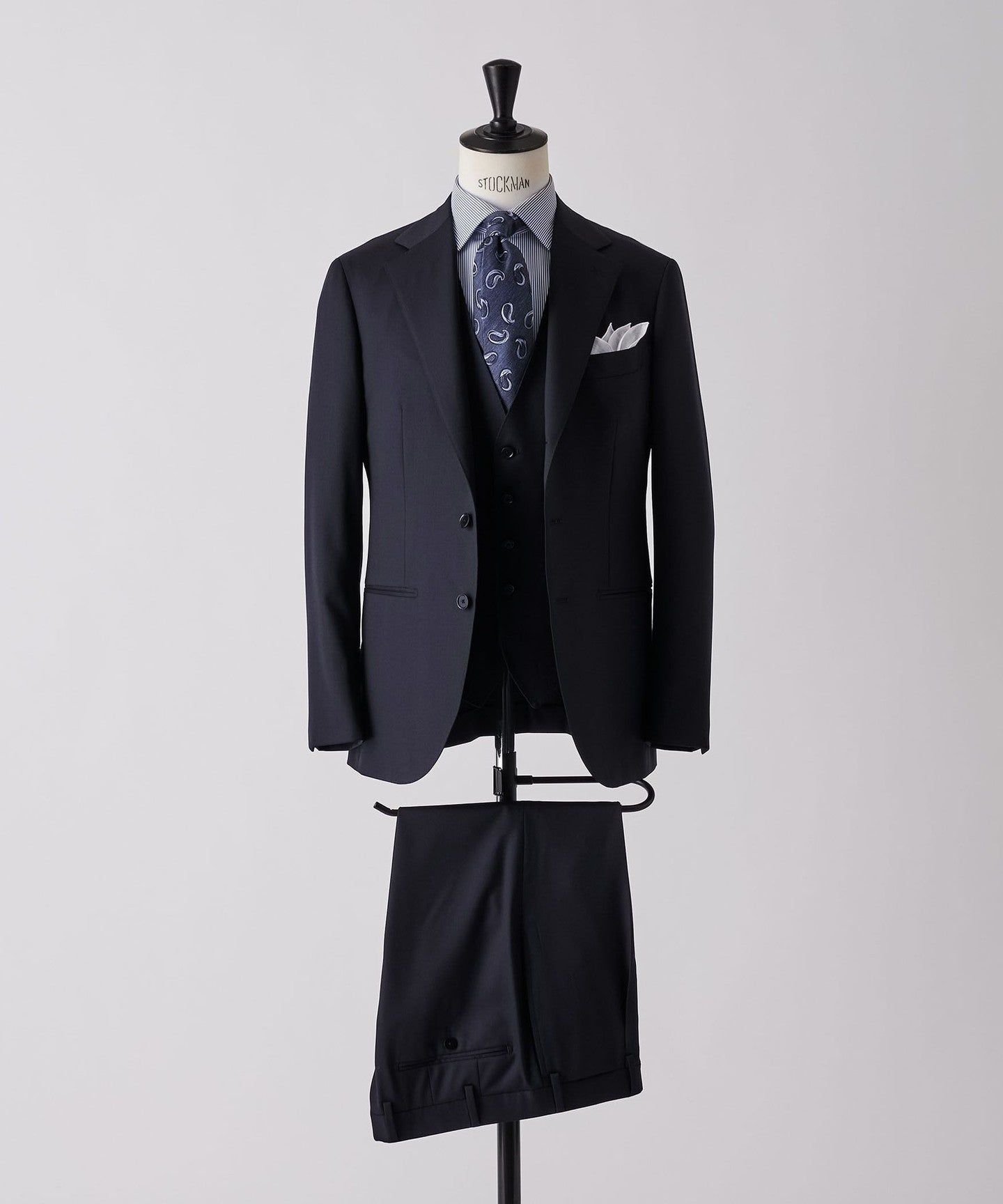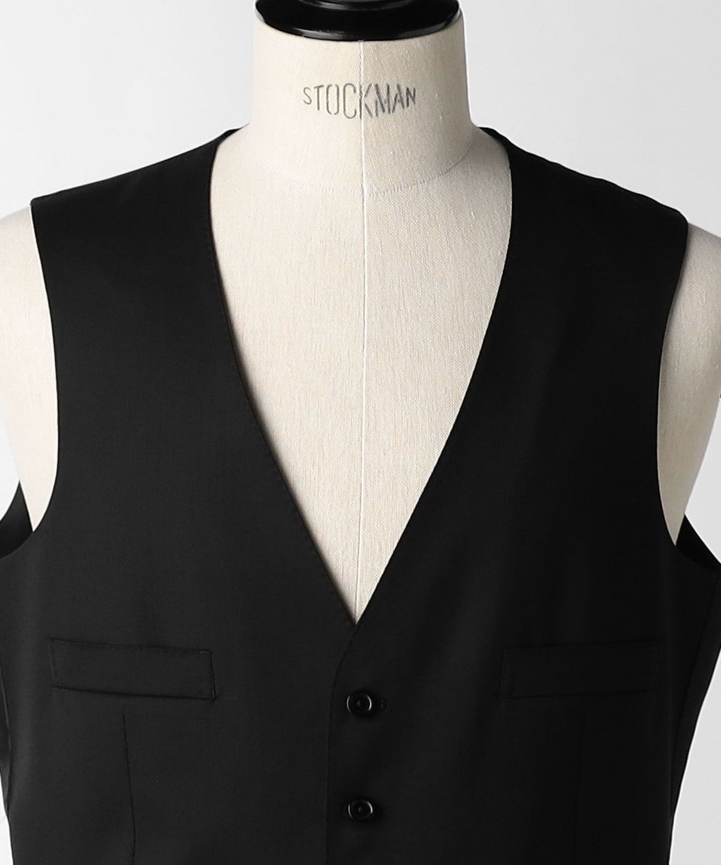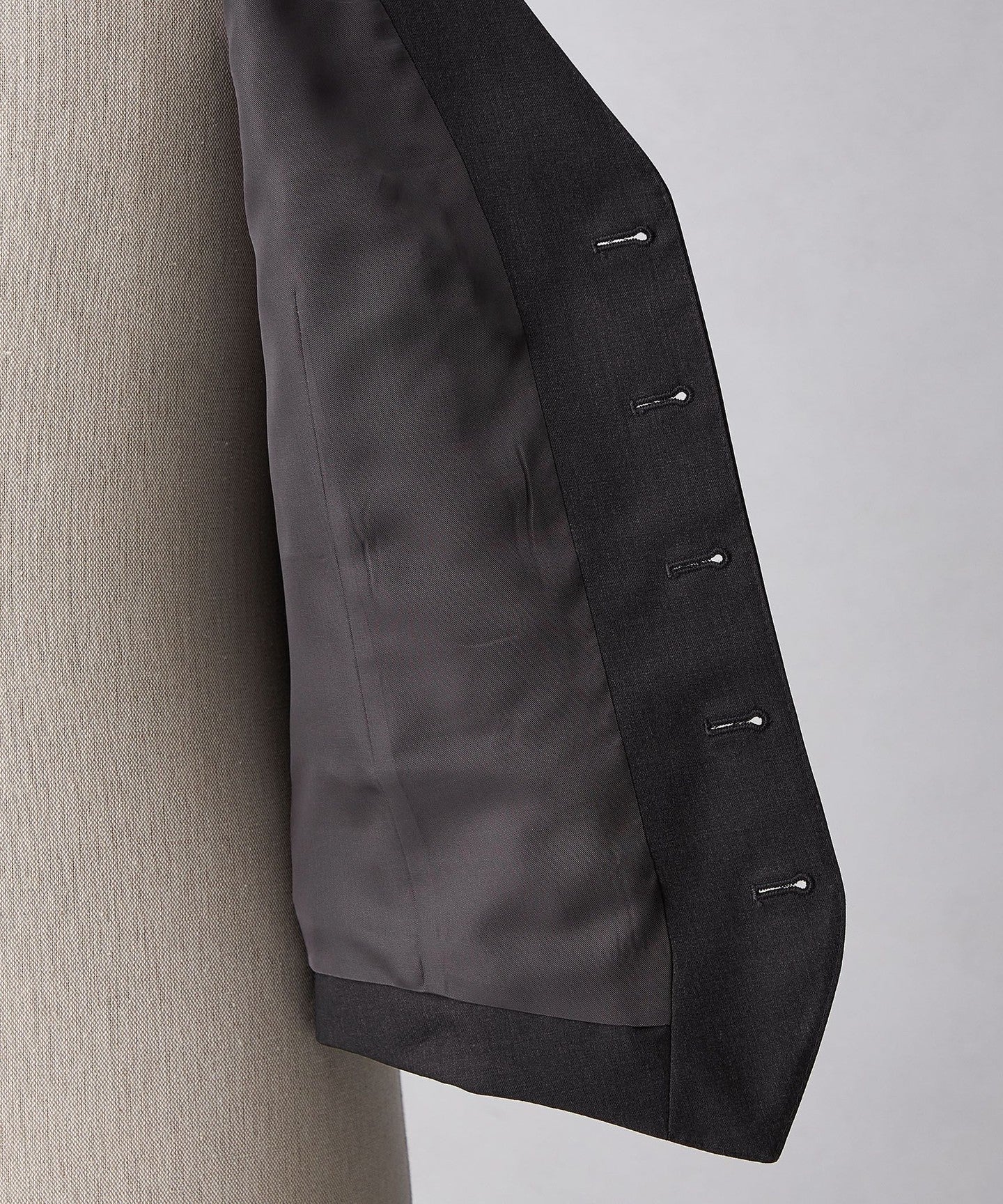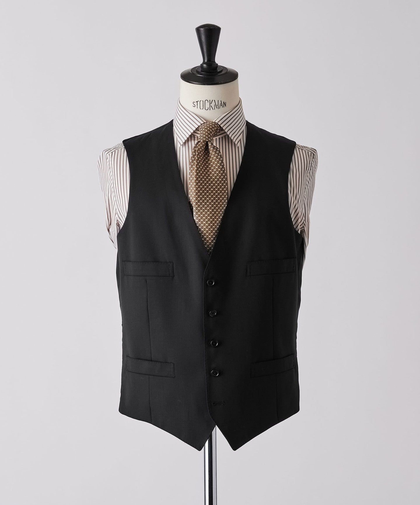 This vest is made from Tasmanian wool gabardine, which has a smooth texture and a natural, elegant luster.