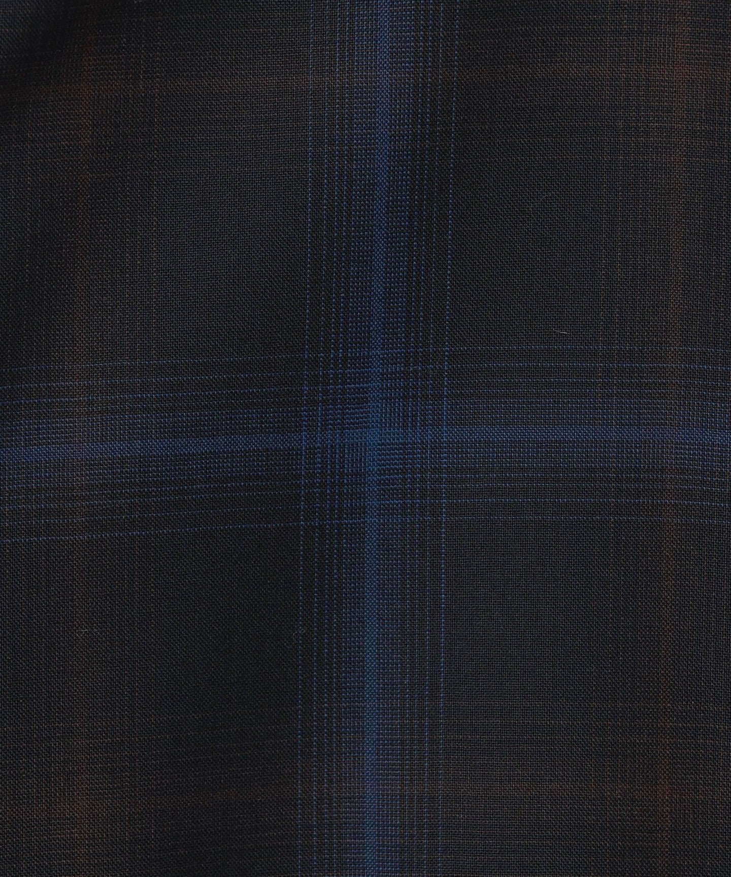 The fabric is a 50% wool and 50% polyester blend, woven and sewn in Japan.