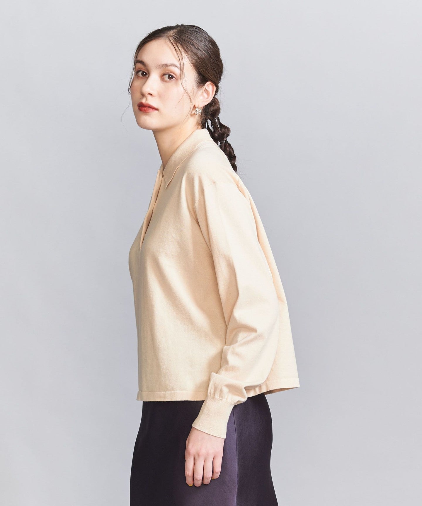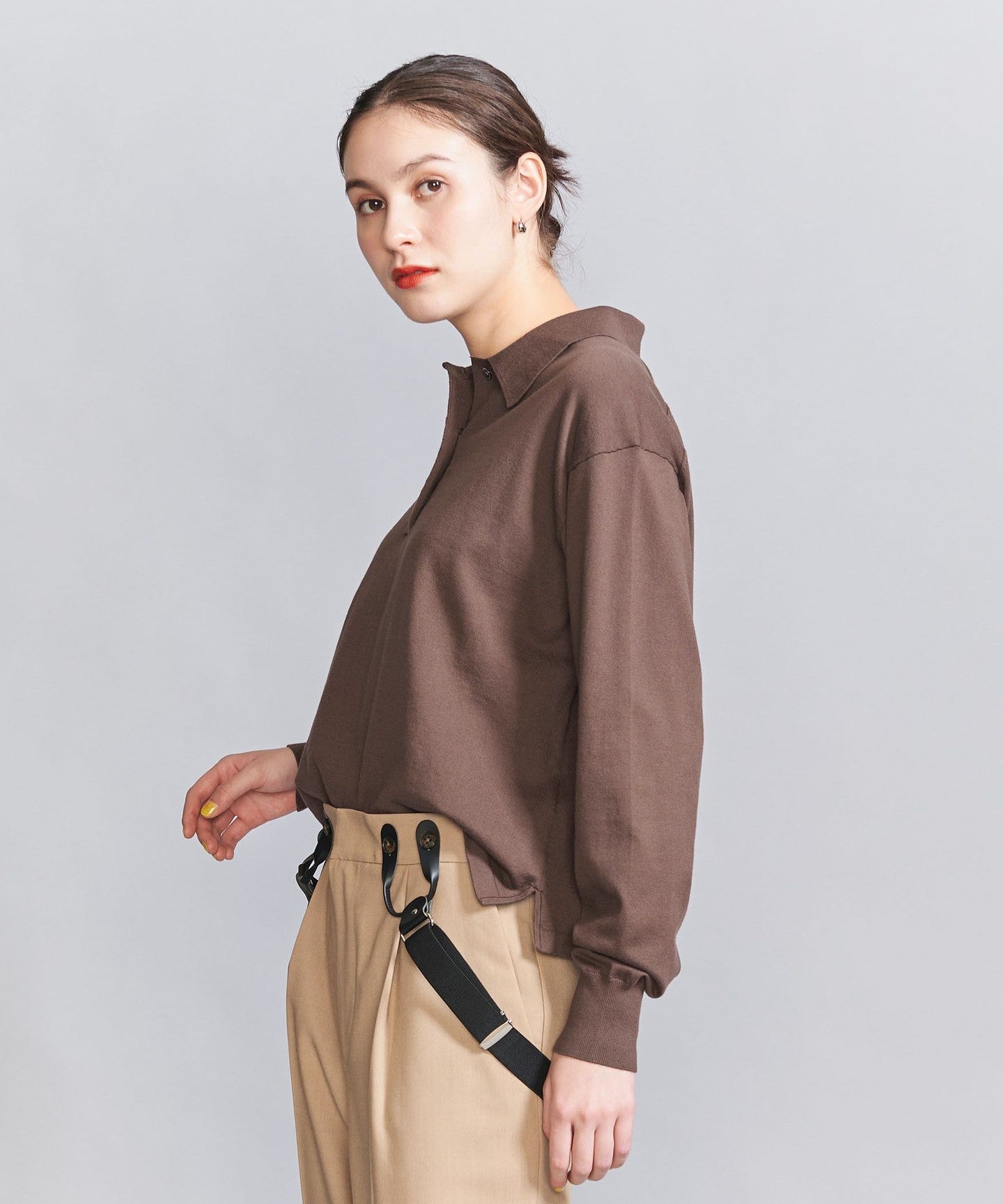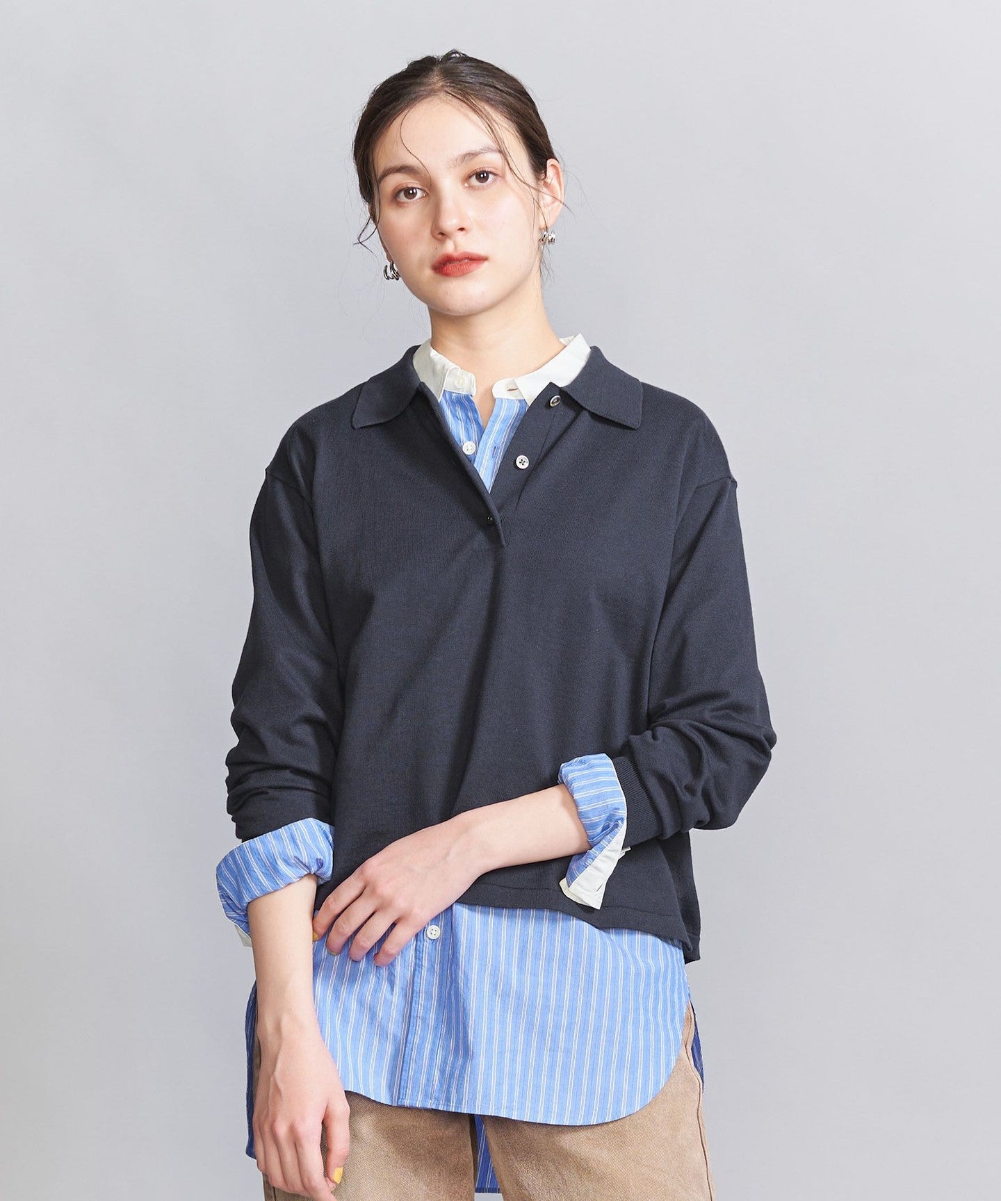 This polo knit can be worn like a T-shirt because it does not have a ribbed hem.