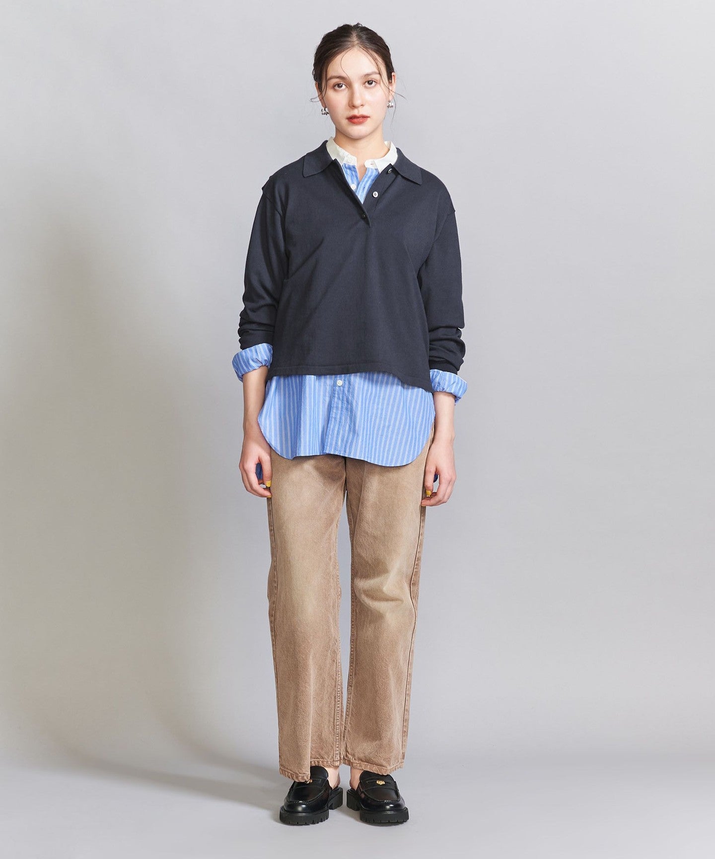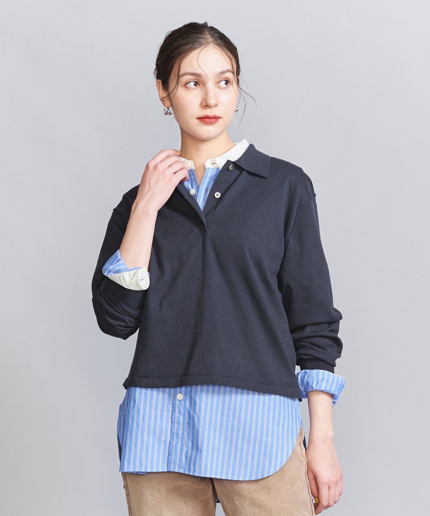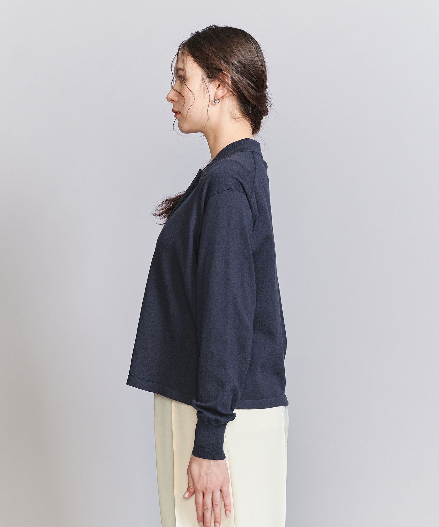 This polo knit can be worn like a T-shirt because it does not have a ribbed hem.