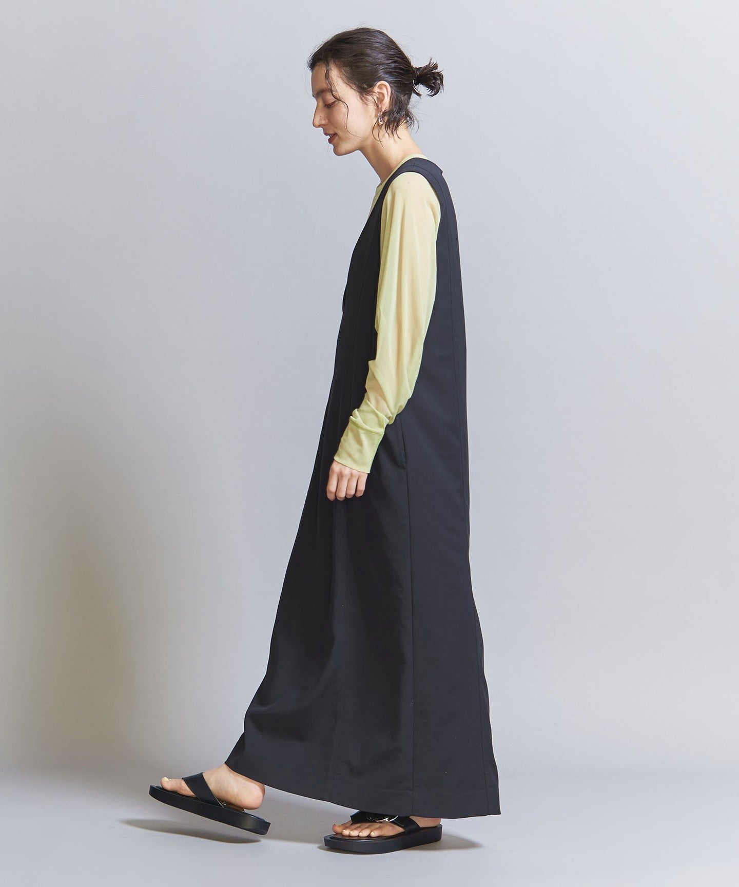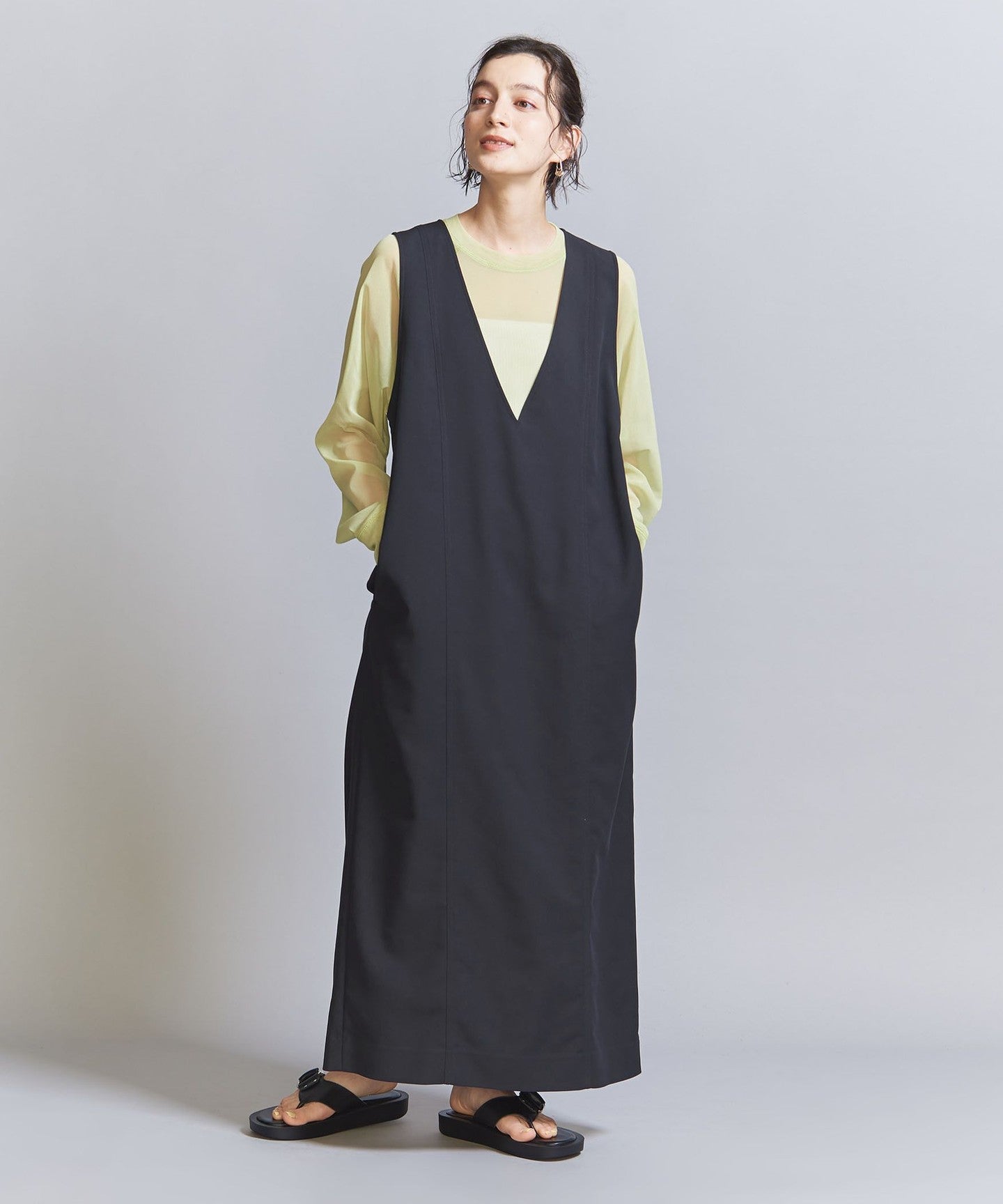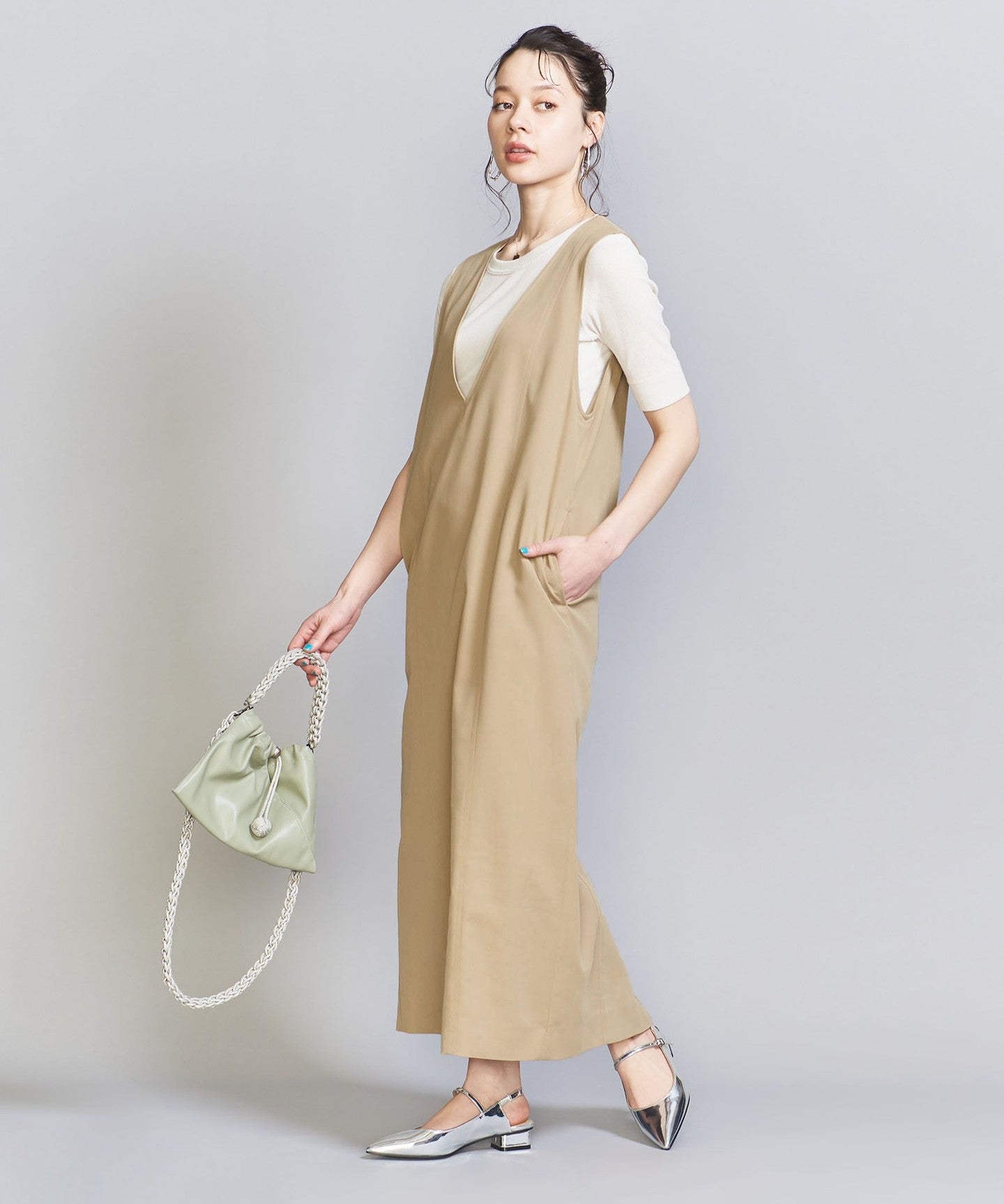 The armholes are also roomy, so it can be worn with not only cut and sewn items