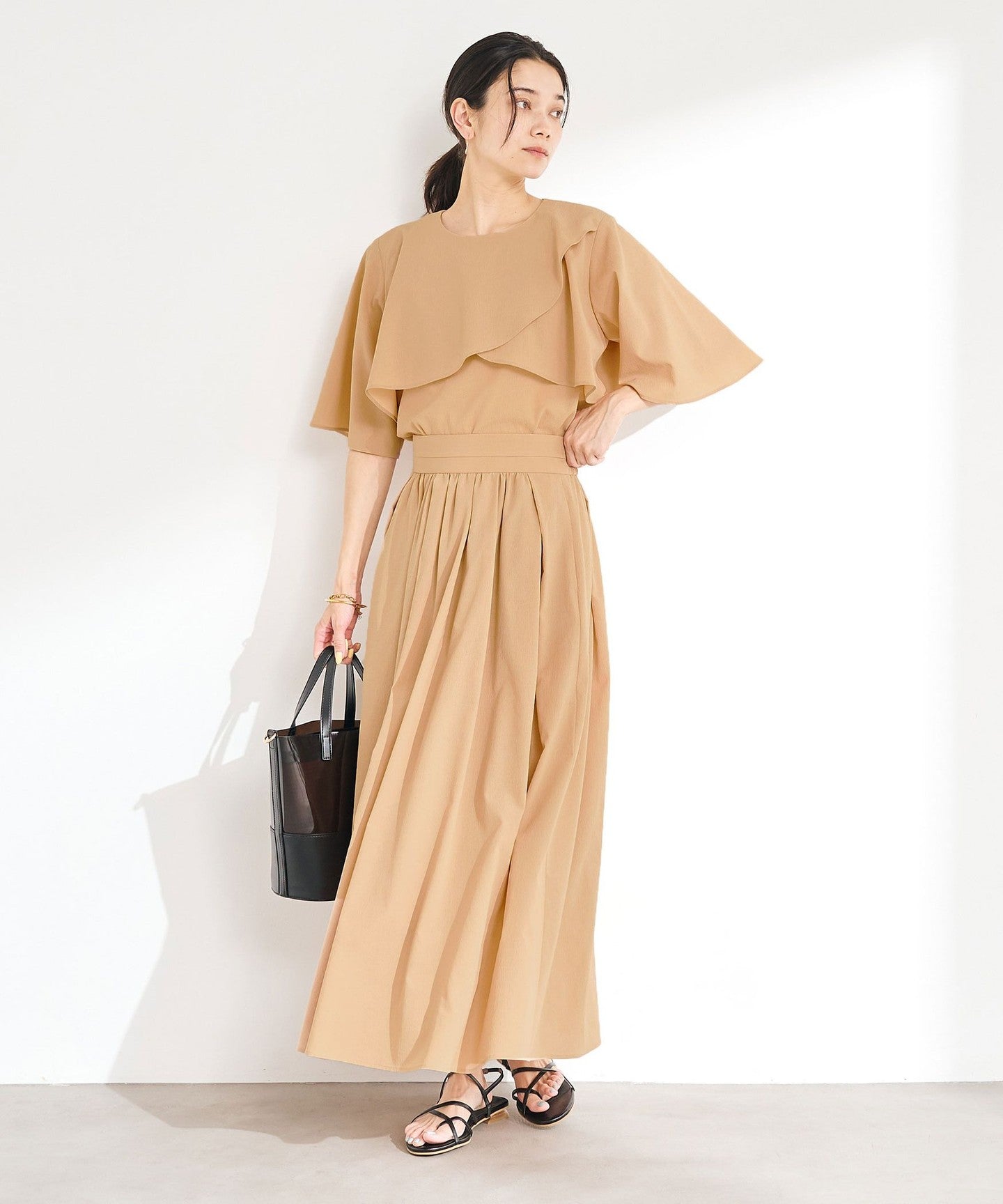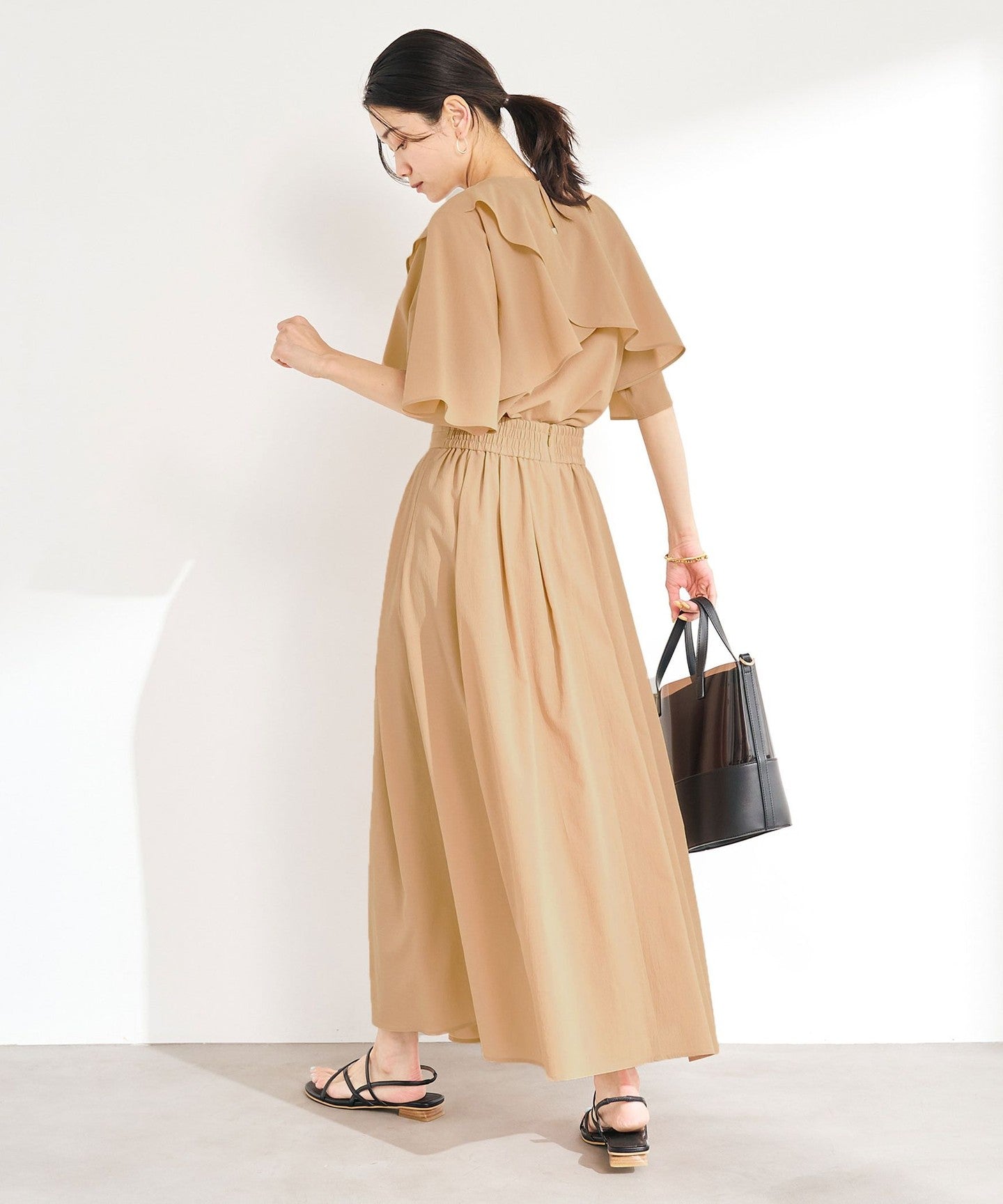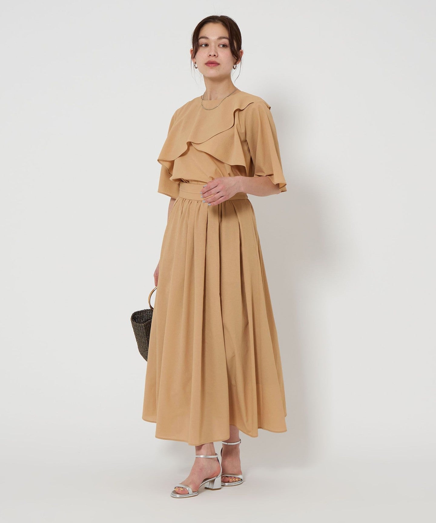 The hem flutters softly with every step, creating a feminine look.