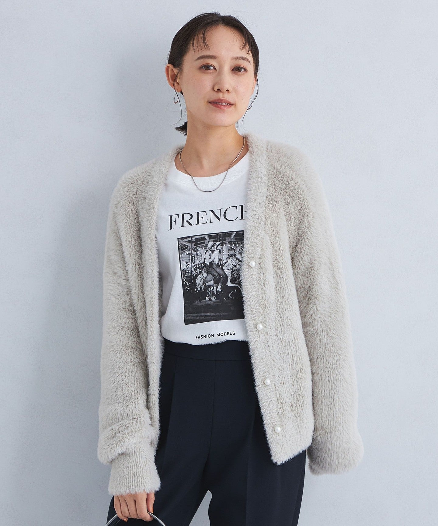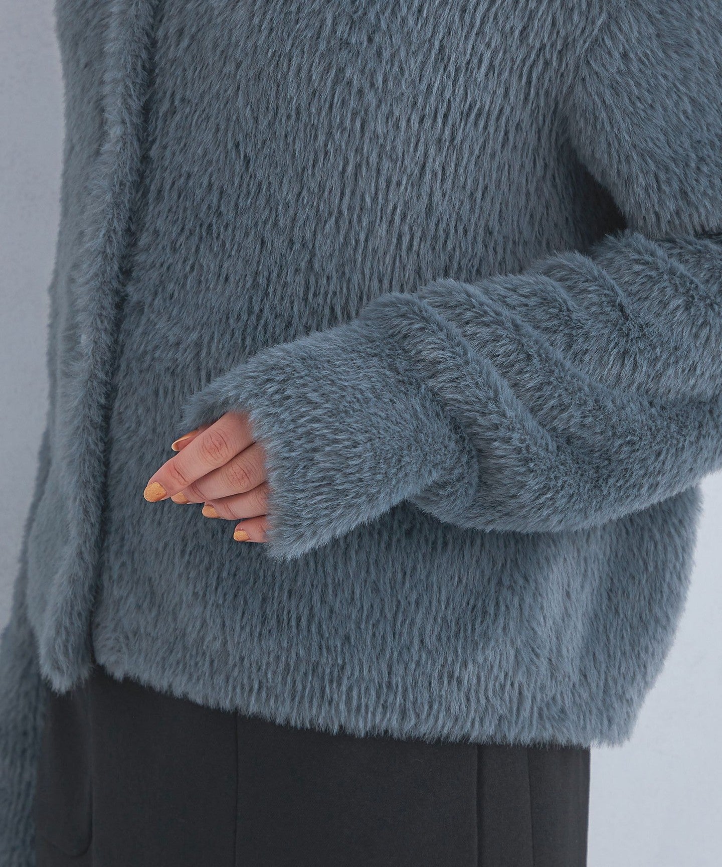 A cardigan with a soft, fluffy texture