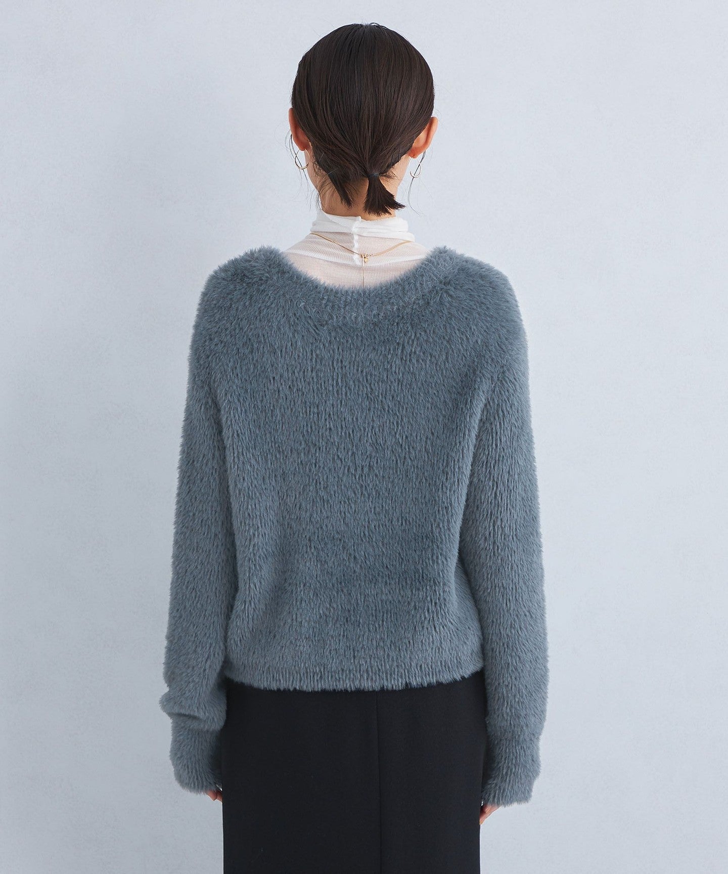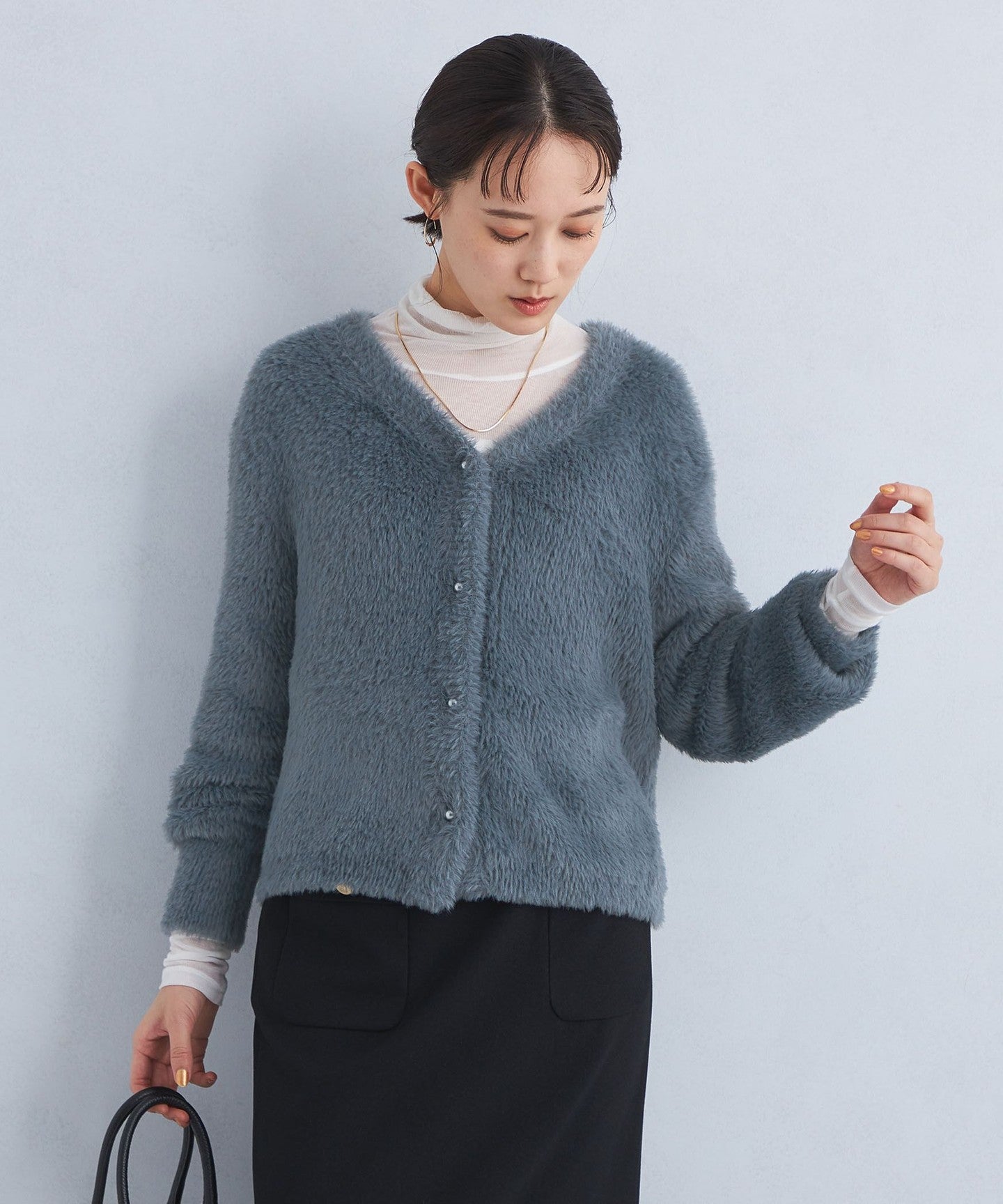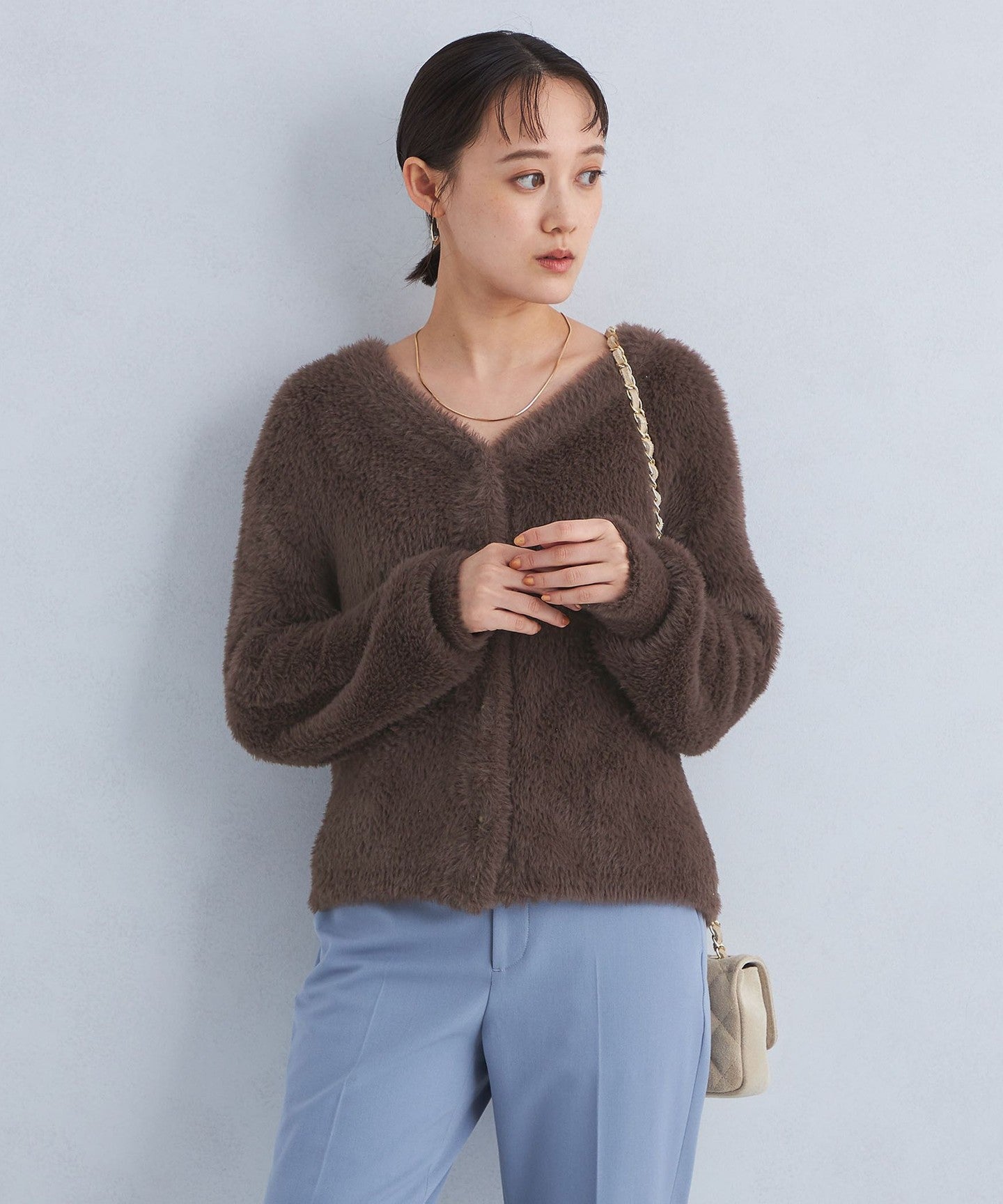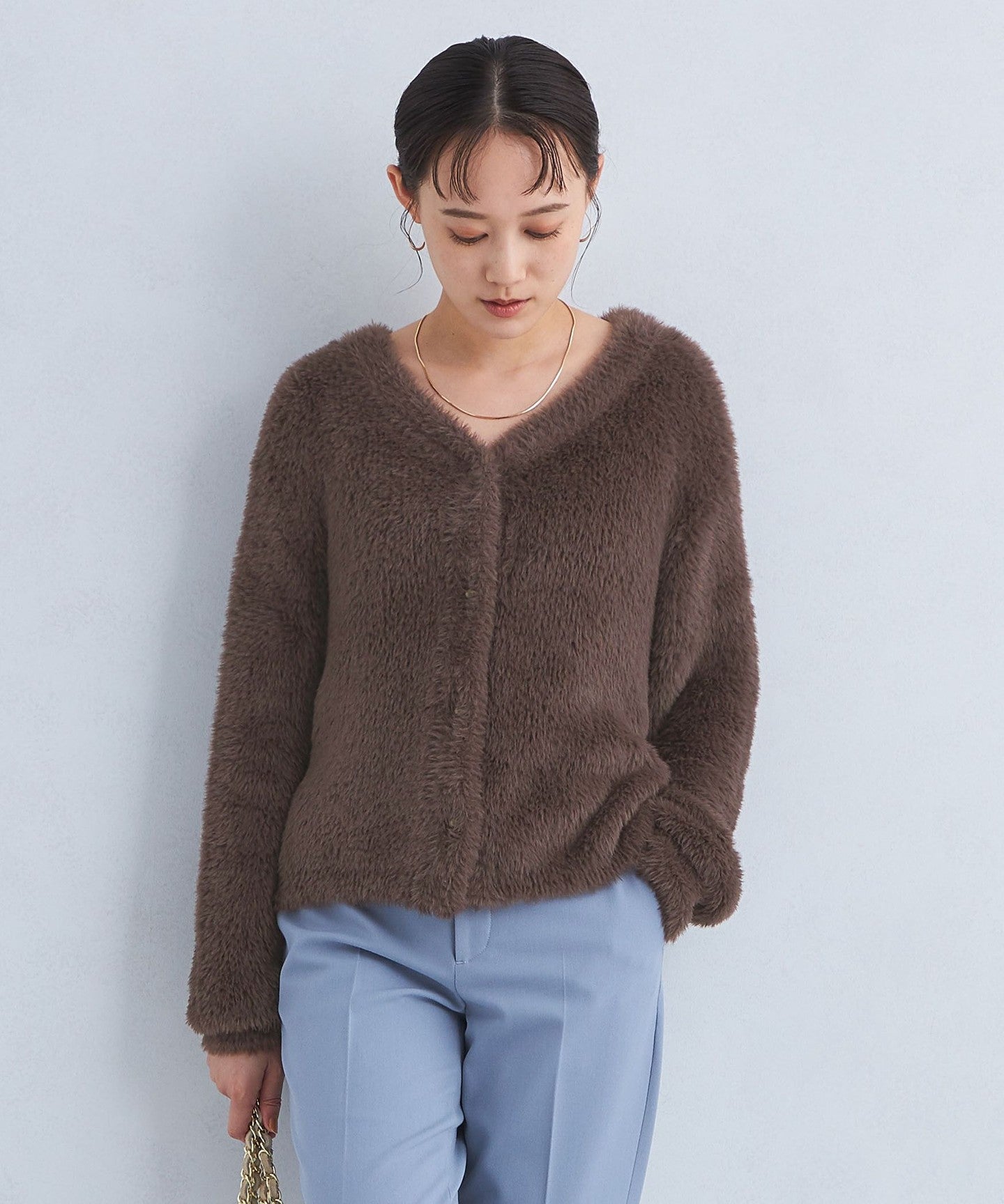 Shaggy V-neck knit cardigan