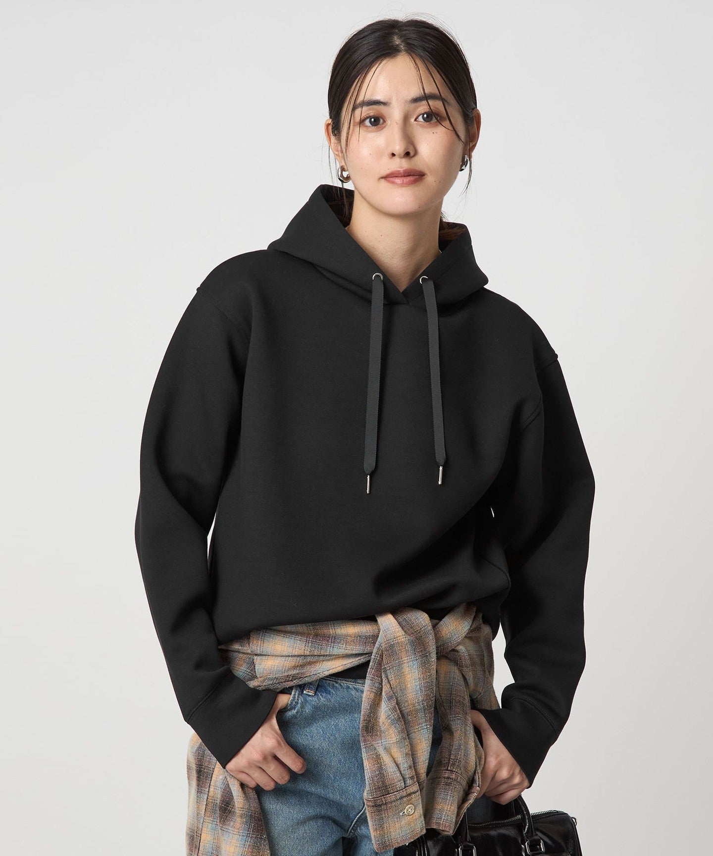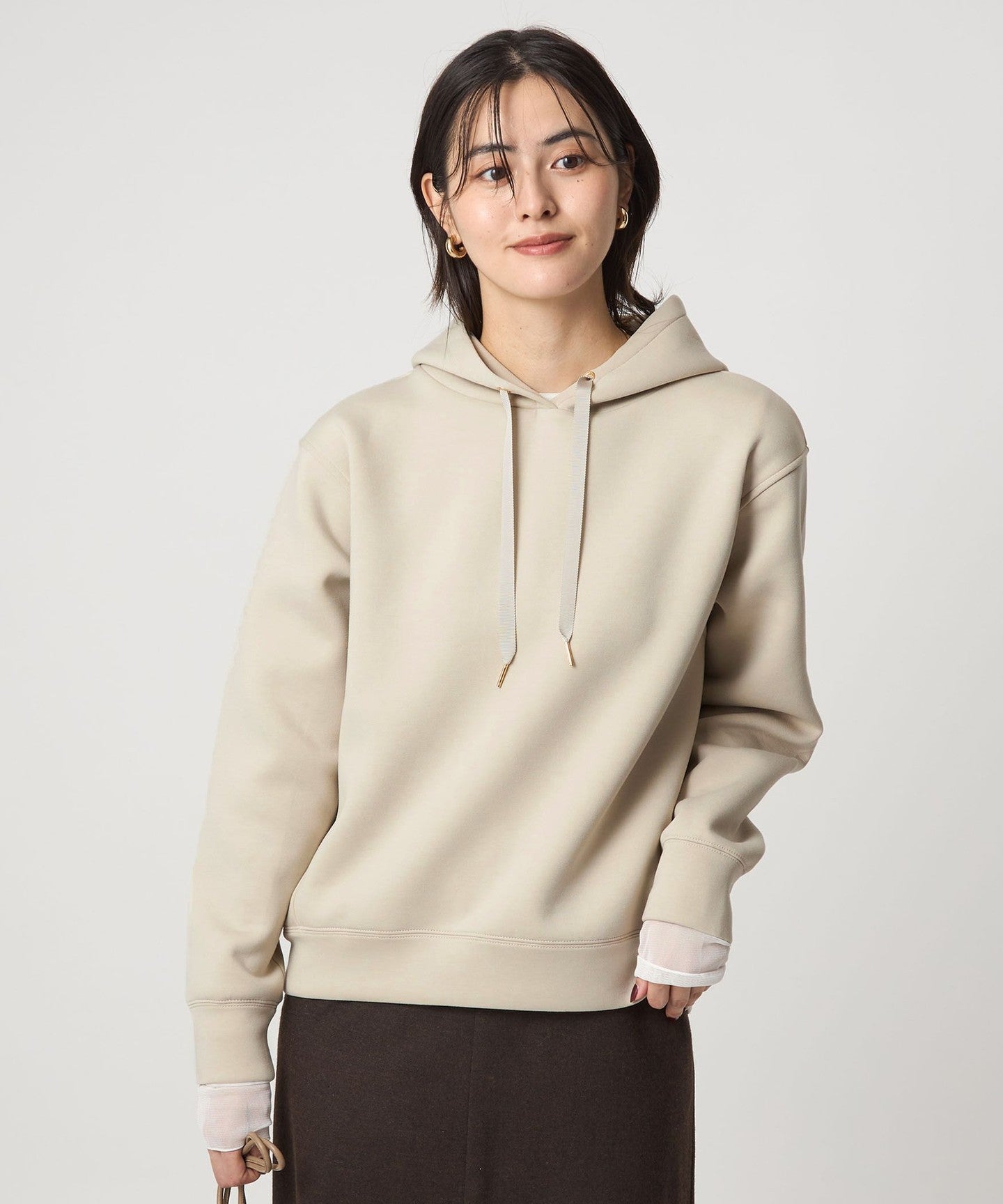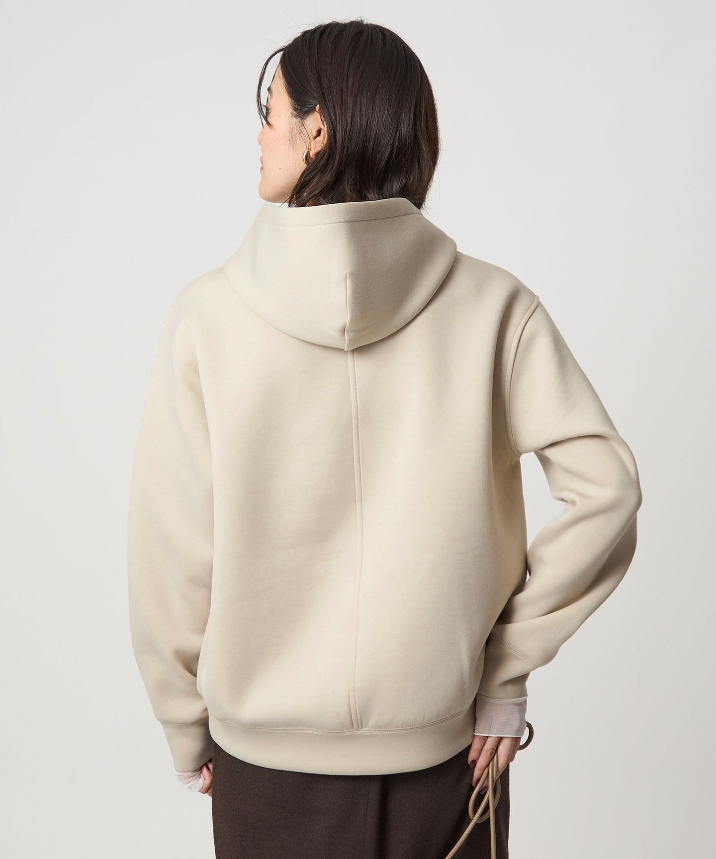 The key feature of this piece is its three-dimensional form, and the moderately loose sizing gives it a sophisticated look.