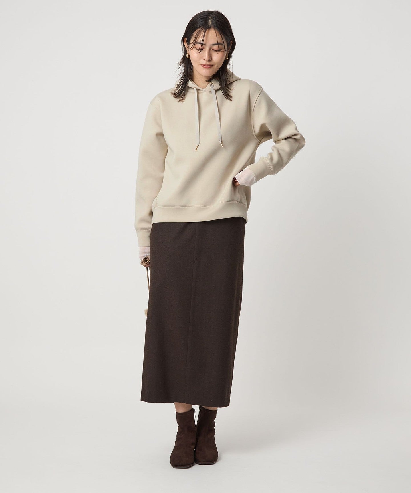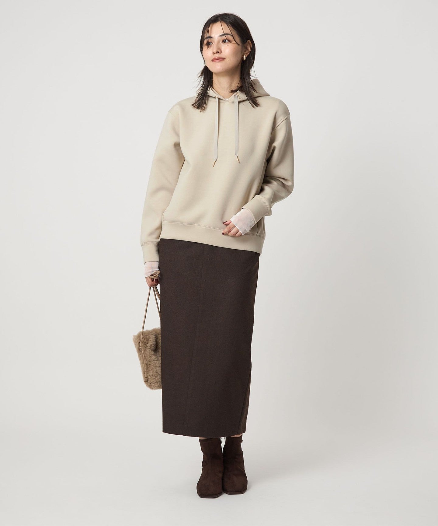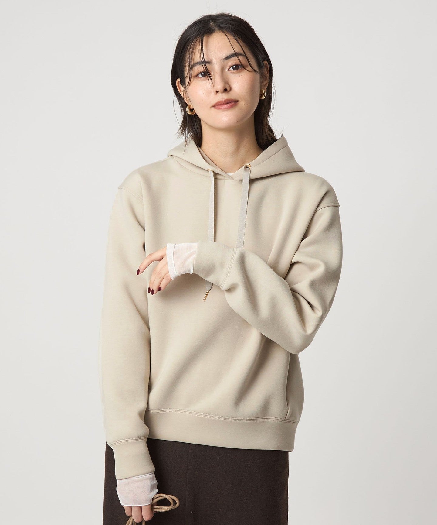 The key feature of this piece is its three-dimensional form, and the moderately loose sizing gives it a sophisticated look.