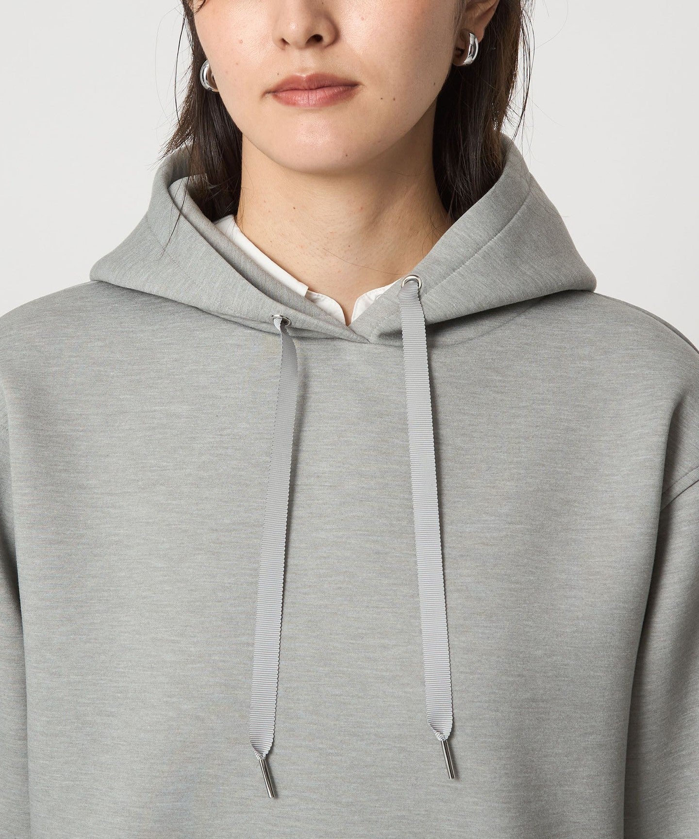 The ends of the strings on the front of the hood are accented with sparkling metal fittings.