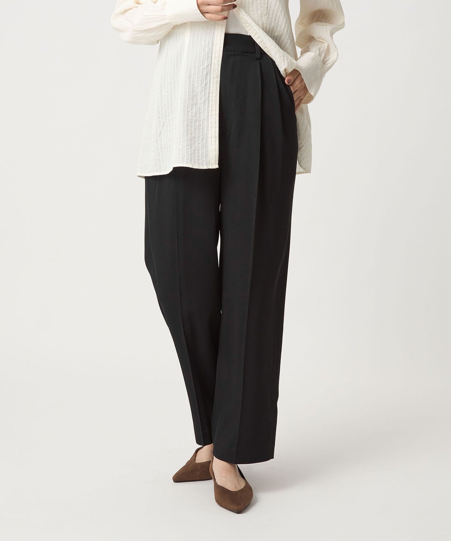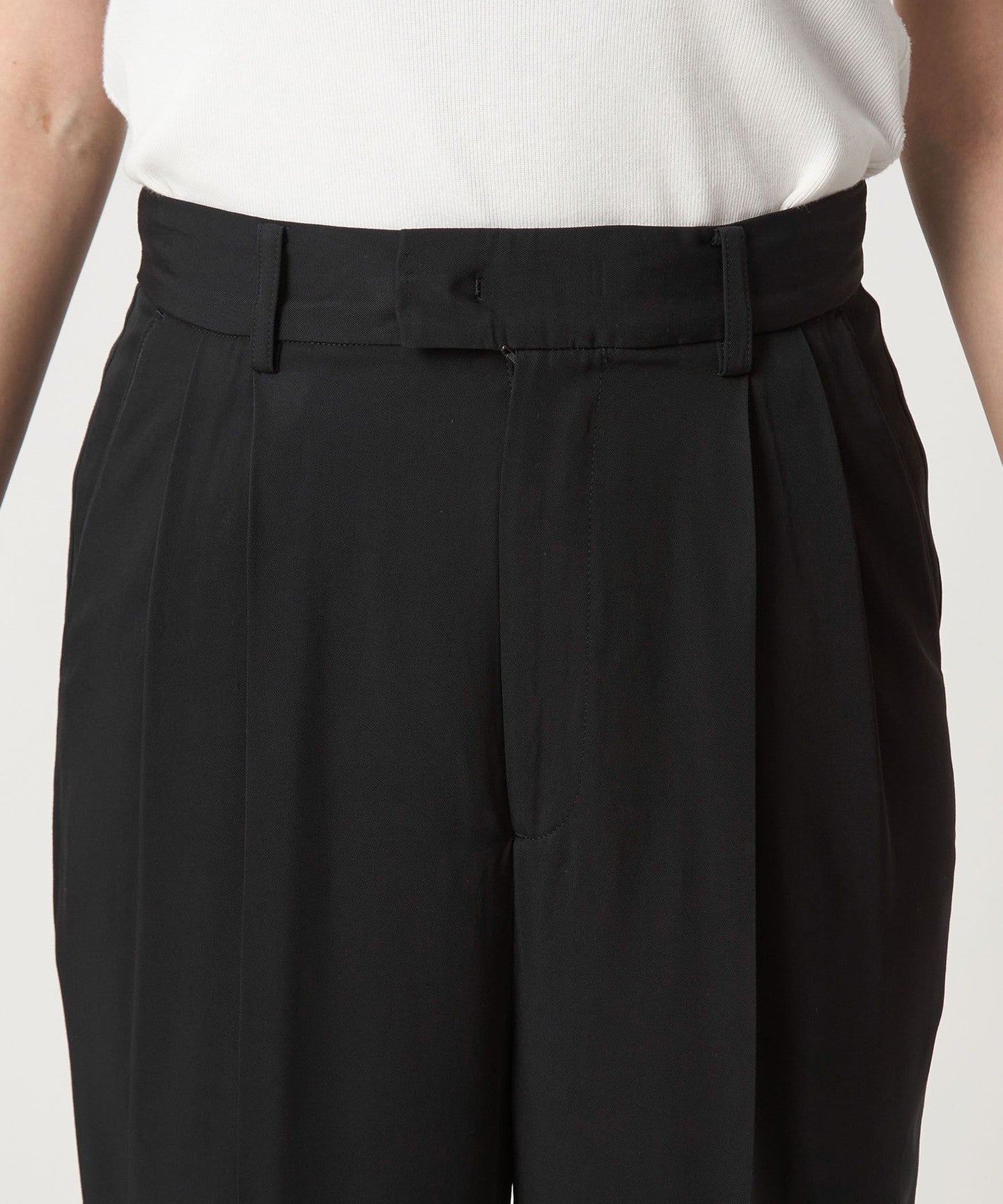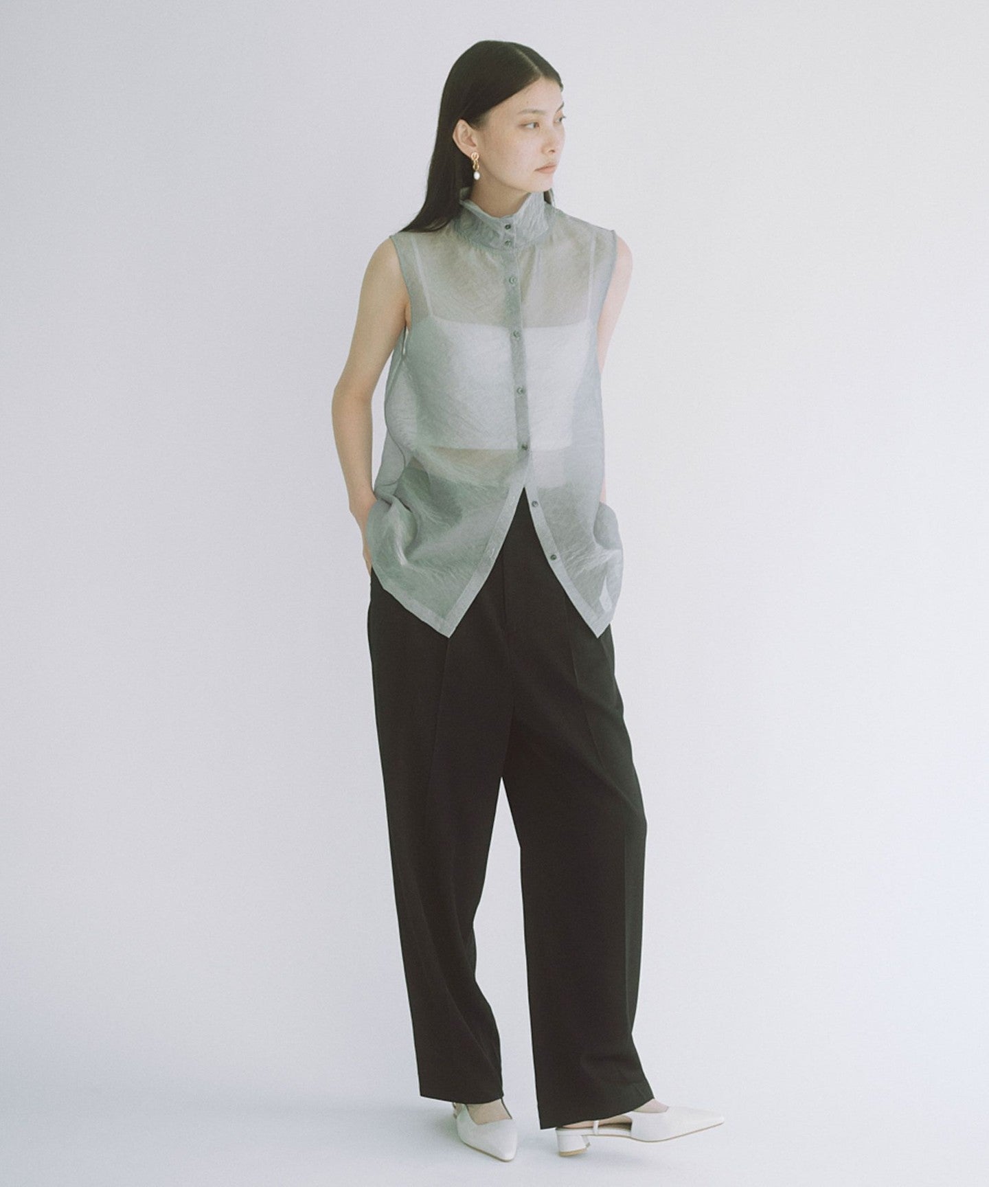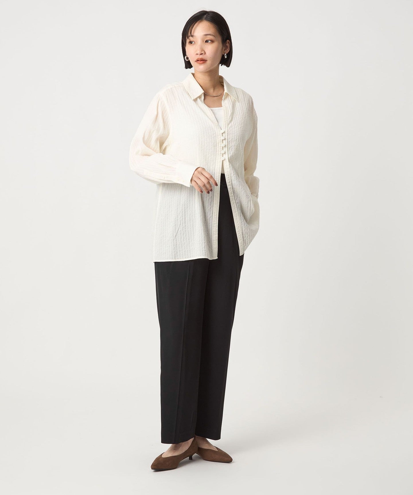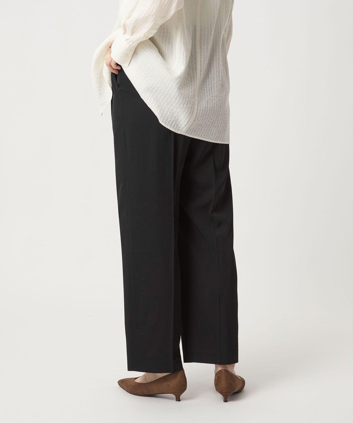 This drapey gabardine material is woven in the Hokuriku region and has undergone various processes using a liquid dyeing machine in Oshu.