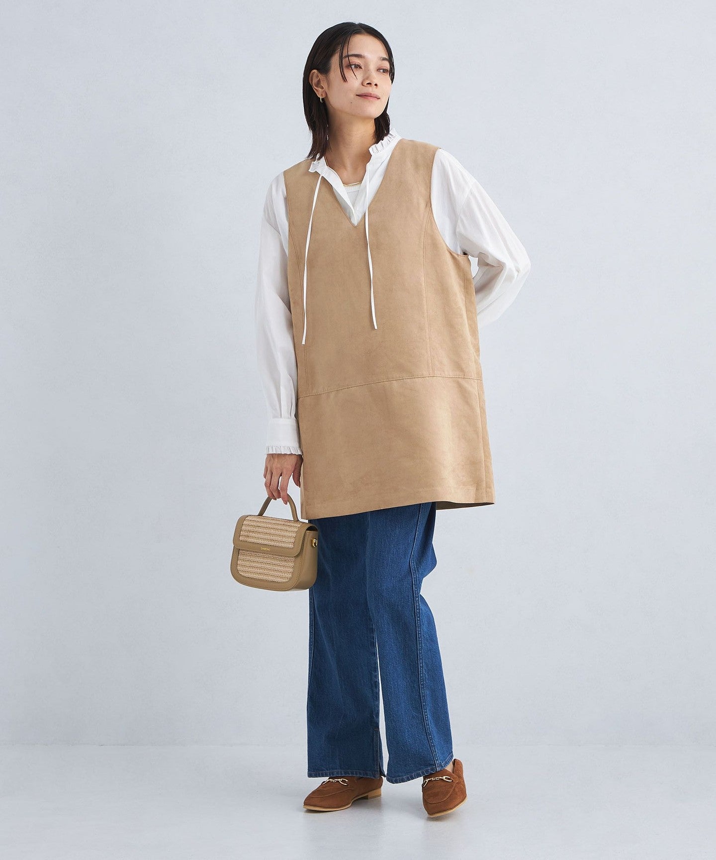 The length has been adjusted so that you can enjoy layering it with voluminous bottoms.